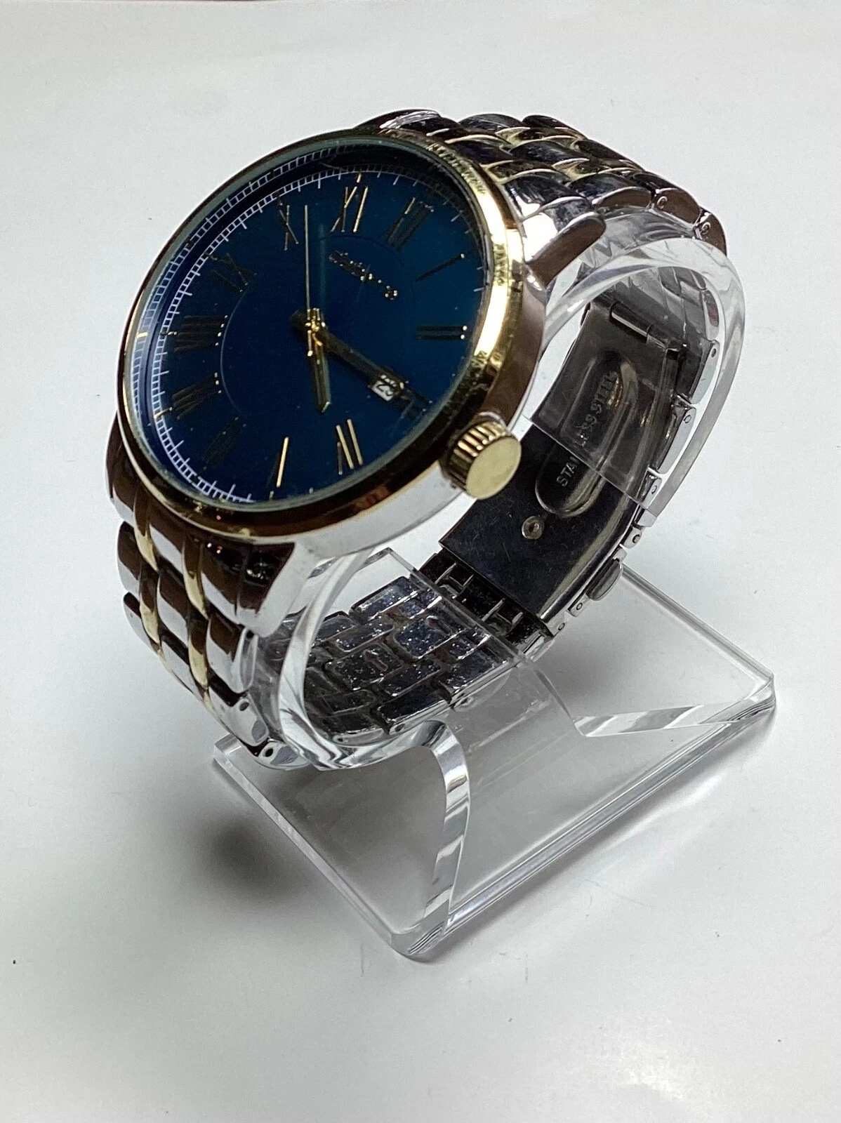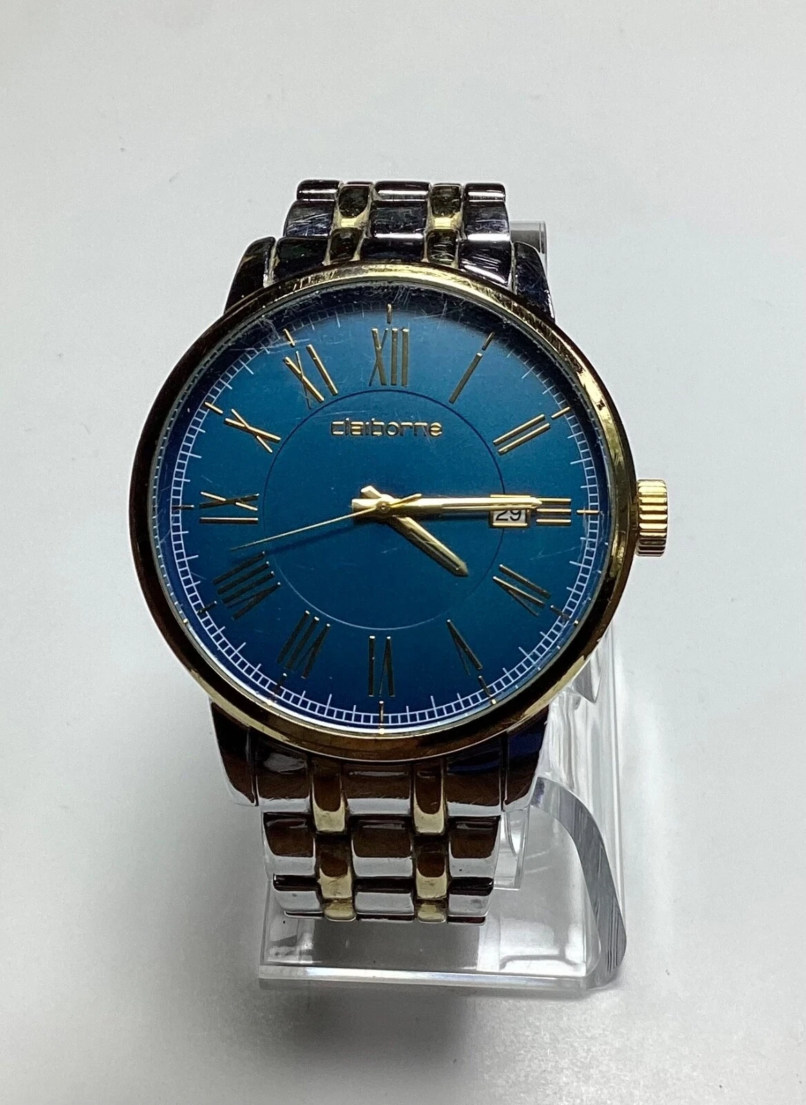Claiborne CLM1153 Men's Watch 45 MM Teal Silver Gold Stainless Steel New Battery
