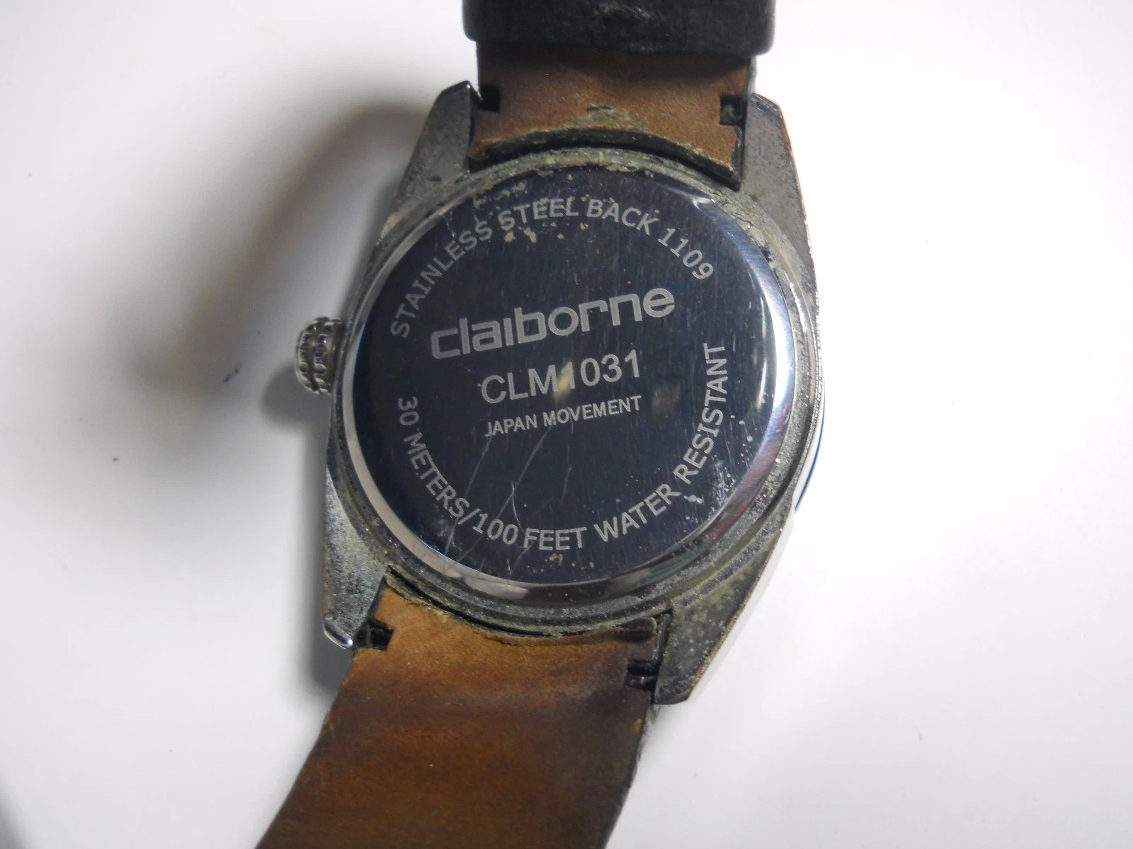 Claiborne Watch CLM1031 Mens leather black Stainless Steel Date NEW Battery