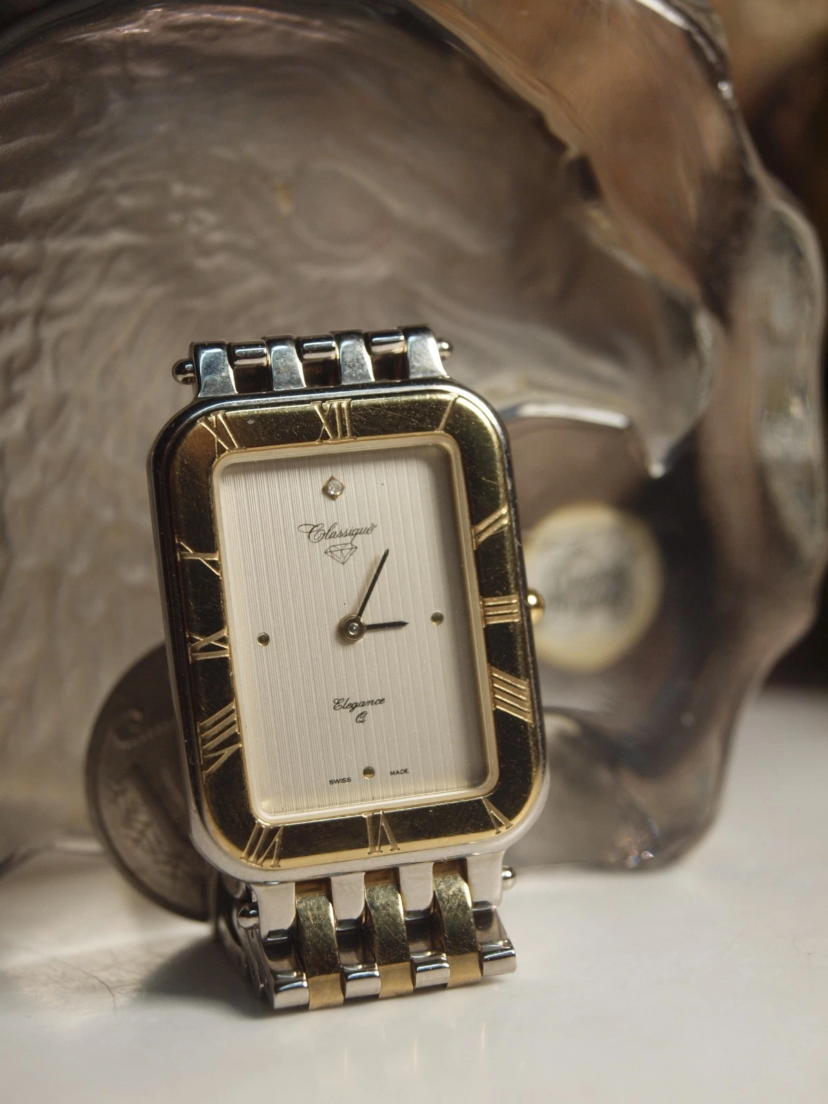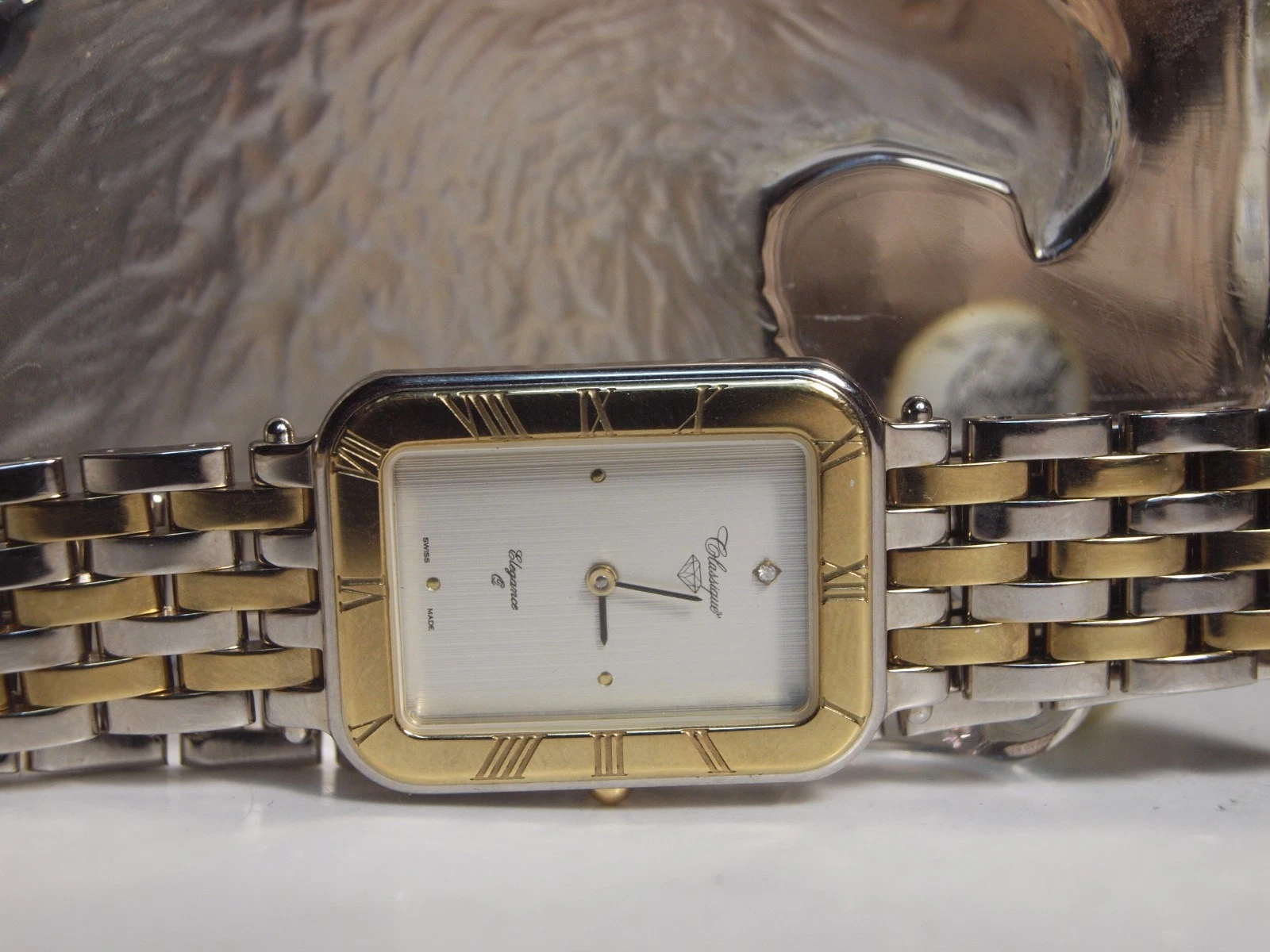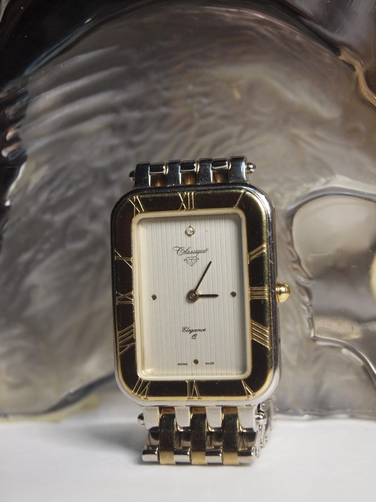 CLASSIQUE ELEGANCE Q SWISS MADE MENS DRESS WATCH 18CT BEZEL AND DIAMOND ON DIAL