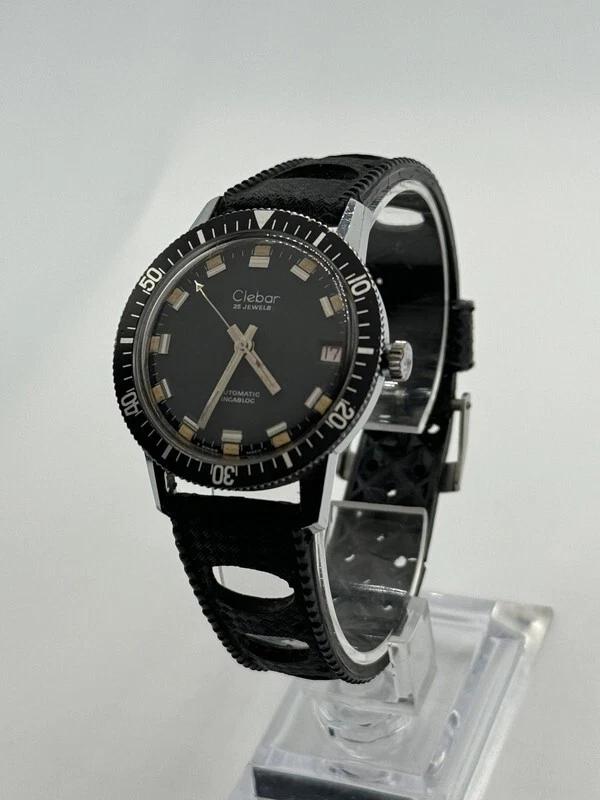 Vintage Clebar 25 Jewels Automatic Incabloc Date Black Dial and Bezel c.1970's