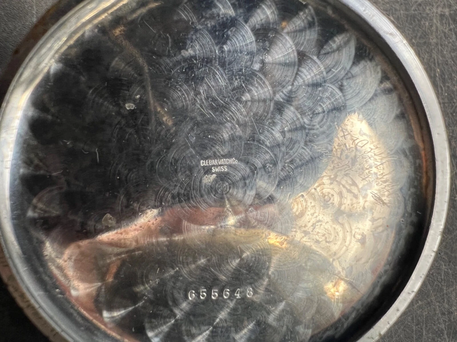 Vintage Clebar Watch Company Pocket Watch Swiss 655648 Silver Parts Case