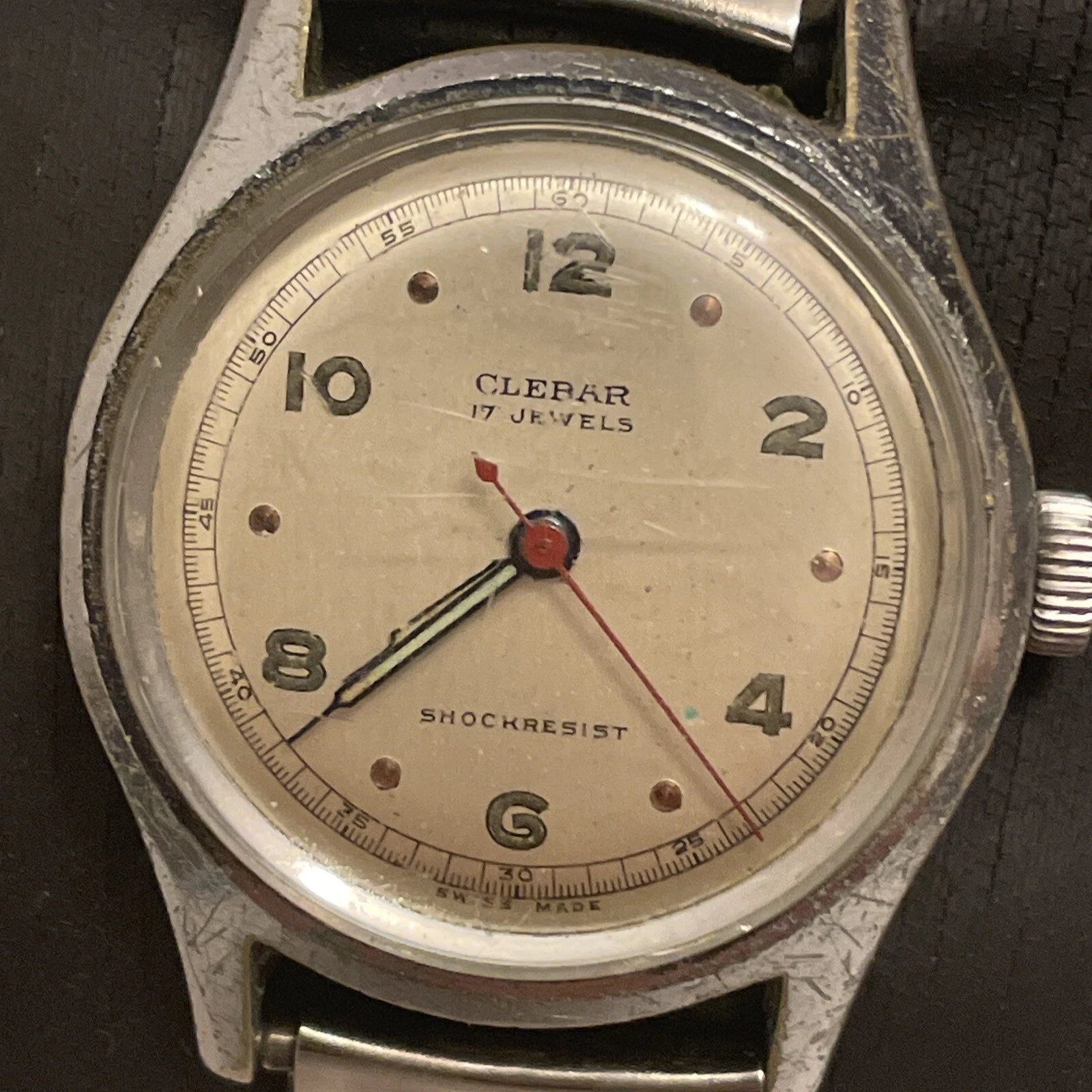 Vintage Men's CLEBAR 17 Jewel, Shock Resist, Swiss, WW2 Era 1940s Military Watch