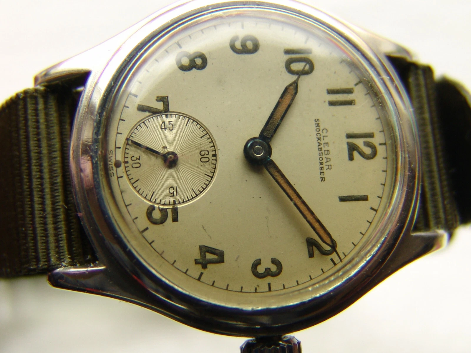 VINTAGE WWII era men's CLEBAR MILITARY COLLECTOR'S WRISTWATCH sterling case