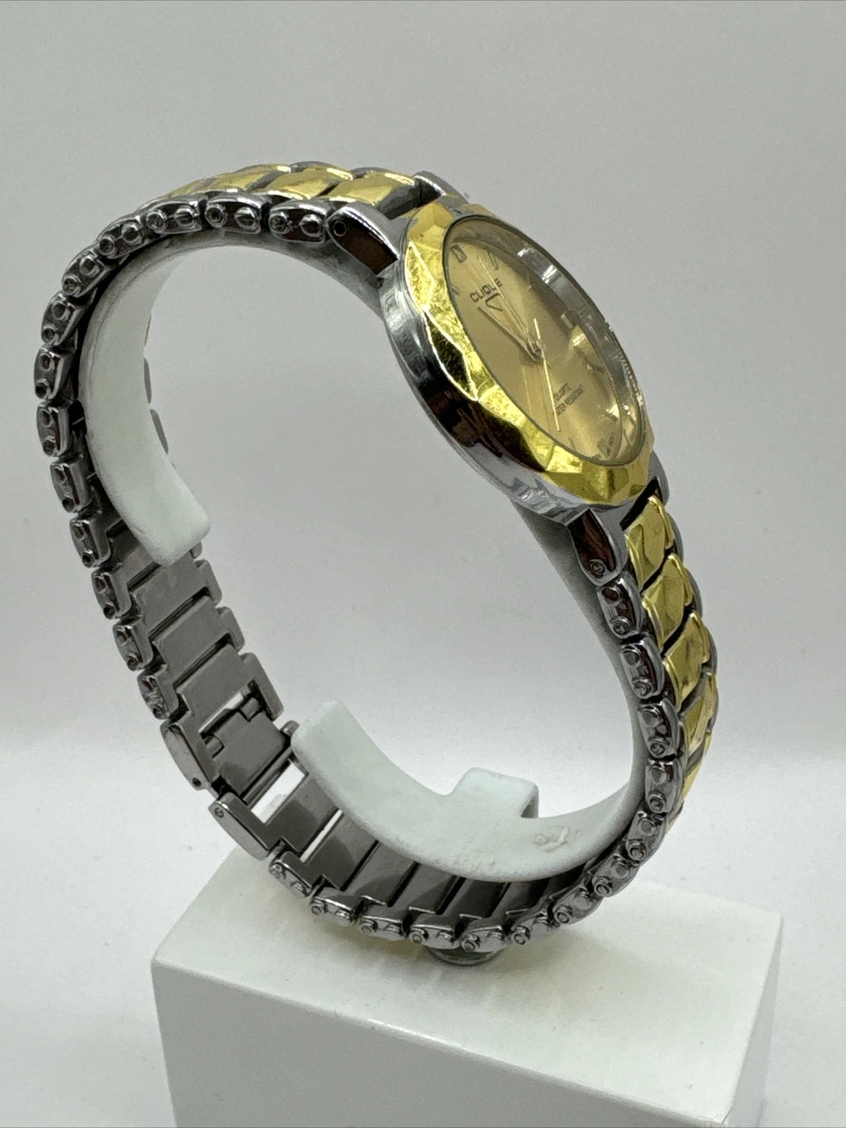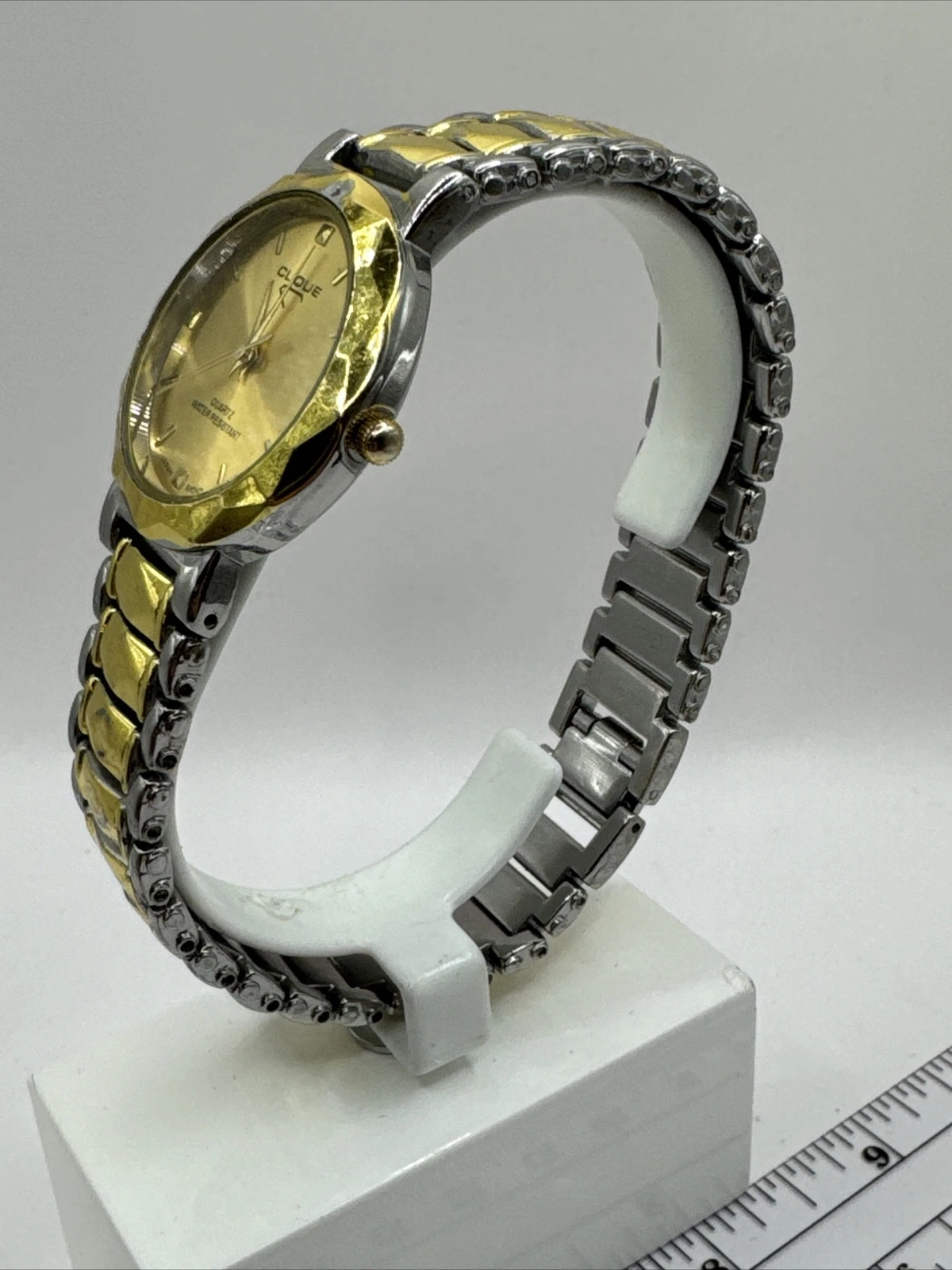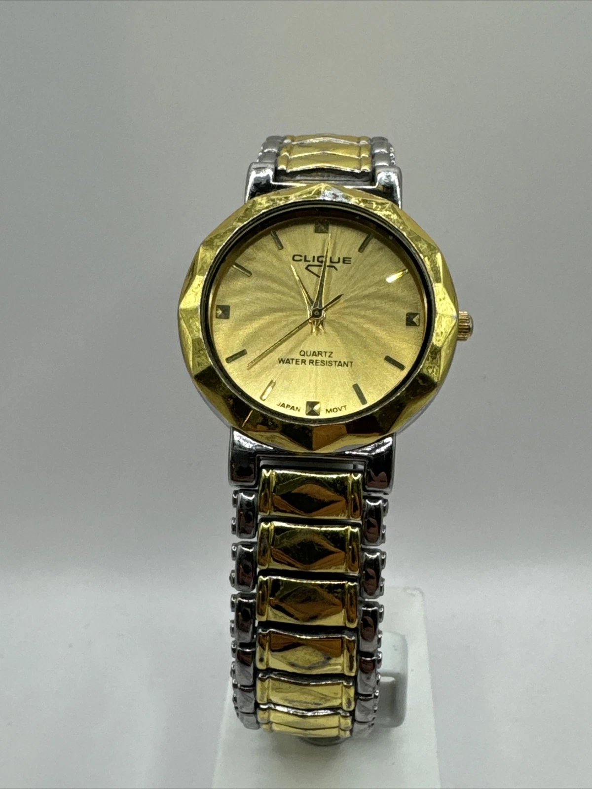 Clique men's watch,gold/silver band with clasp,removable links for custom fit