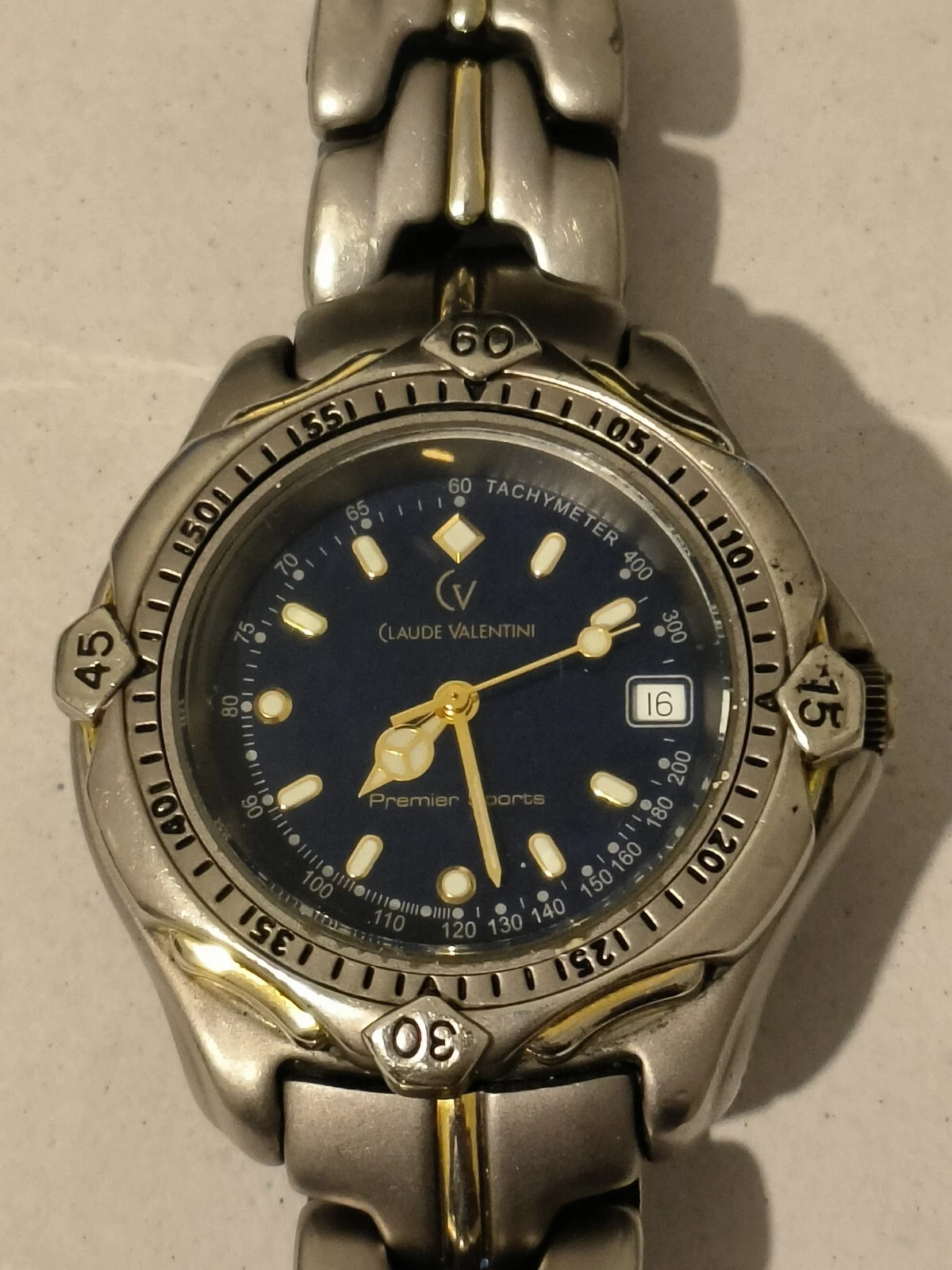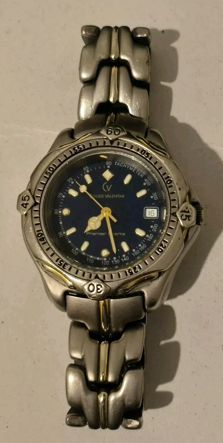 Vintage BNIB Mens CLAUDE VALENTINI Blue Dial Quartz Watch. New Battery. M1944RJ