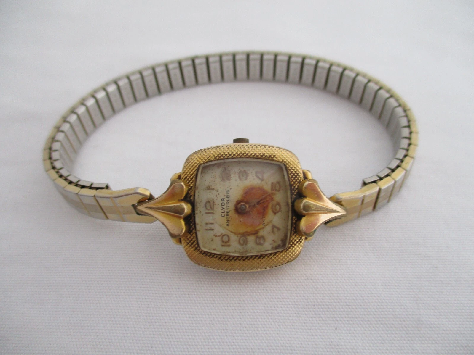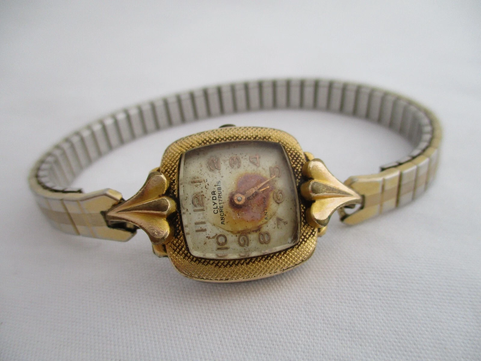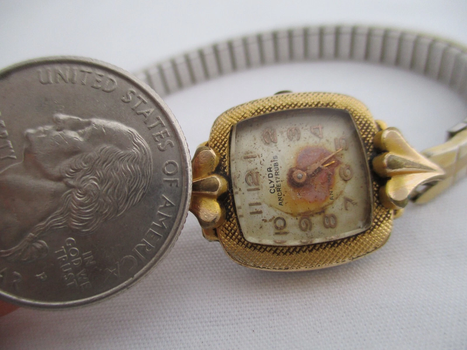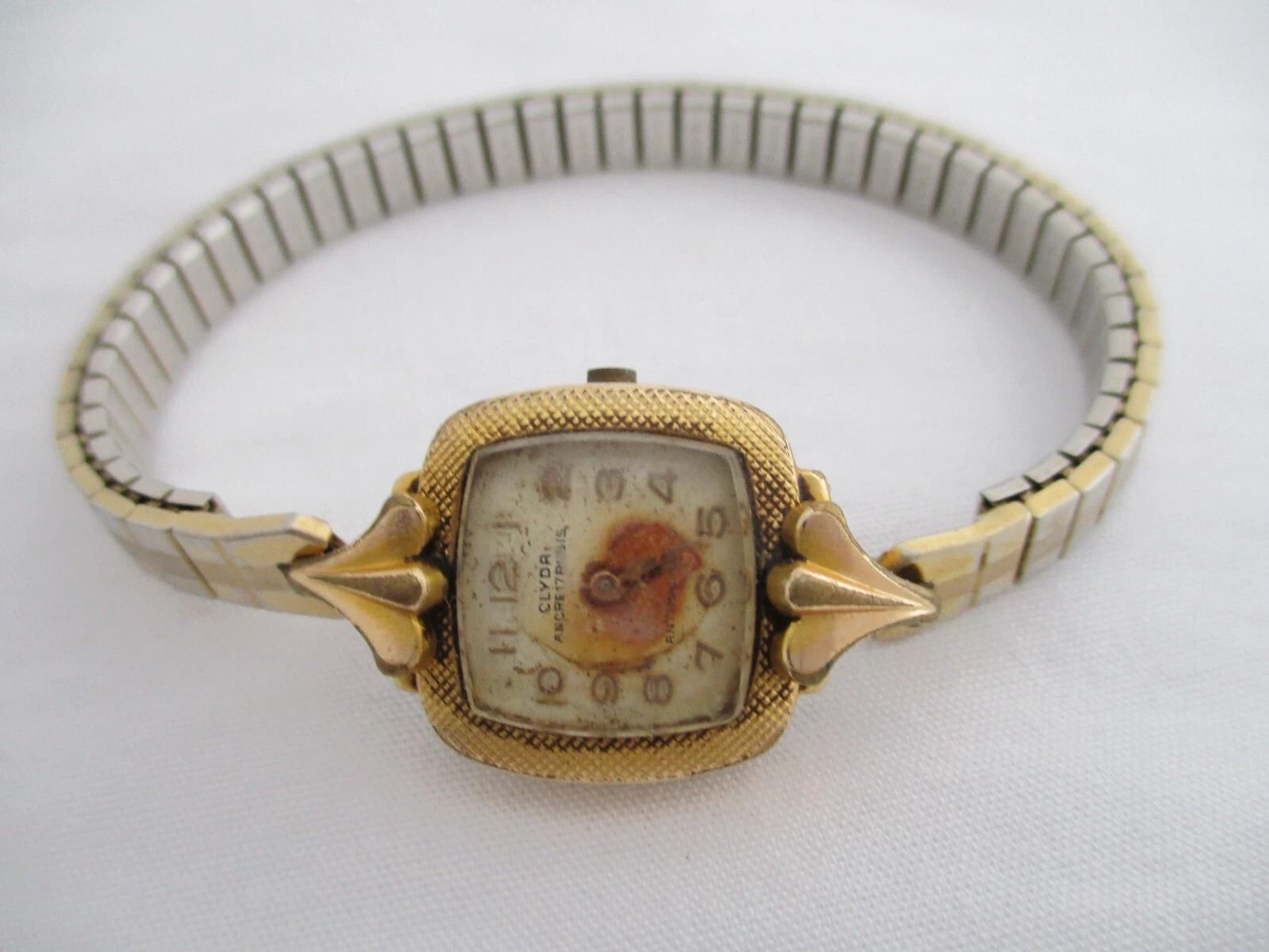 Clyda Women's Gold Toned Stretch Band Vintage Wind Up Analog Watch *For Repair*