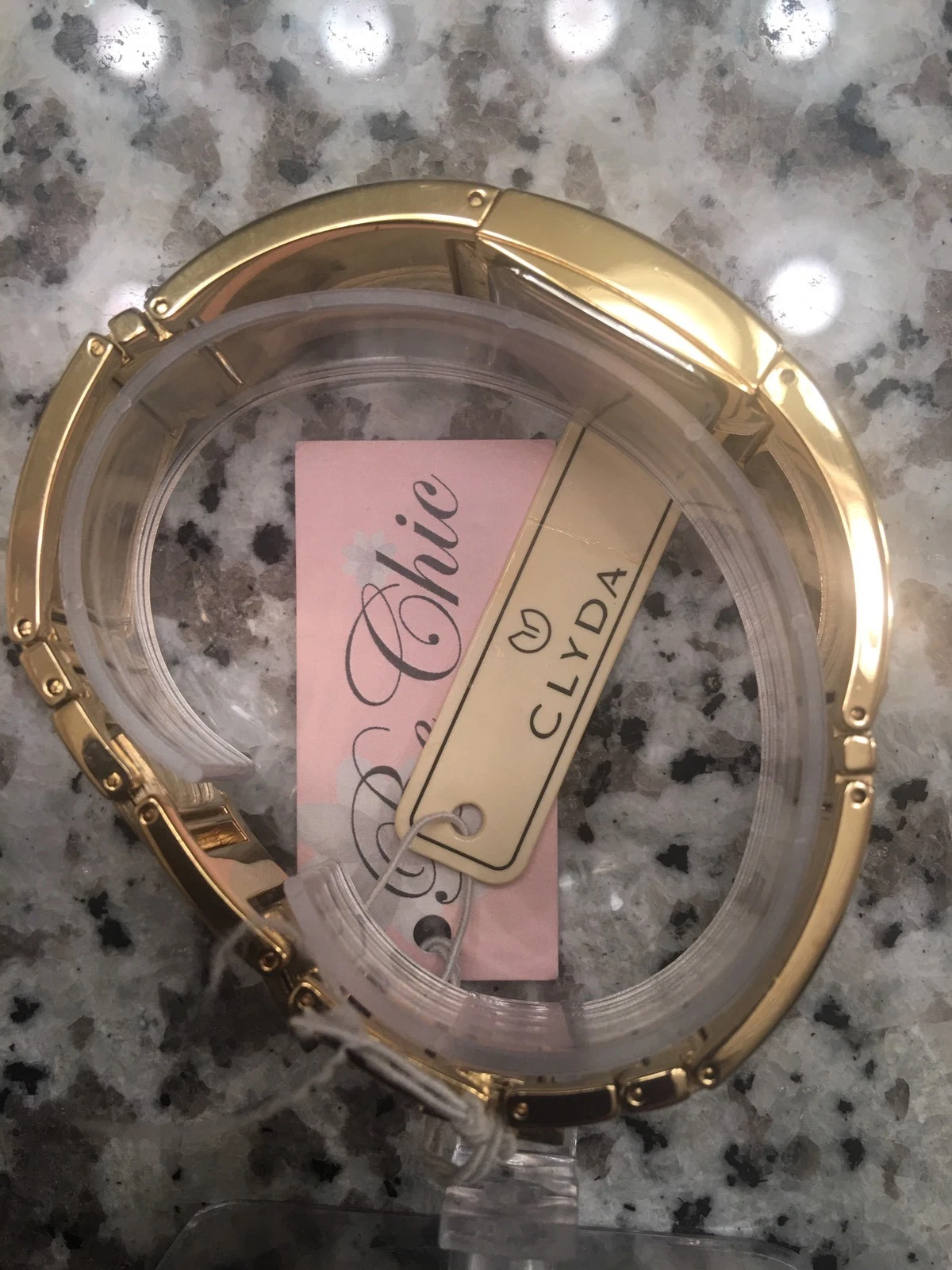 NWT, Women's Clyda Paris Watch, Gold Tone, Mother Of Pearl, Adjustable links