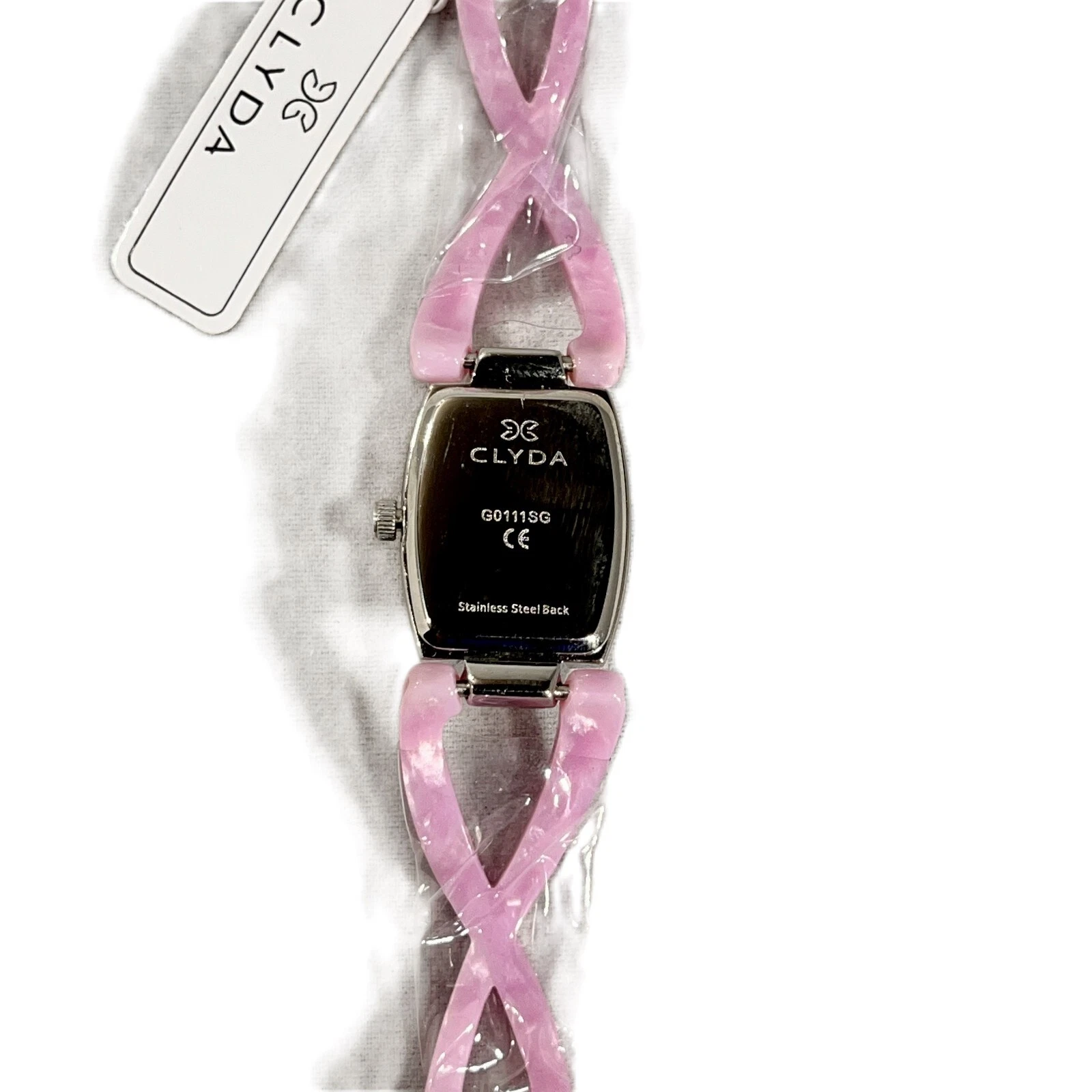 NEW Clyda Silver Tone and Light Pink Acetate Watch Rectangle