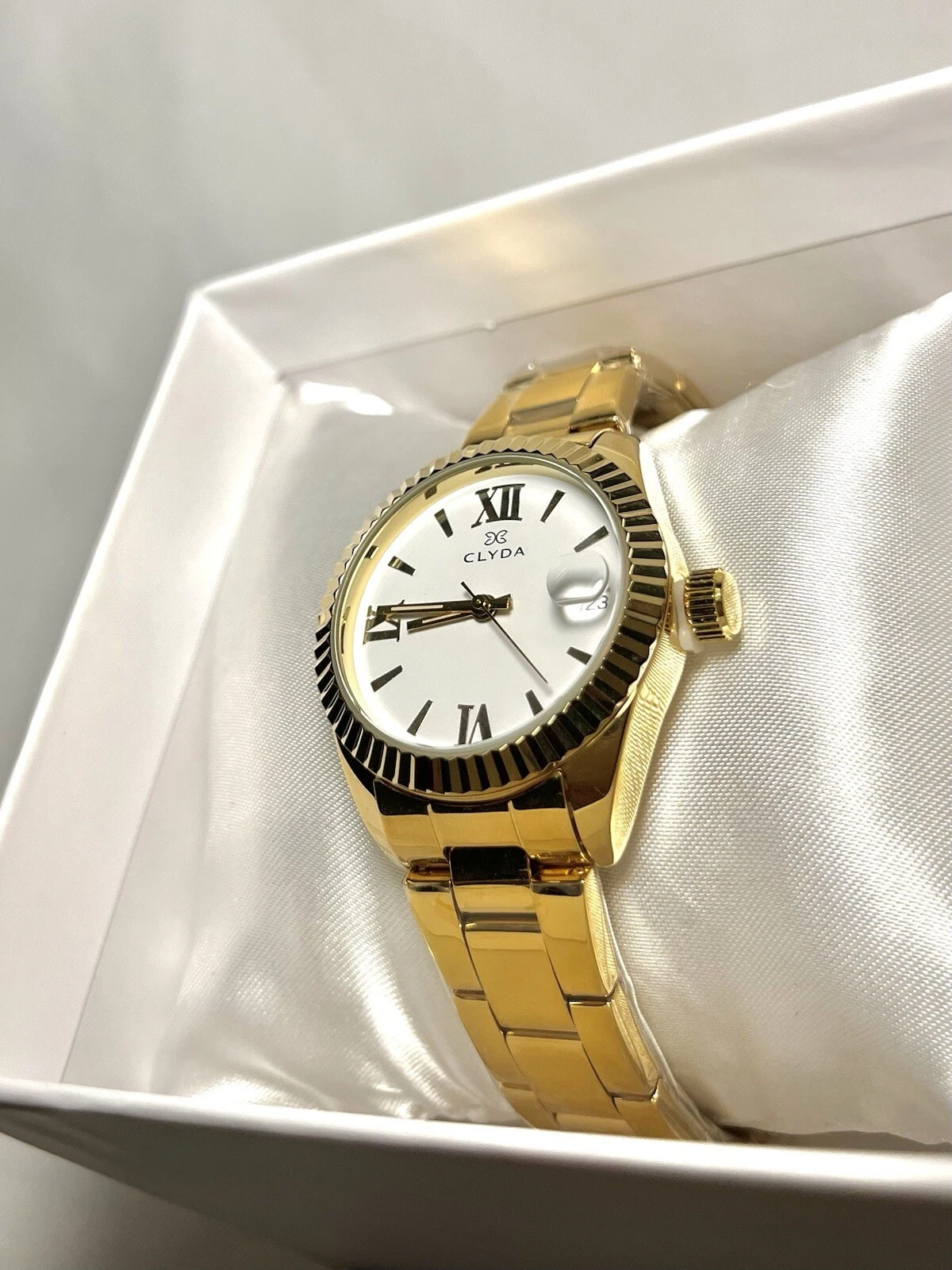 Clyda Women’s Watch - Quartz Analog - White/Gold Dial - Gold Strap
