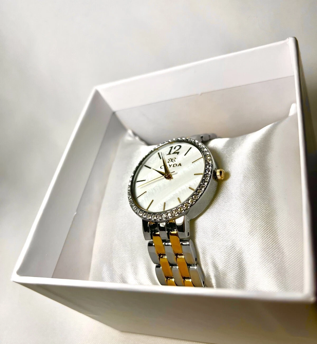 Clyda Women’s Watch - Quartz Analog - White/Gold Dial - Gold/Silver Strap