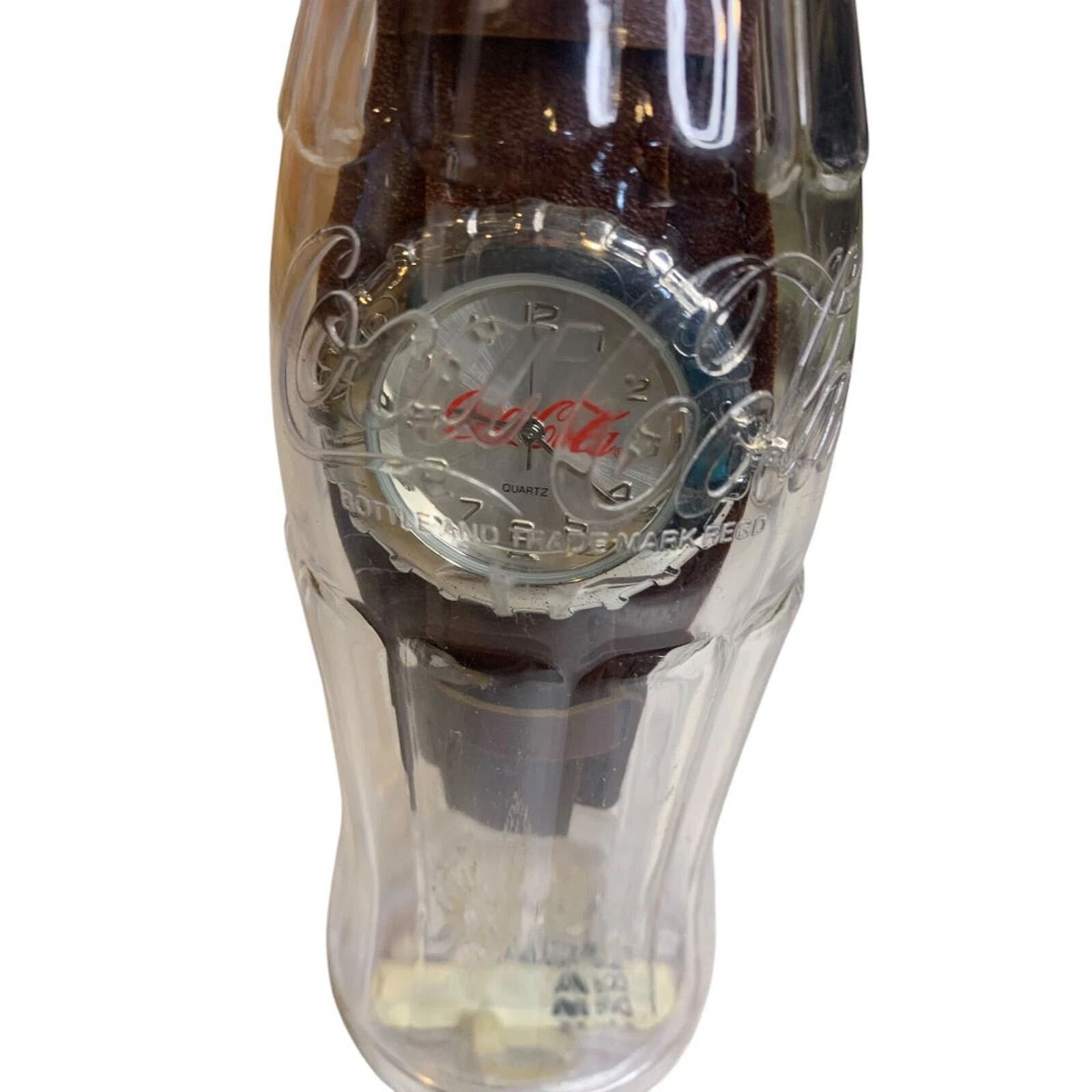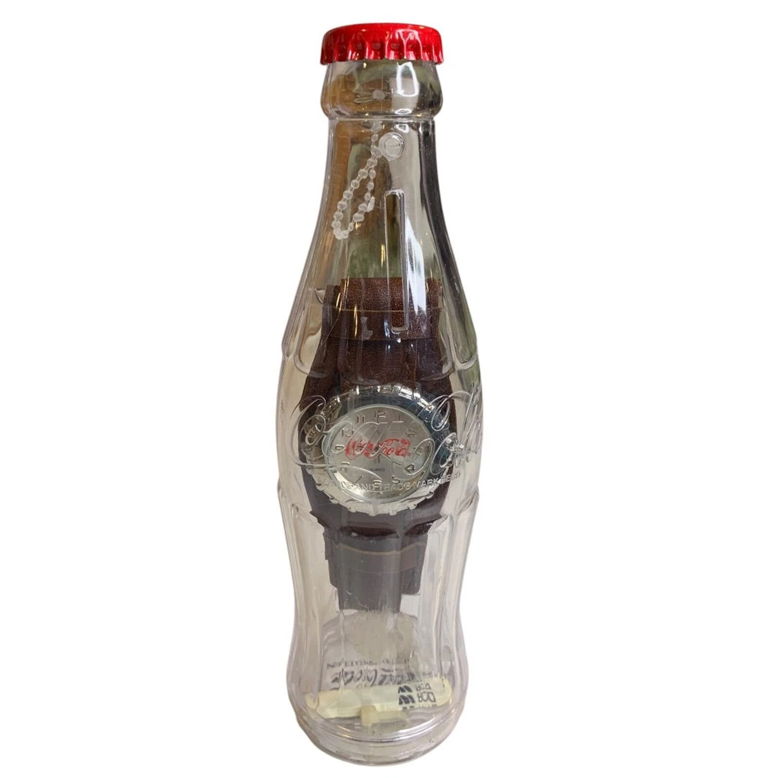 2002 Coca-Cola Watch in Plastic Bottle Sealed Wristwatch Leather Band