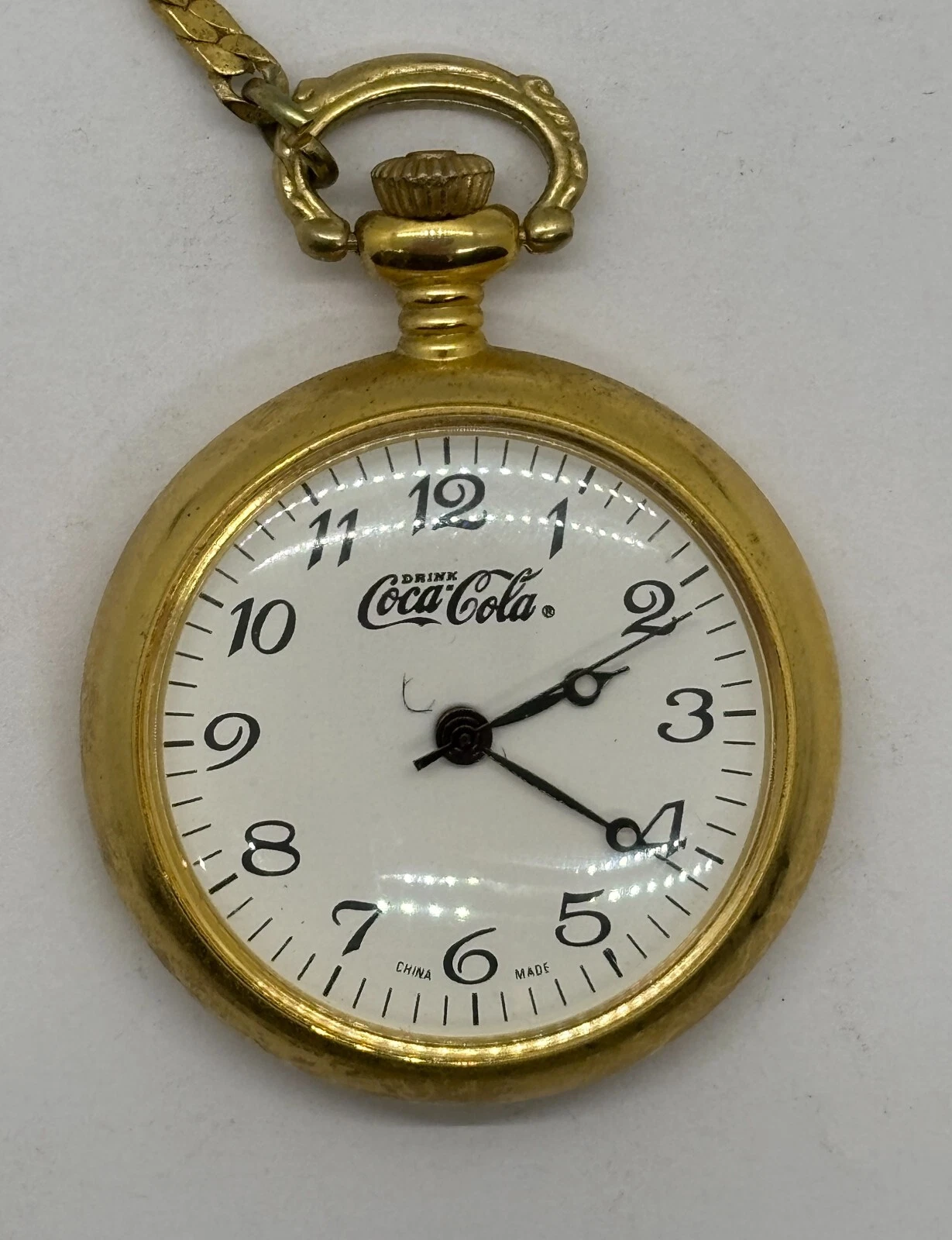 Drink Coca Cola Pocket Watch, Wind-Up, Gold Tone