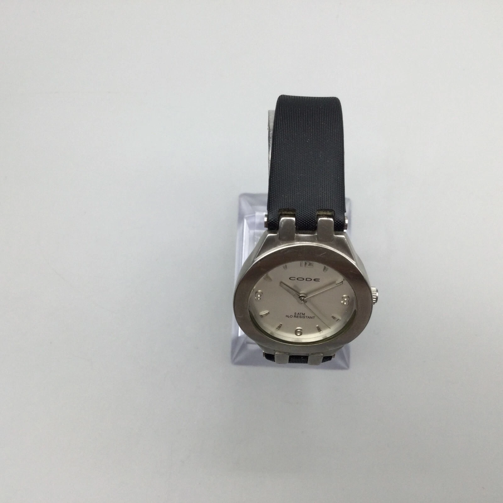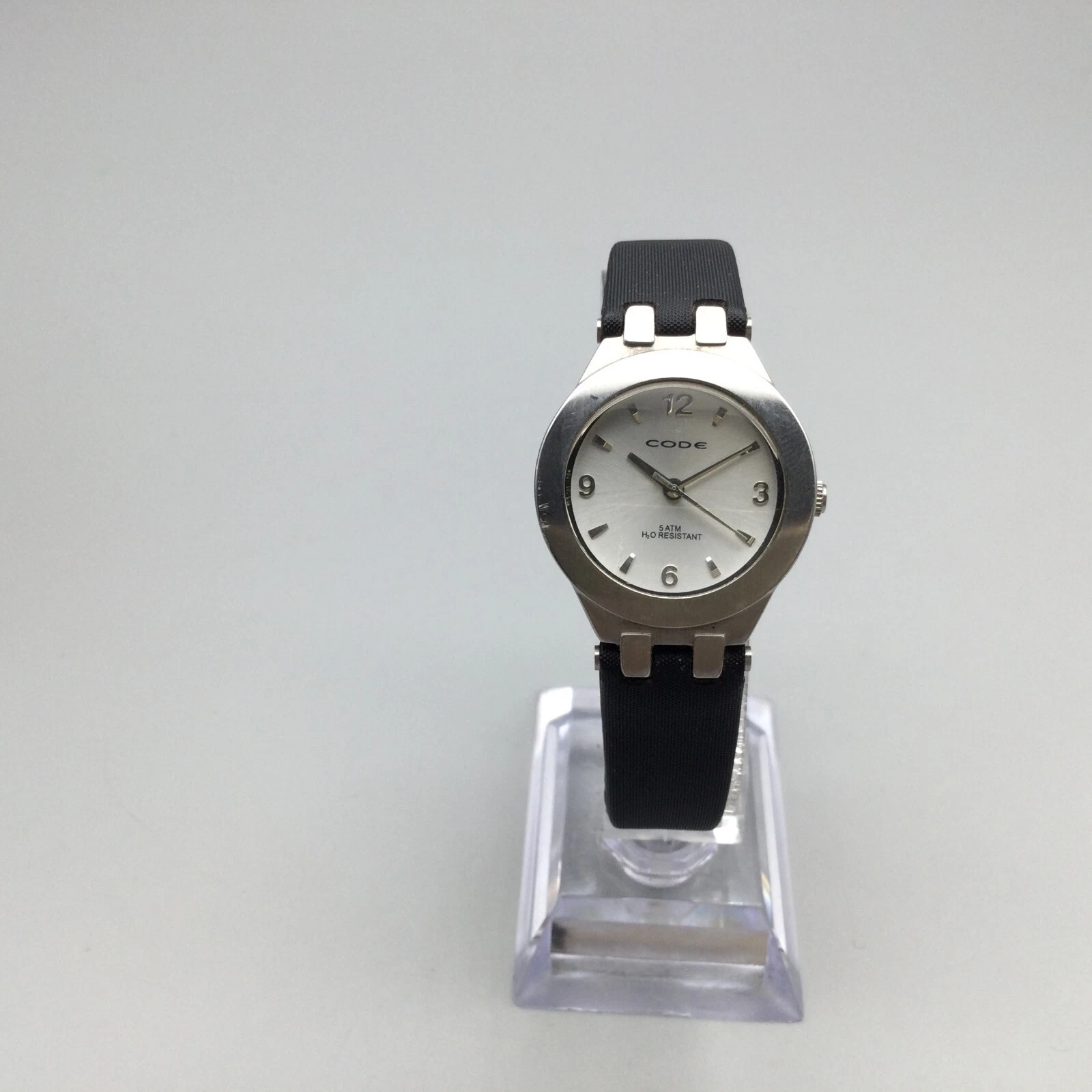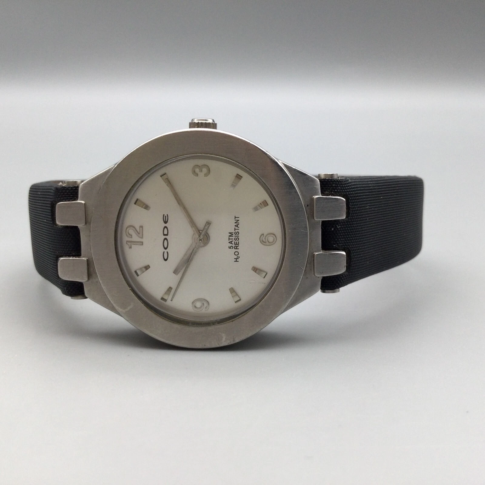 Code Watch Women 27mm Silver Tone Black Leather Band New Battery