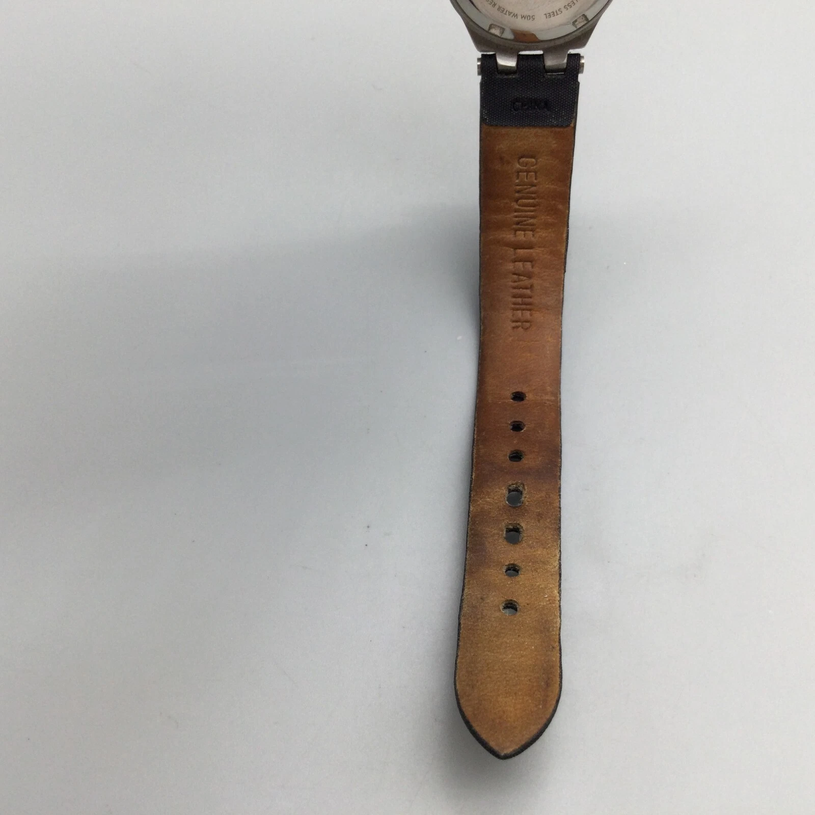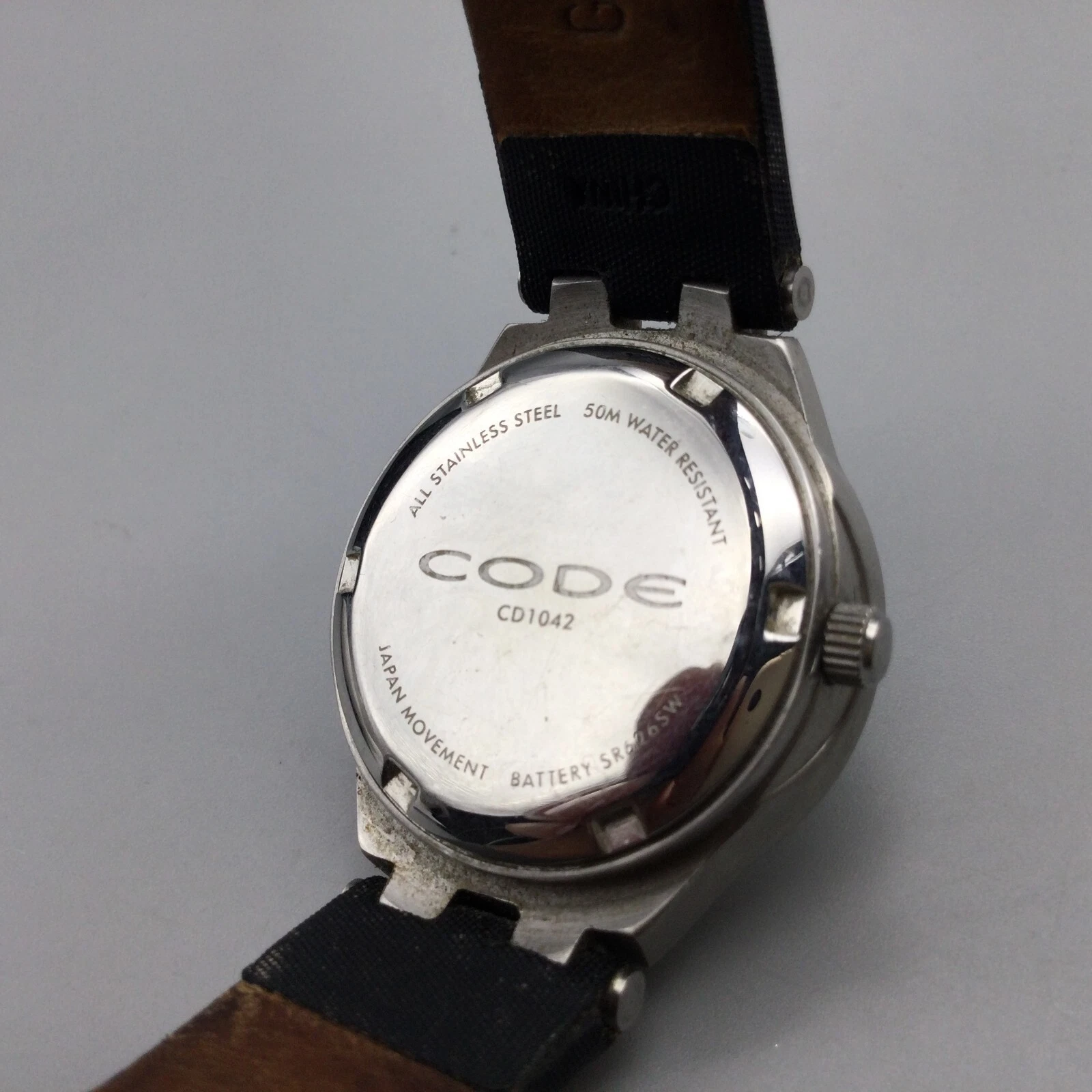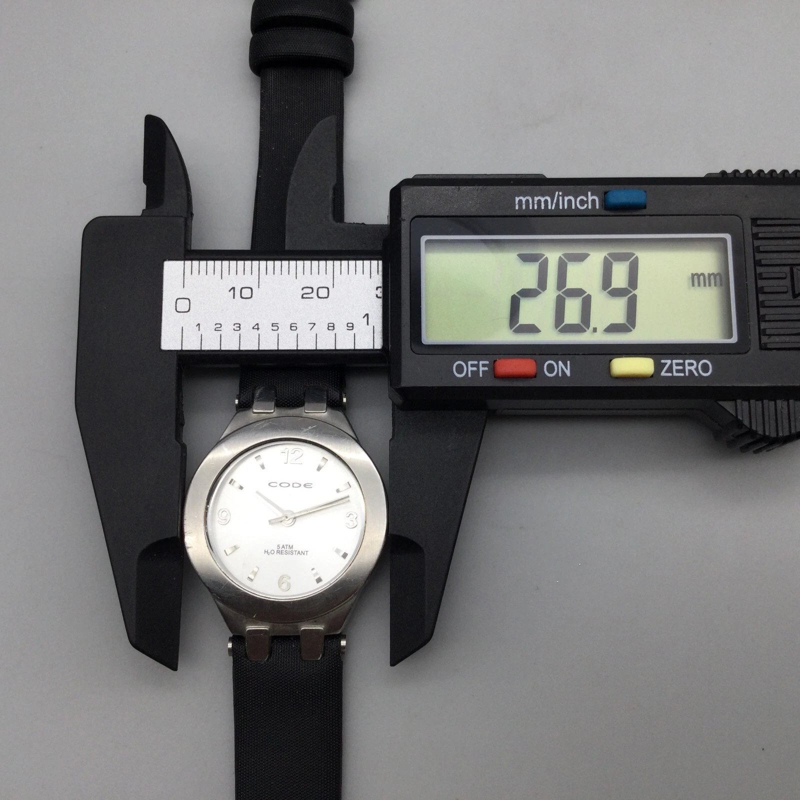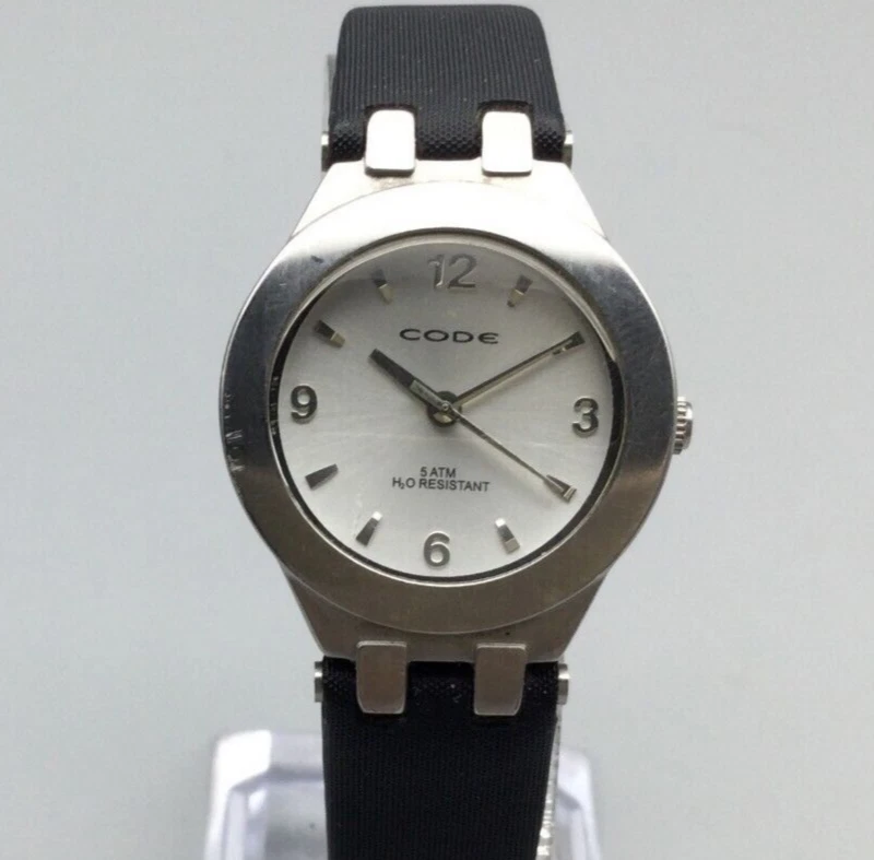 Code Watch Women 27mm Silver Tone Black Leather Band New Battery