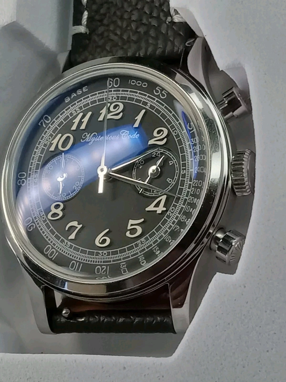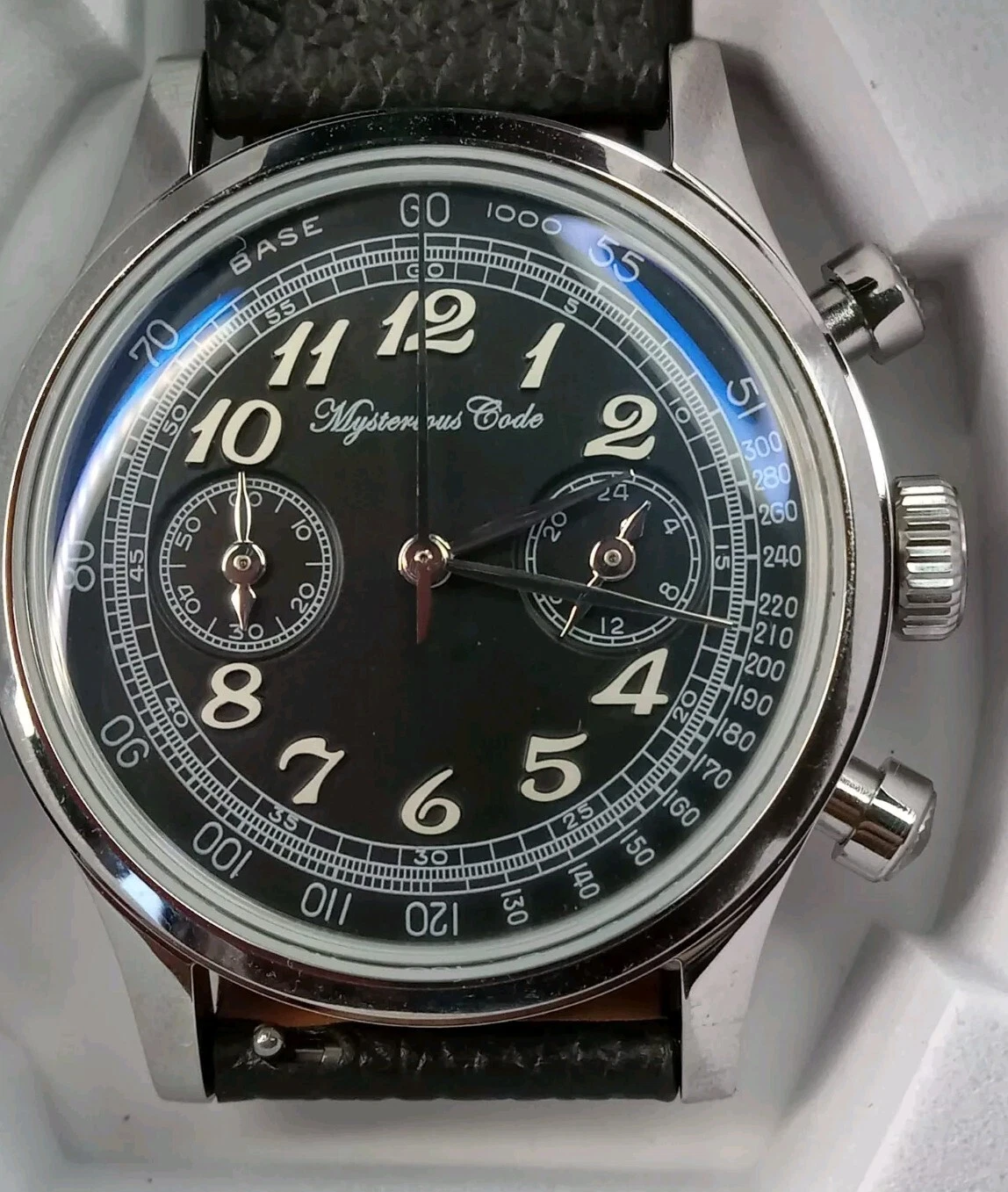 Mysterious Code Men Sport Panda Pilot Chronograph Quartz 38mm Black Watch VK63