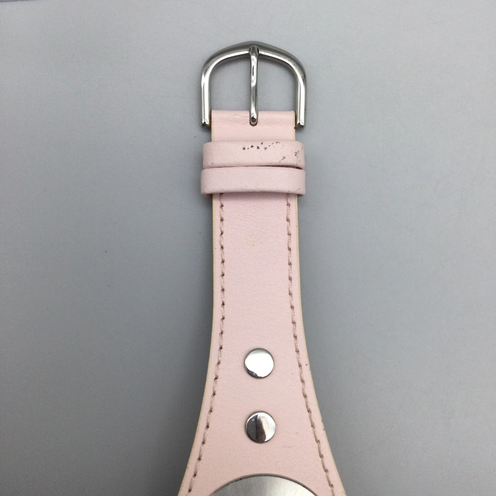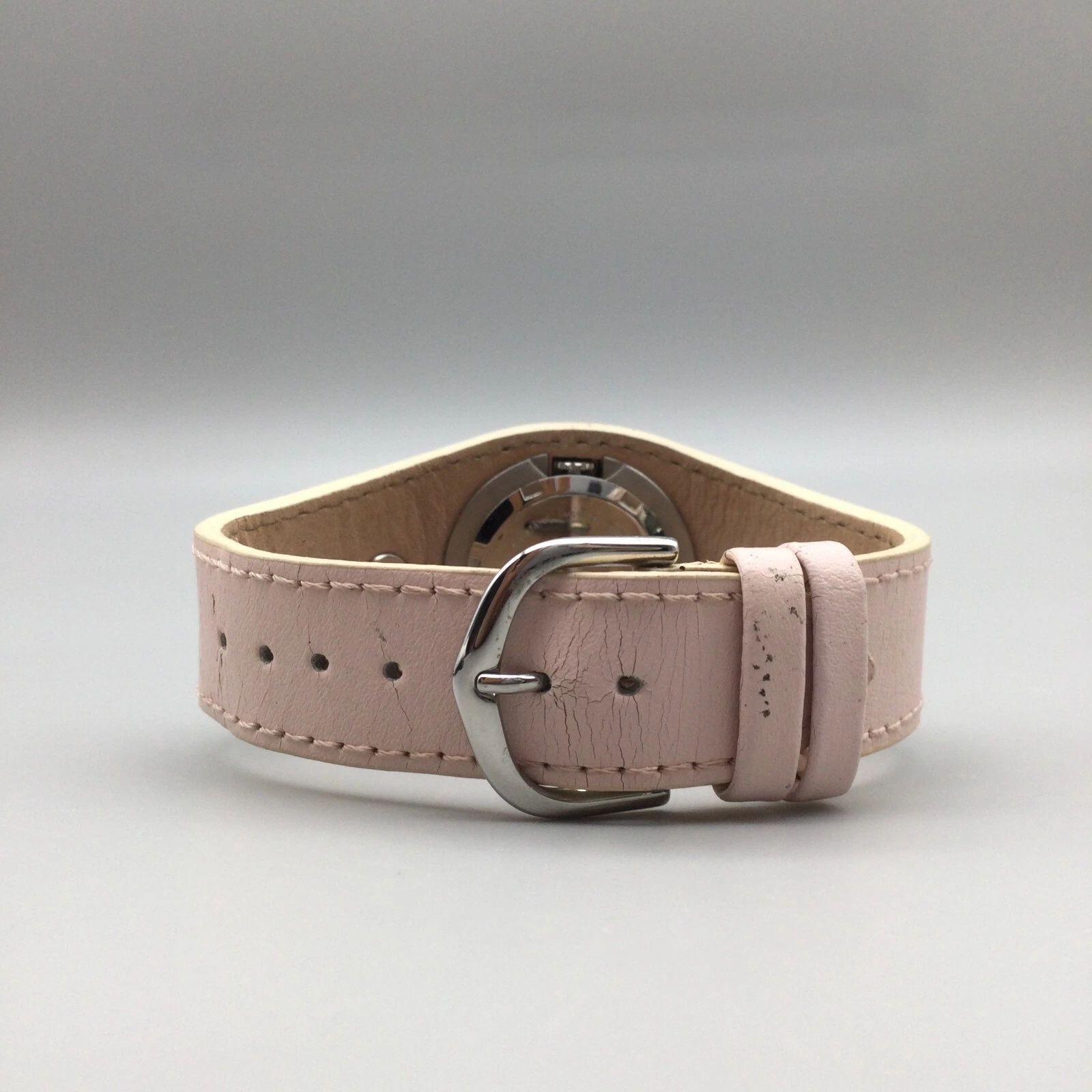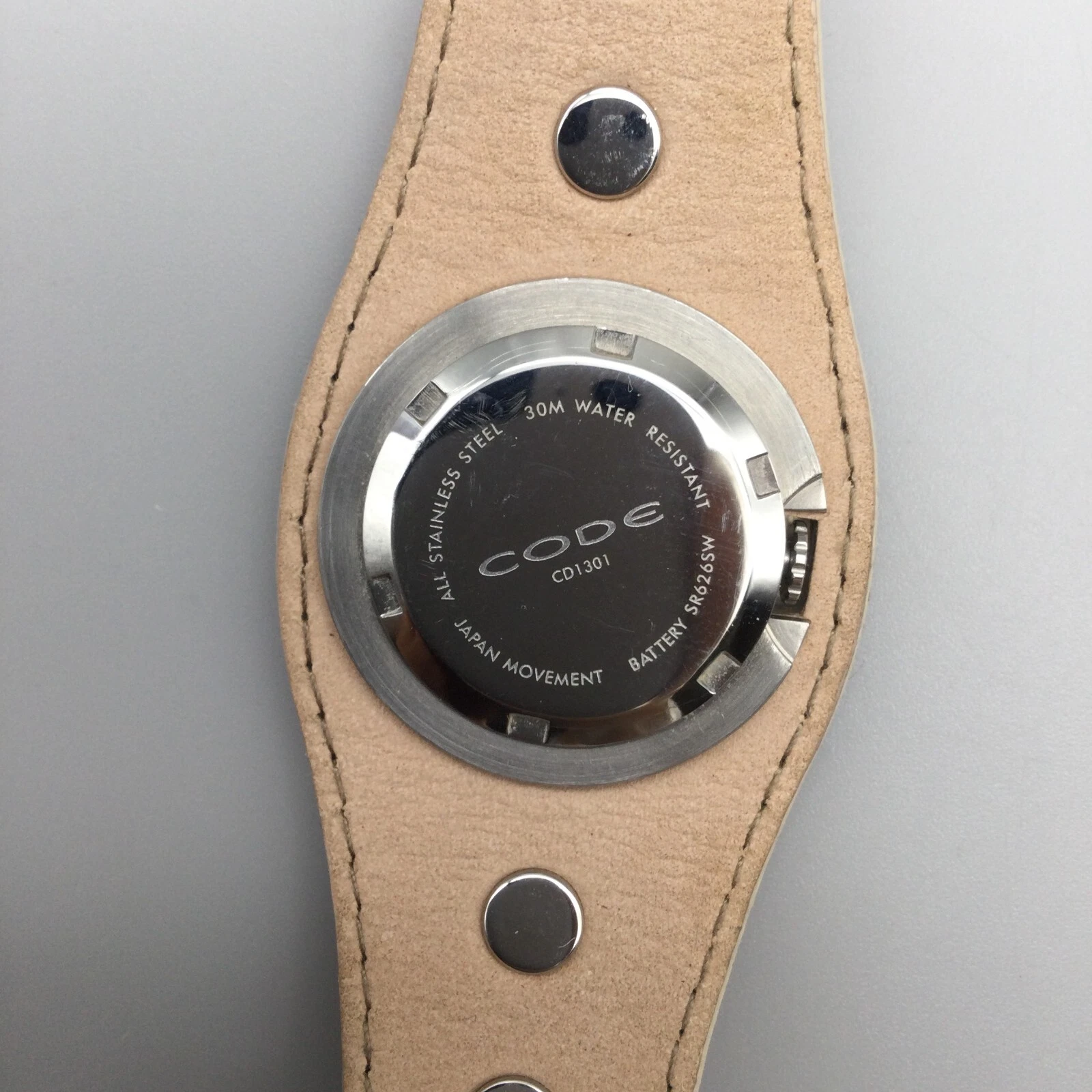 Code Watch Women Silver Tone 30M Pink Wide Leather Cuff Band New Battery