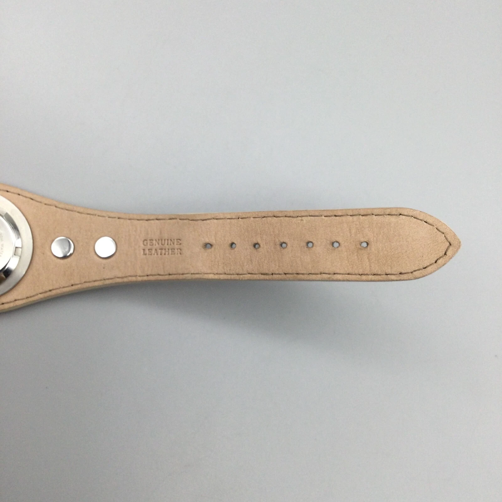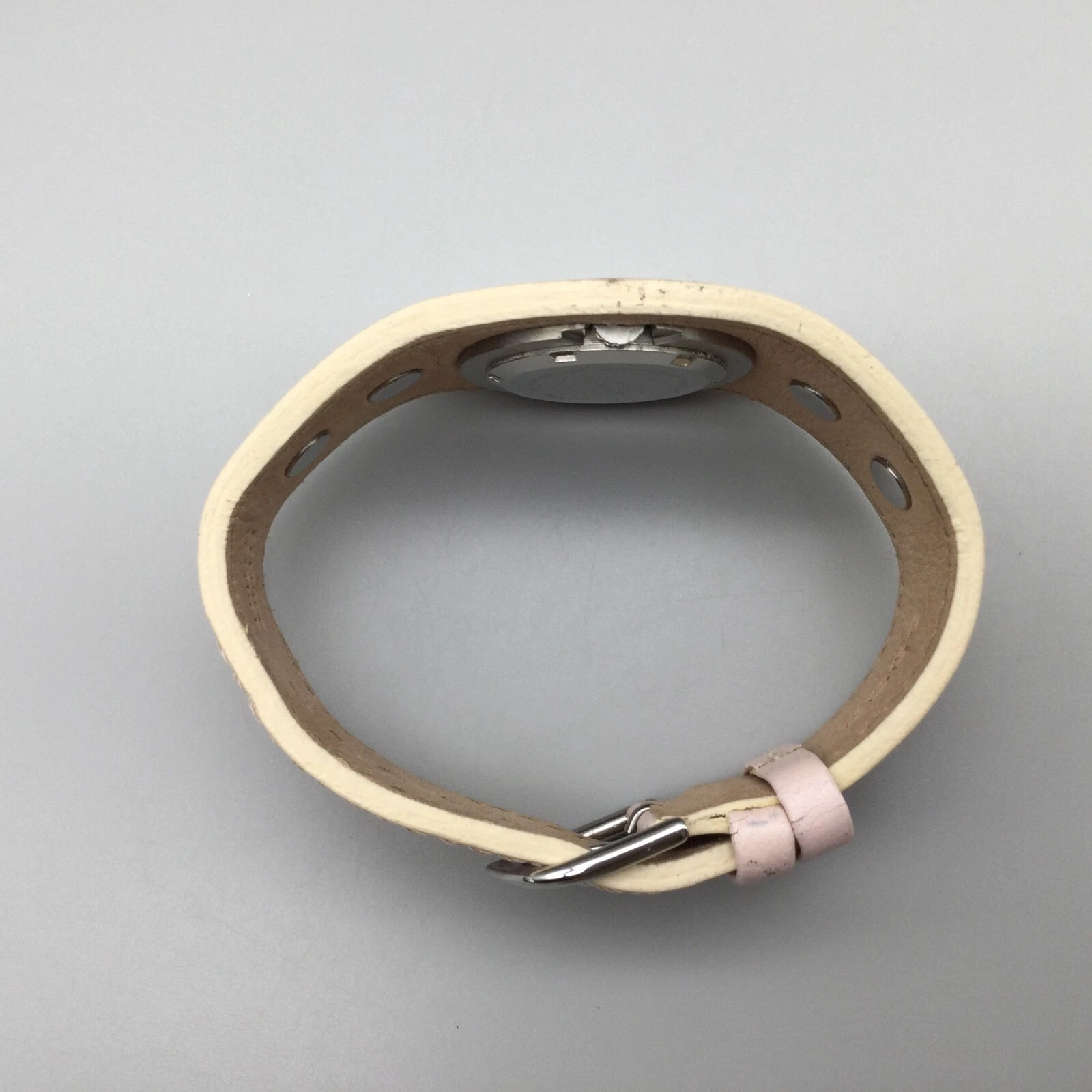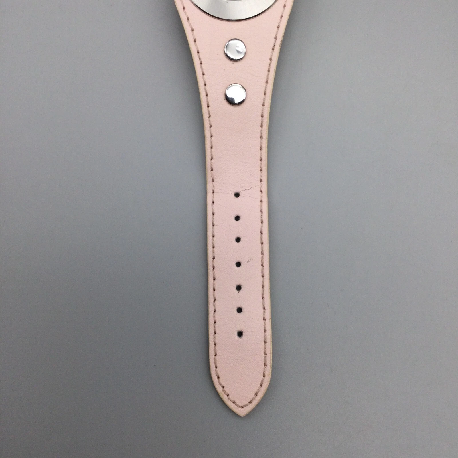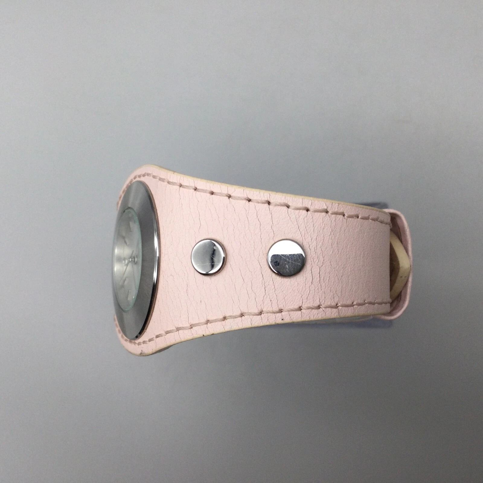 Code Watch Women Silver Tone 30M Pink Wide Leather Cuff Band New Battery