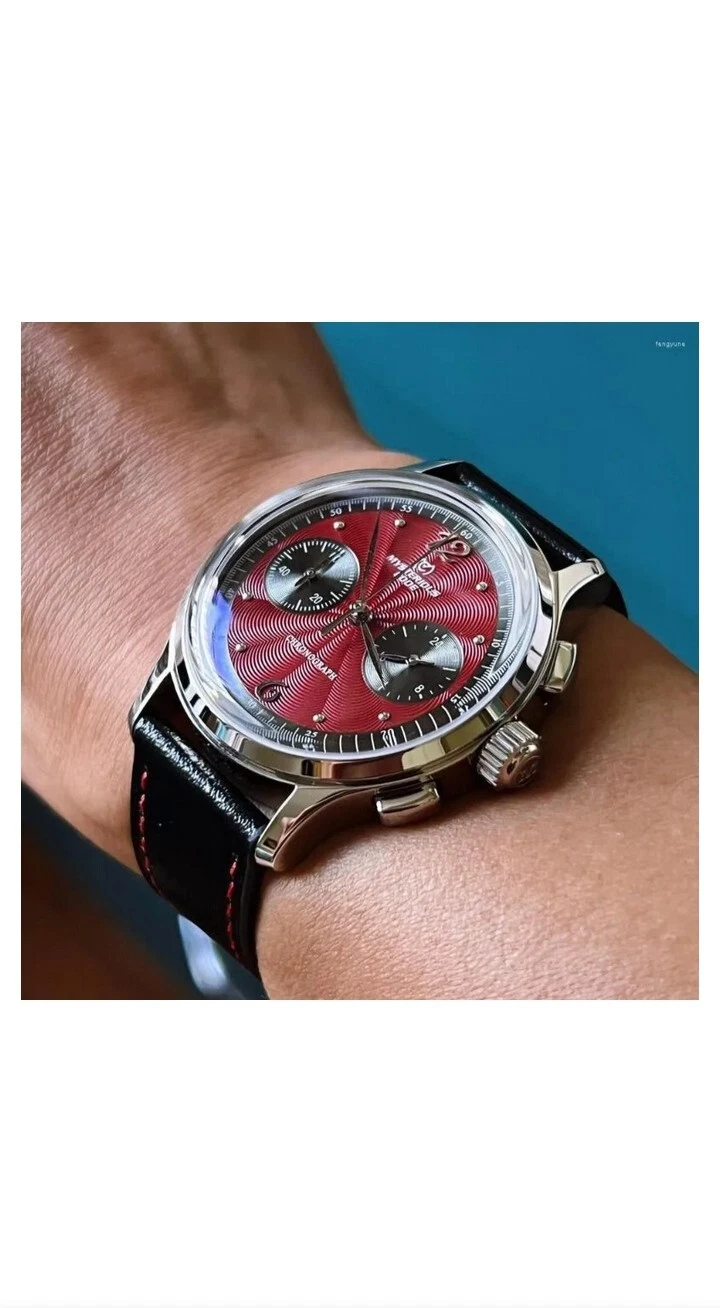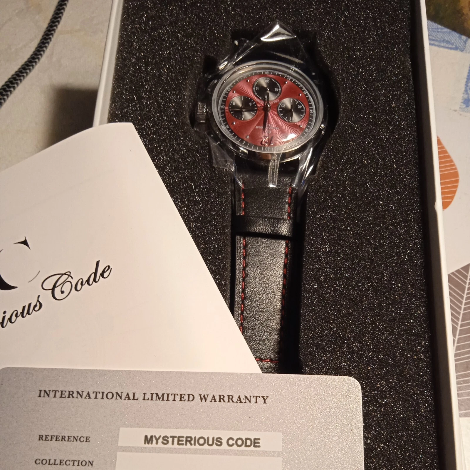 Mysterious Code 37.5mm Red Chronograph Watch, VK64 Meca-Quartz Movement, 50M WR