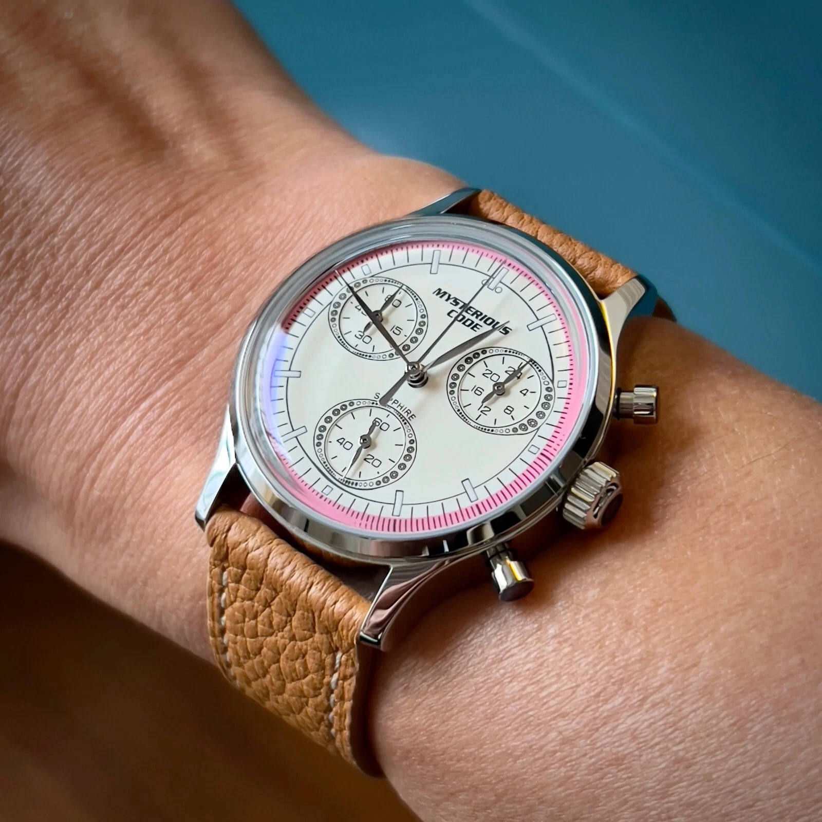 Mysterious Code Men Chronograph Watch Panda Quartz Wristwatch VK64 Triple Window