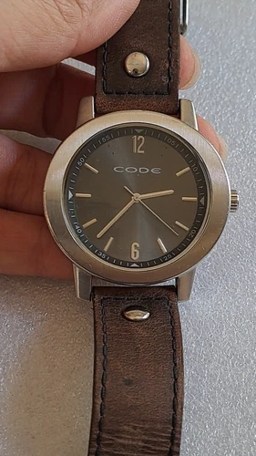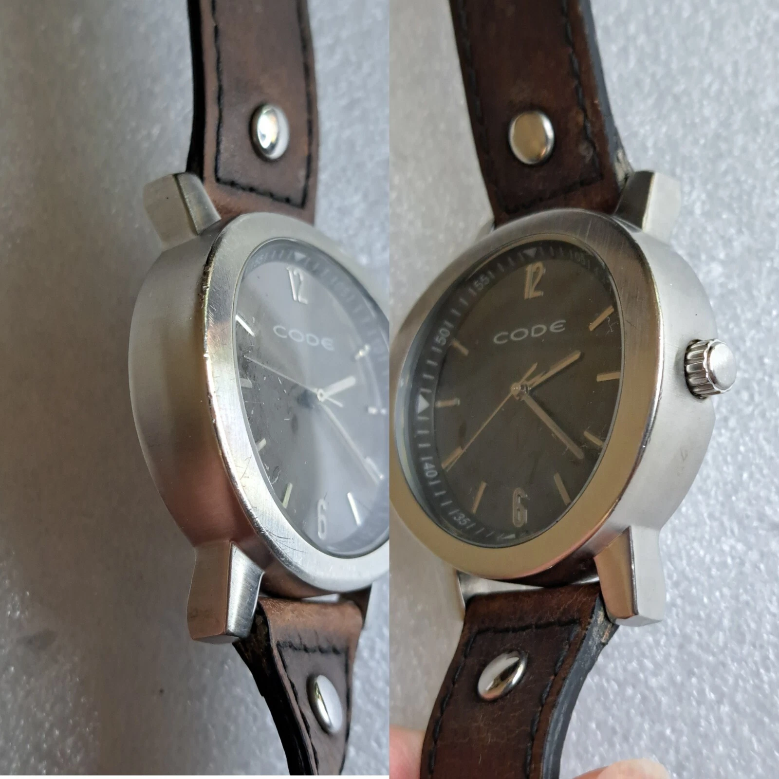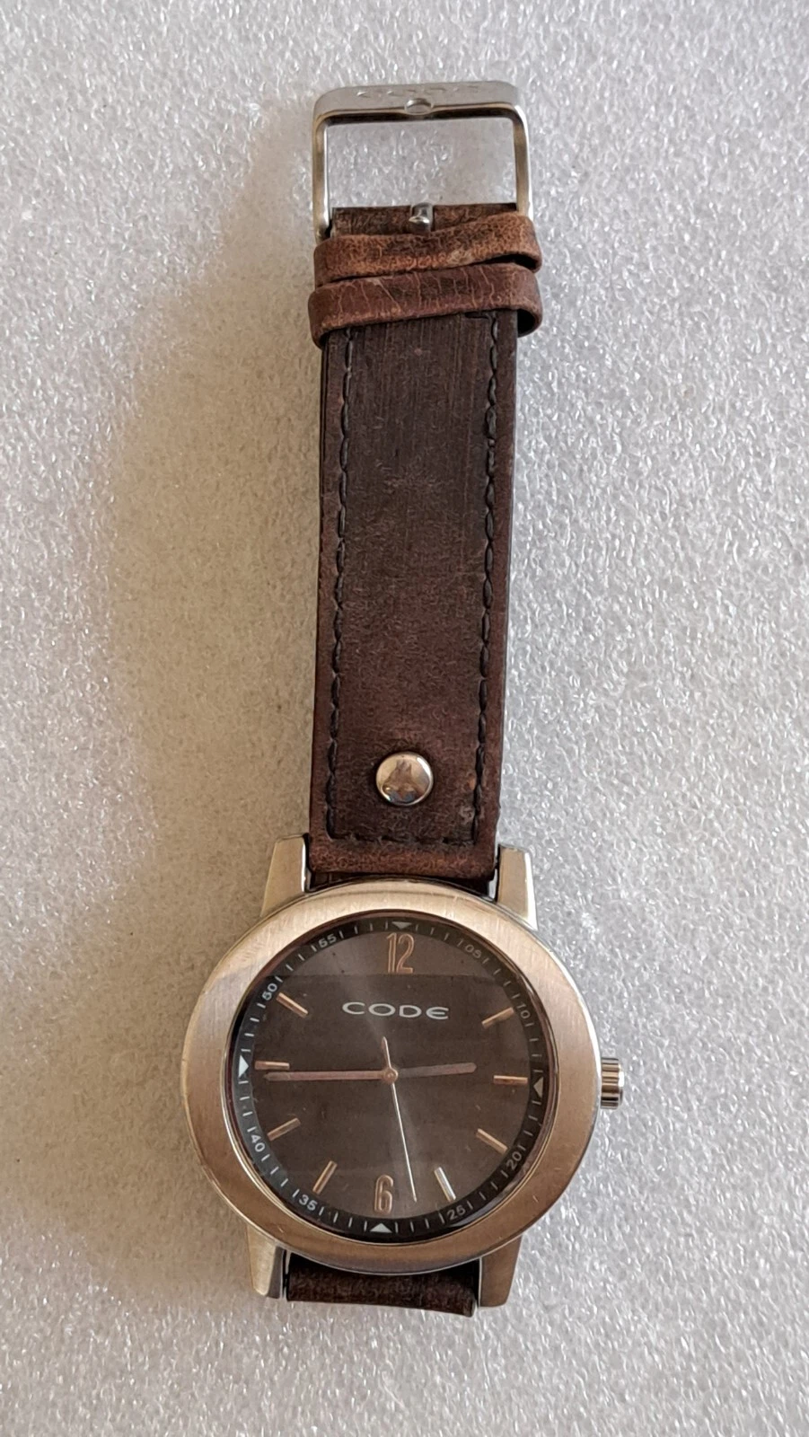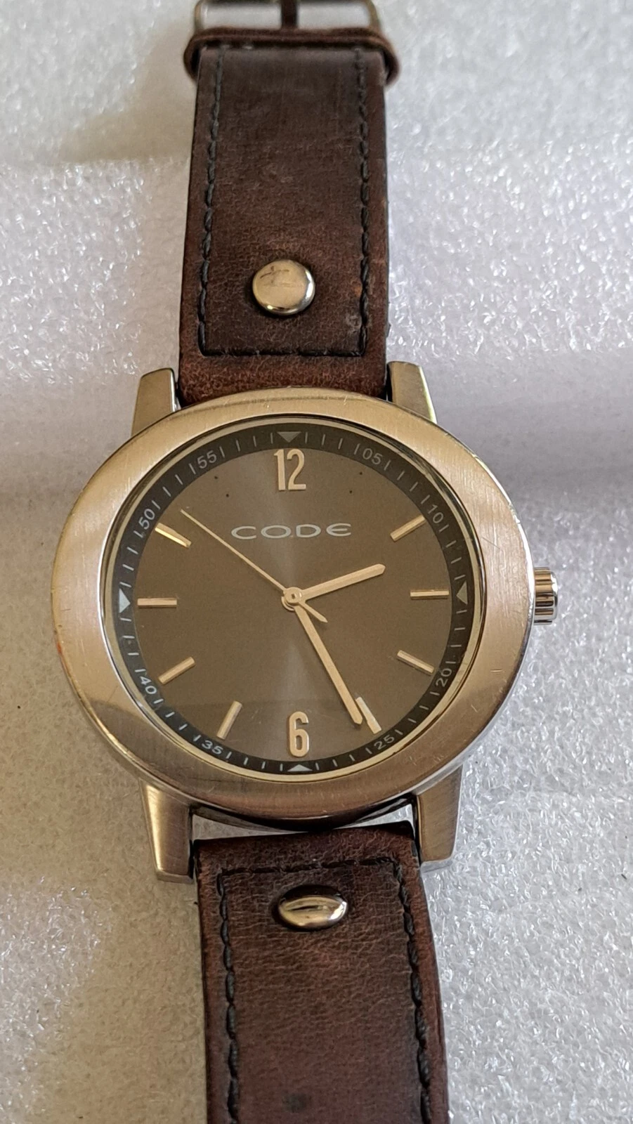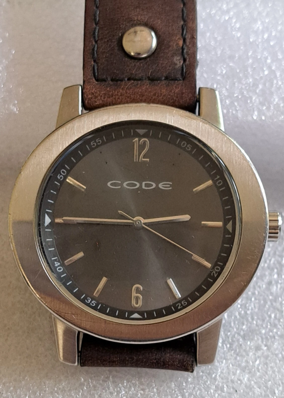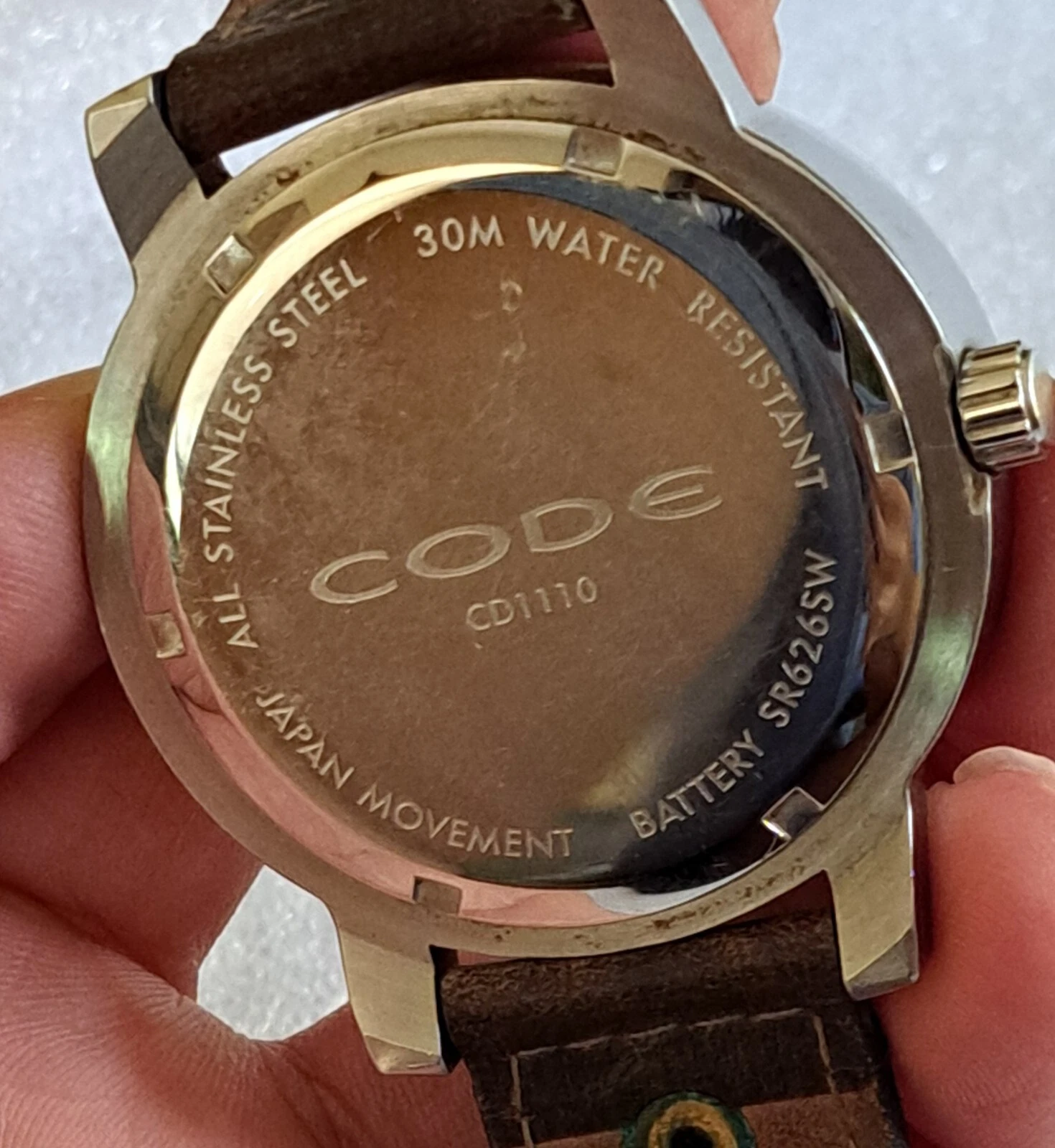 CODE CD1110 All Stainless Steel Genuine Leather Quartz Men's Watch Battery