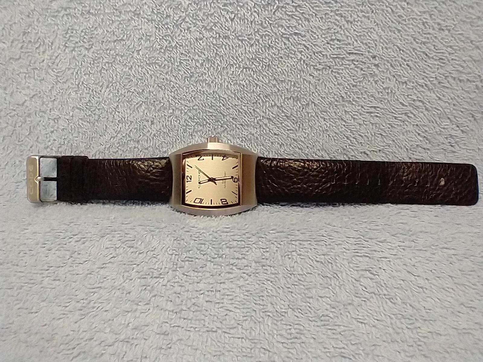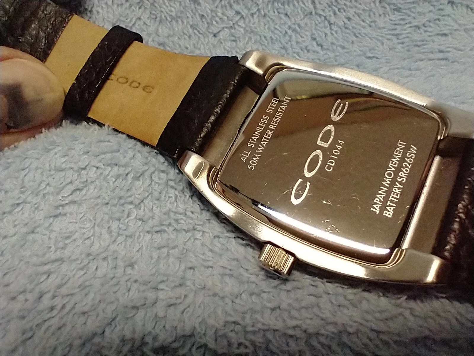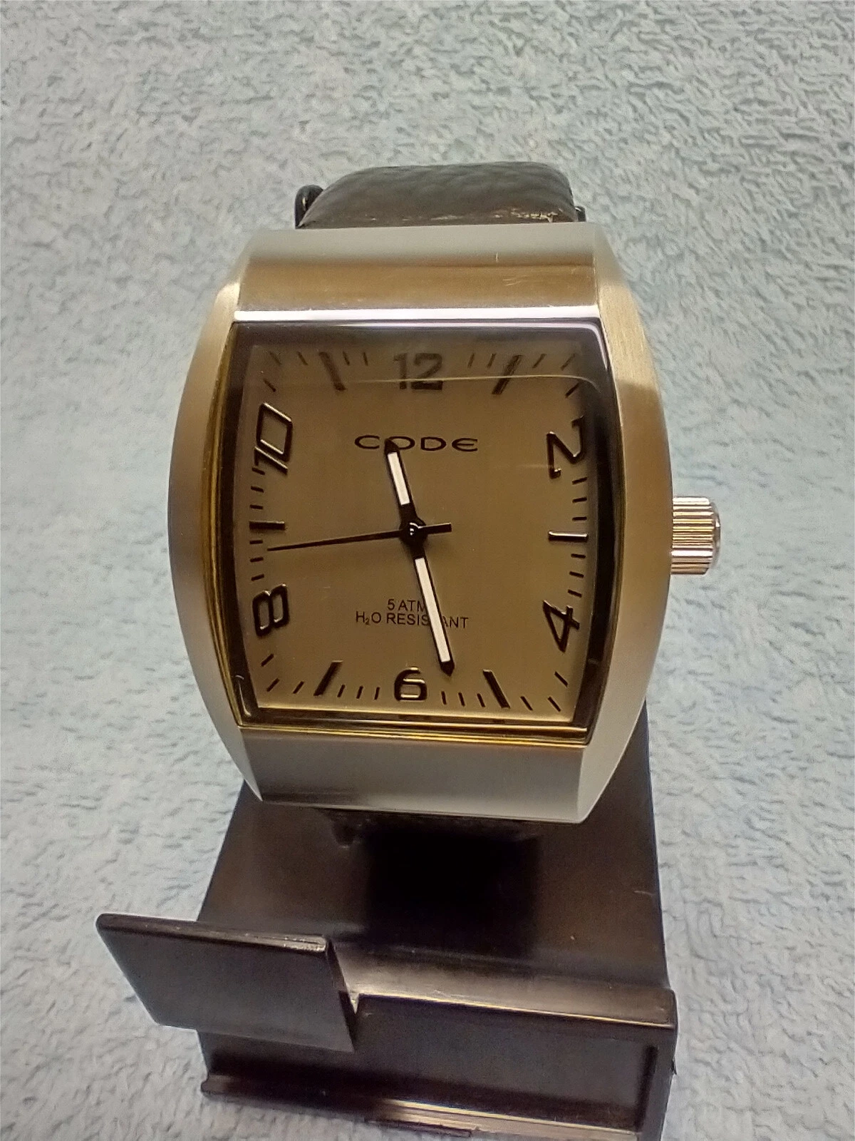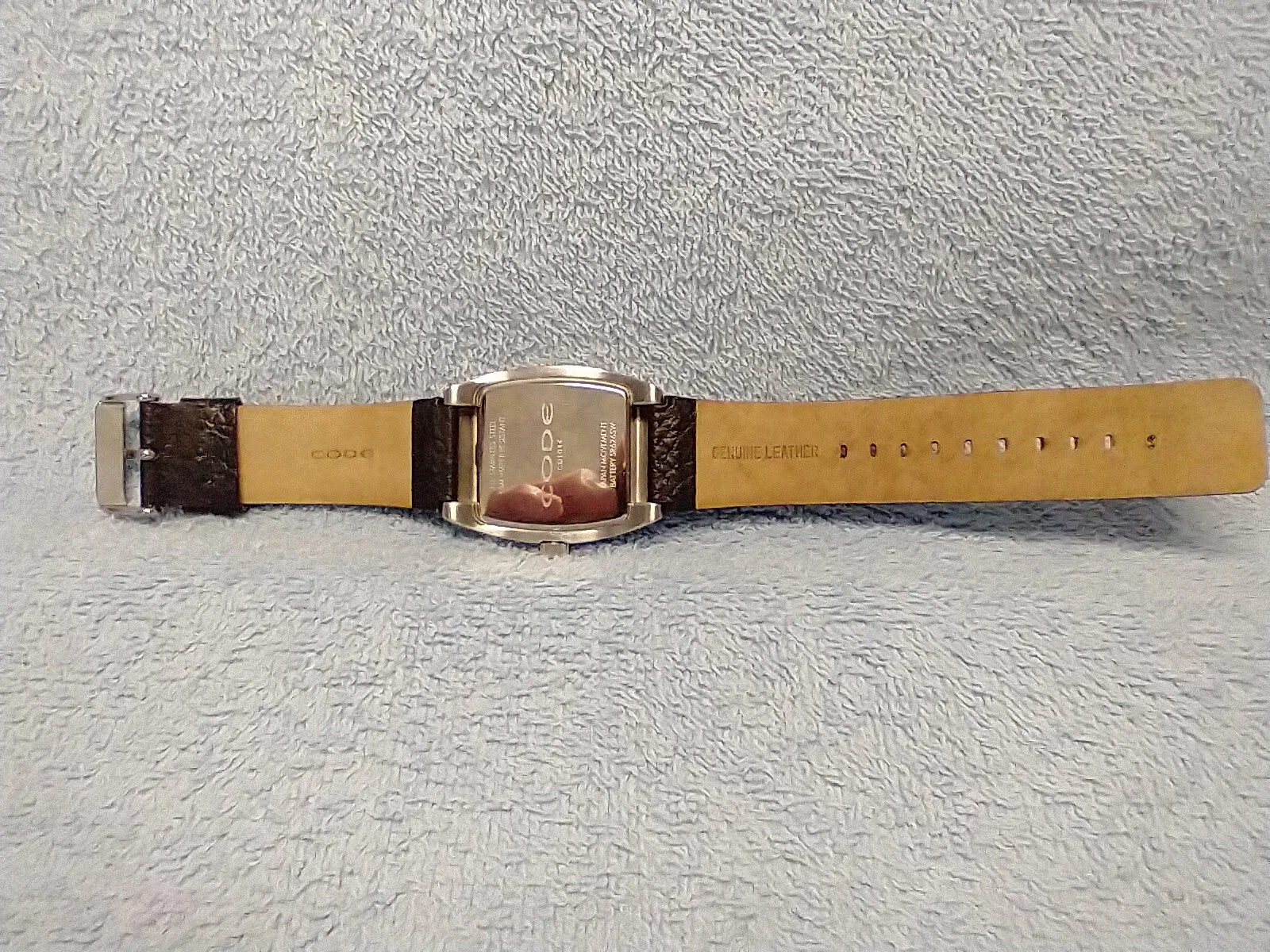 CODE RARE MEN'S RECTANGULAR CURVED ALL S/S JAPANESE MOVEMENT BLACK LEATHER WATCH