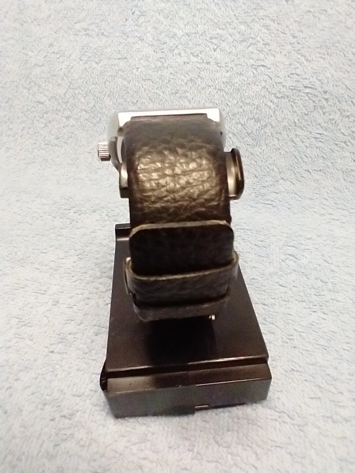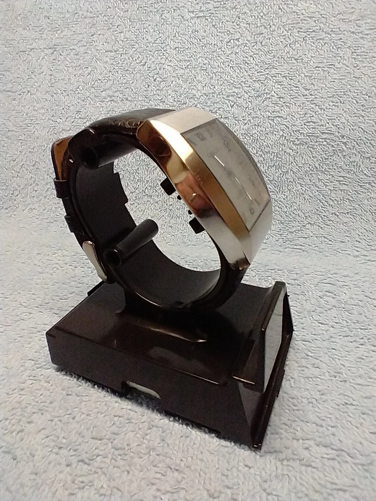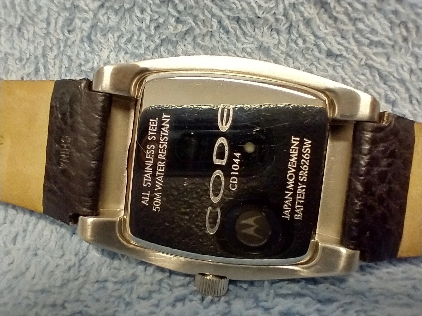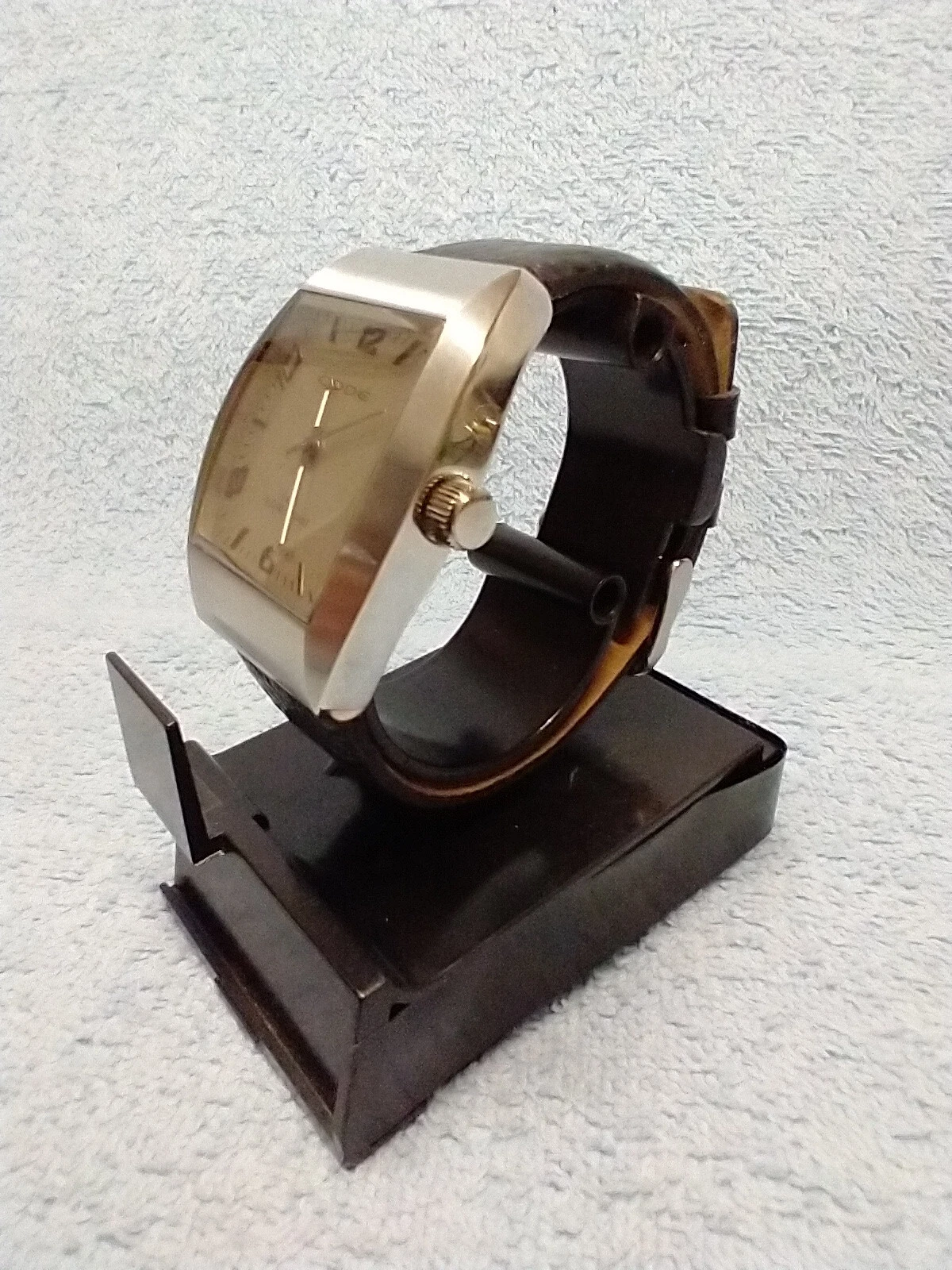 CODE RARE MEN'S RECTANGULAR CURVED ALL S/S JAPANESE MOVEMENT BLACK LEATHER WATCH