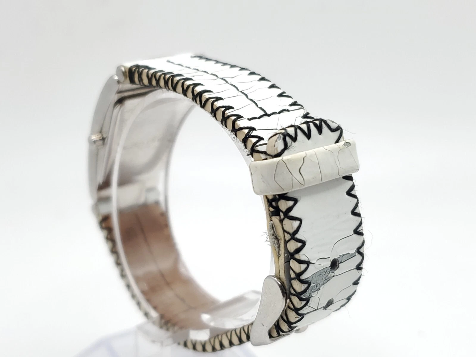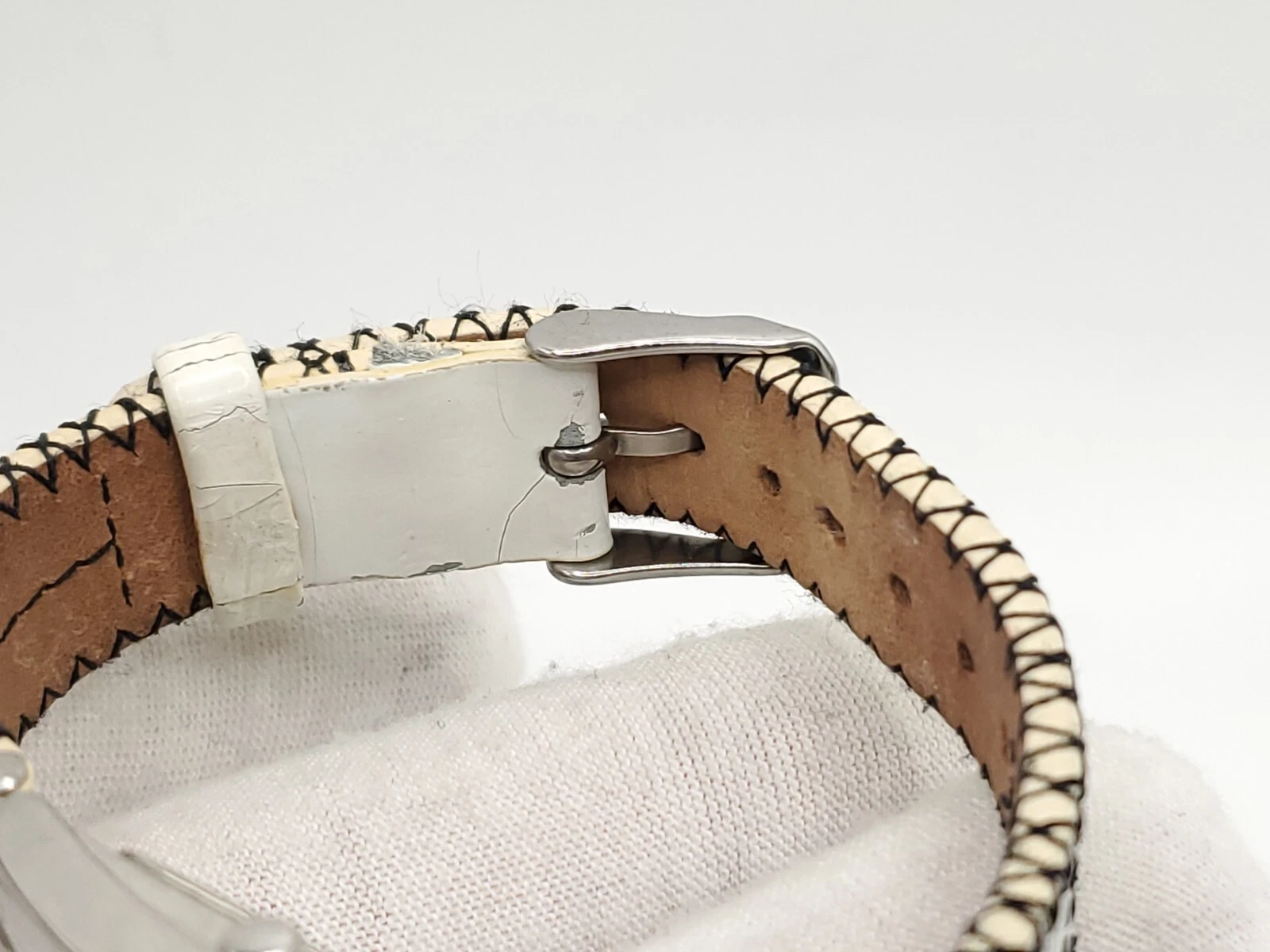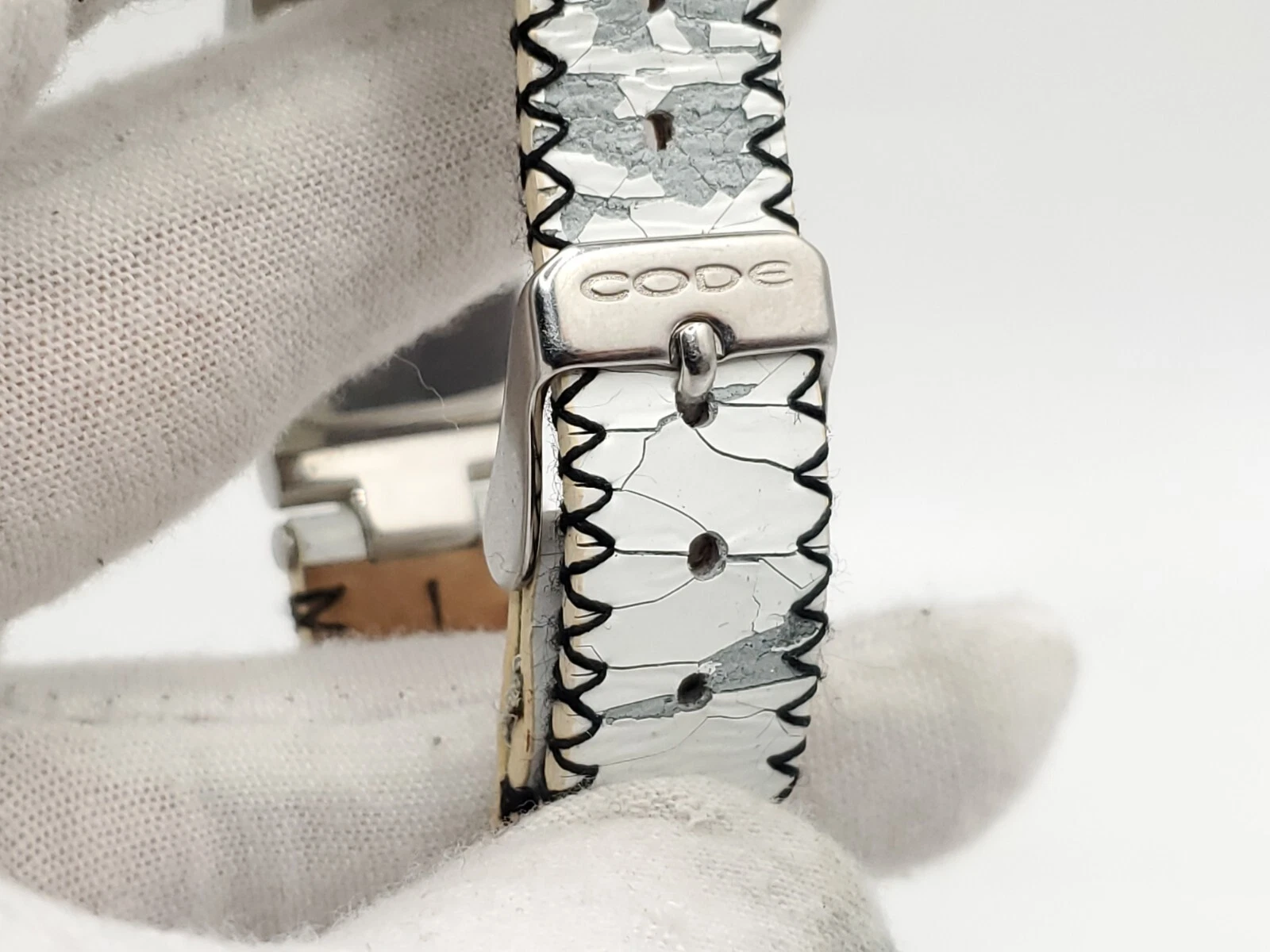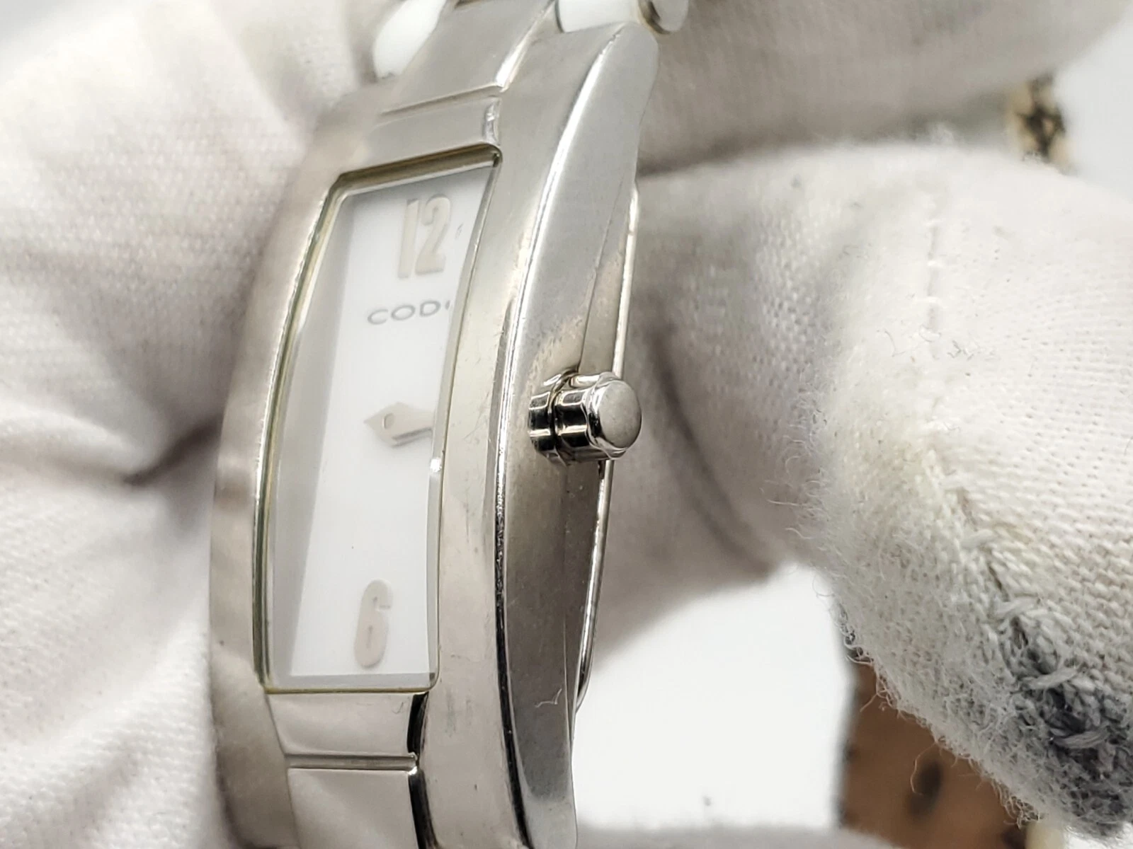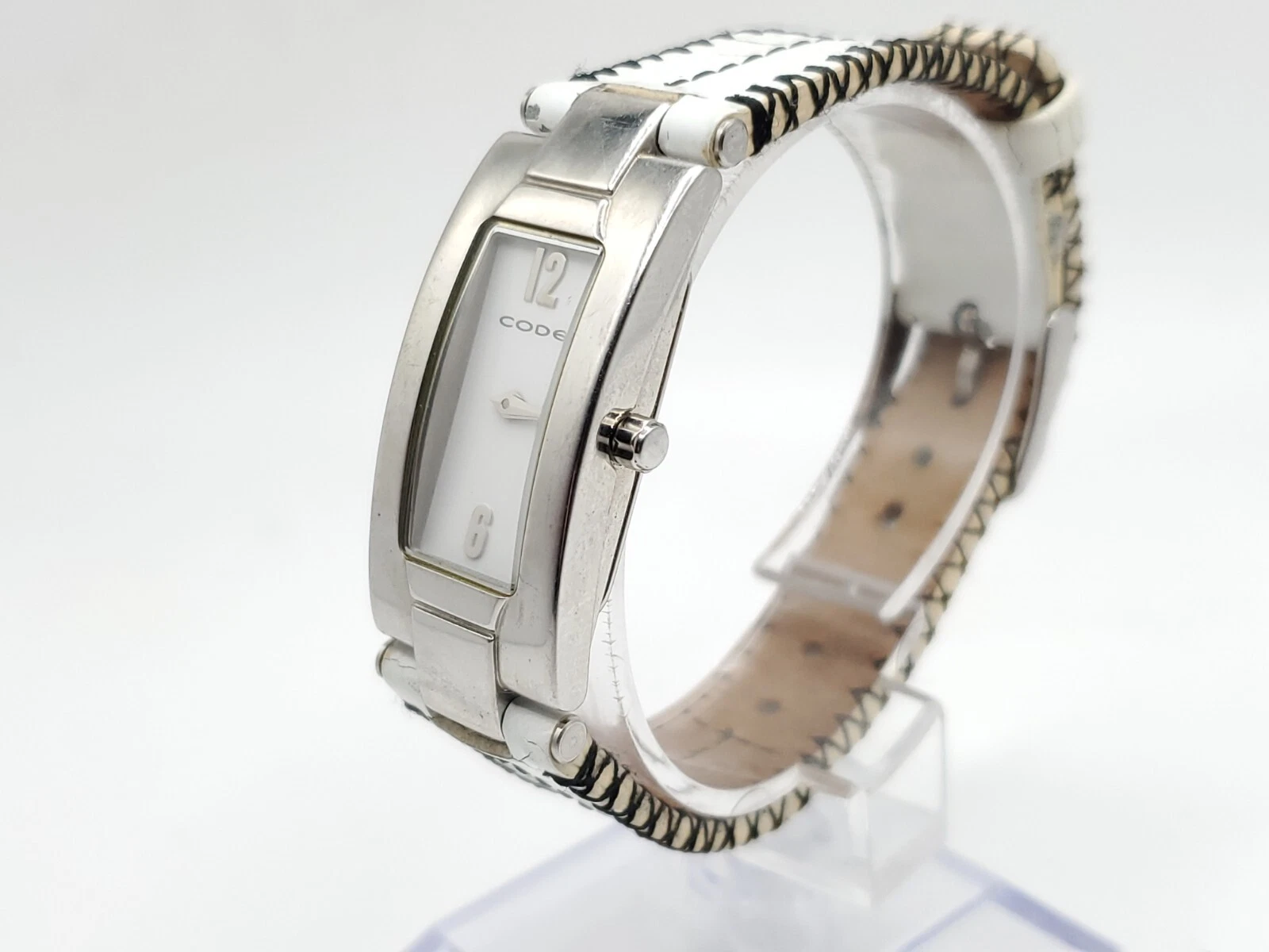Code Quartz Womens Watch New Battery Siver Tone White Dial Rectangle 17mm