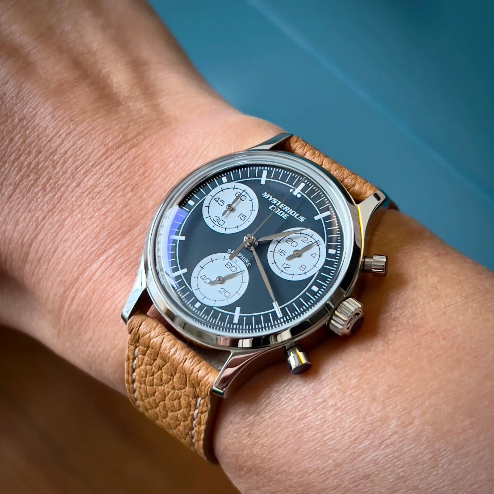 Mysterious Code Men Chronograph Watch Panda Quartz Wristwatch VK64 Triple Window