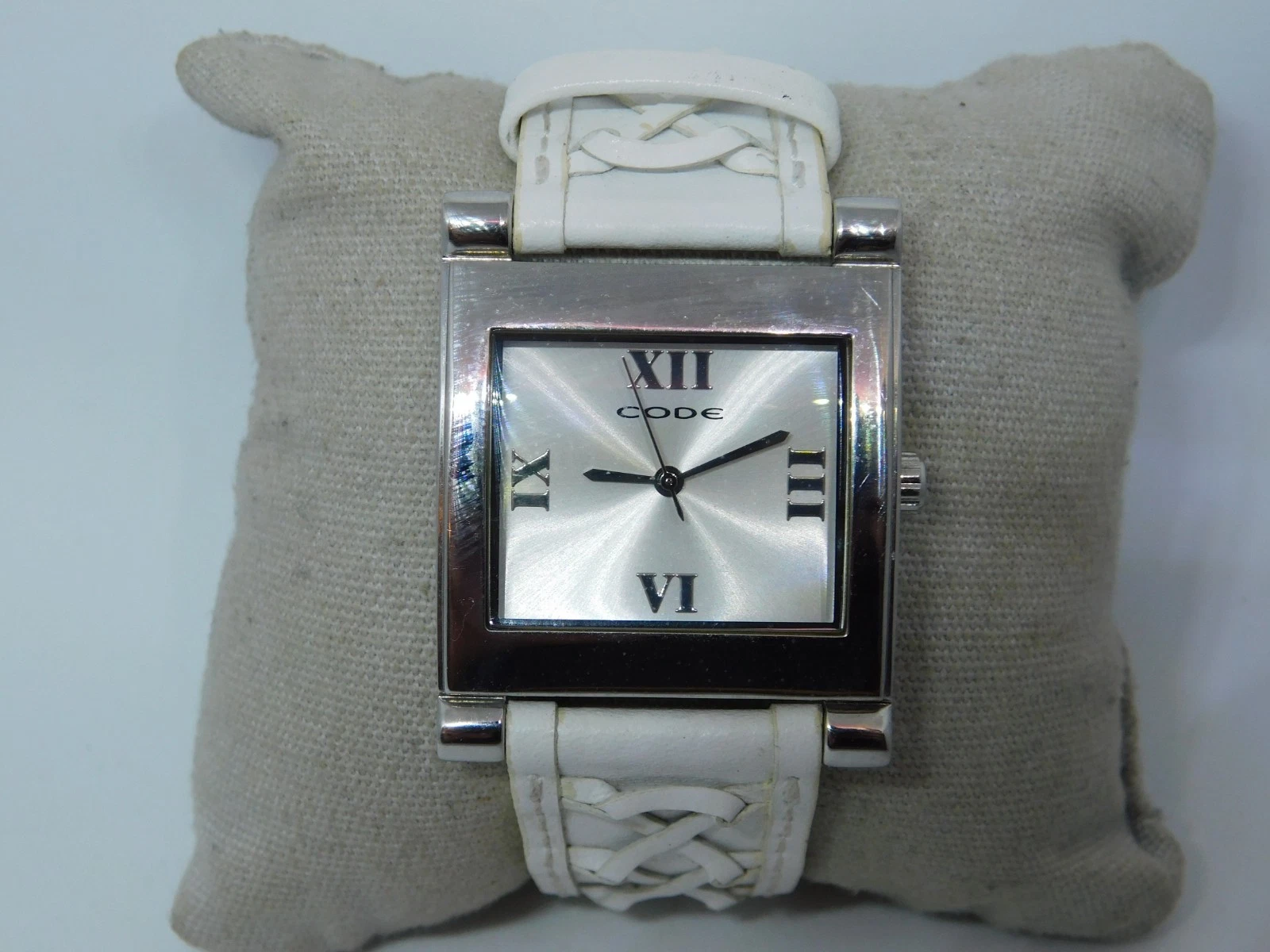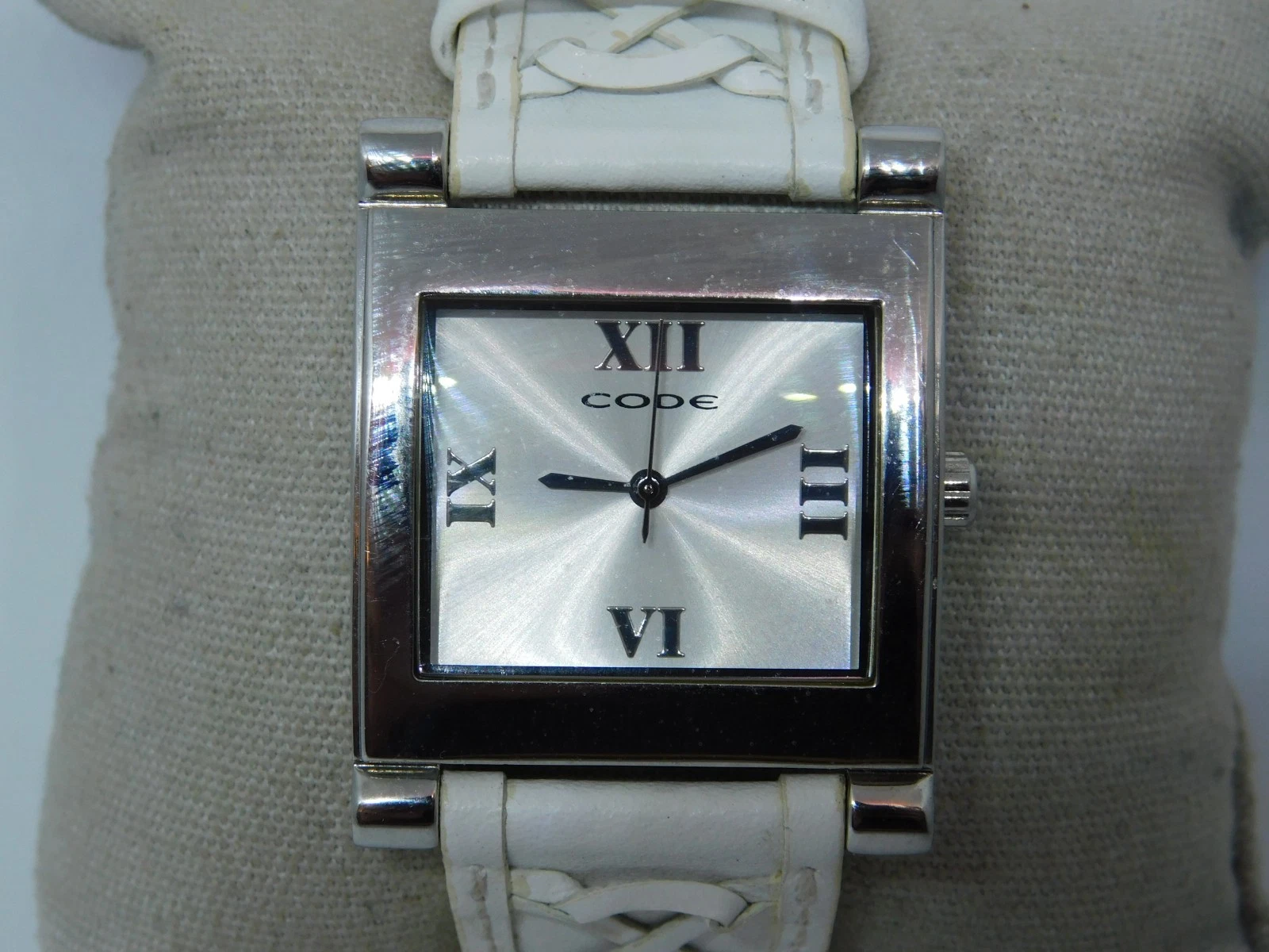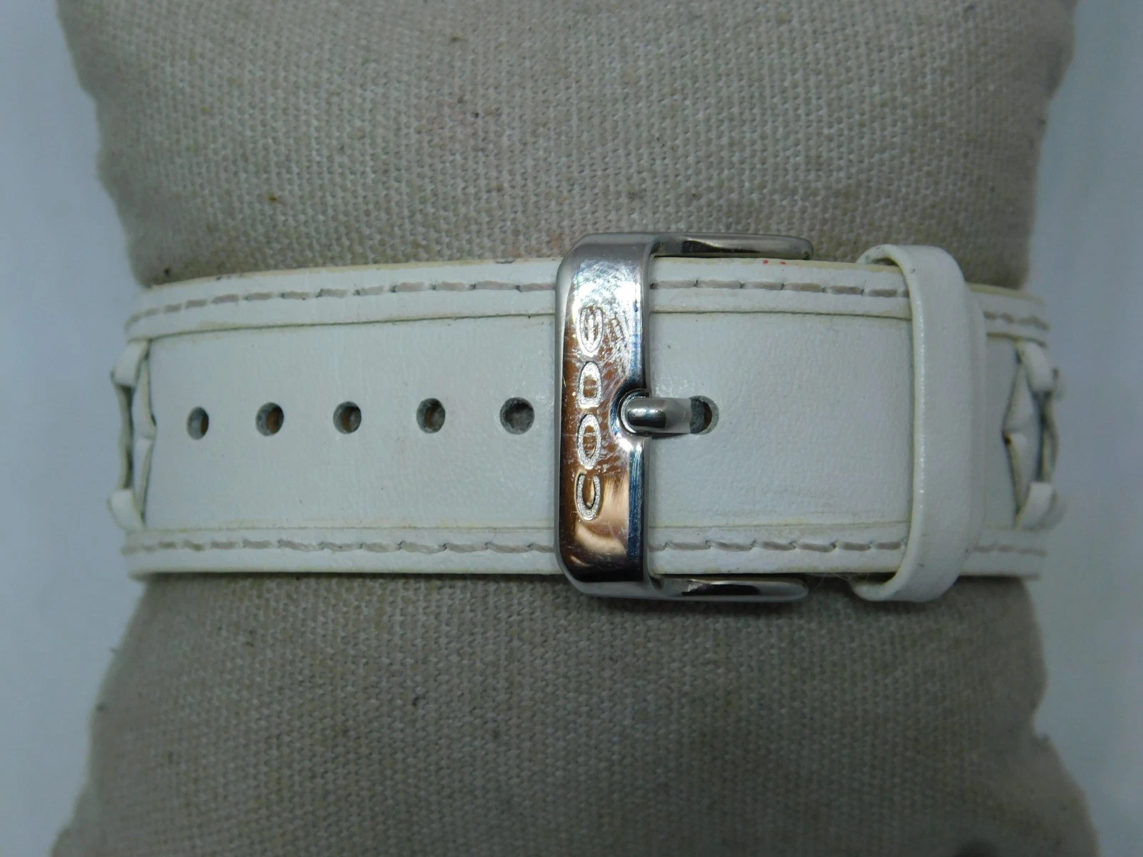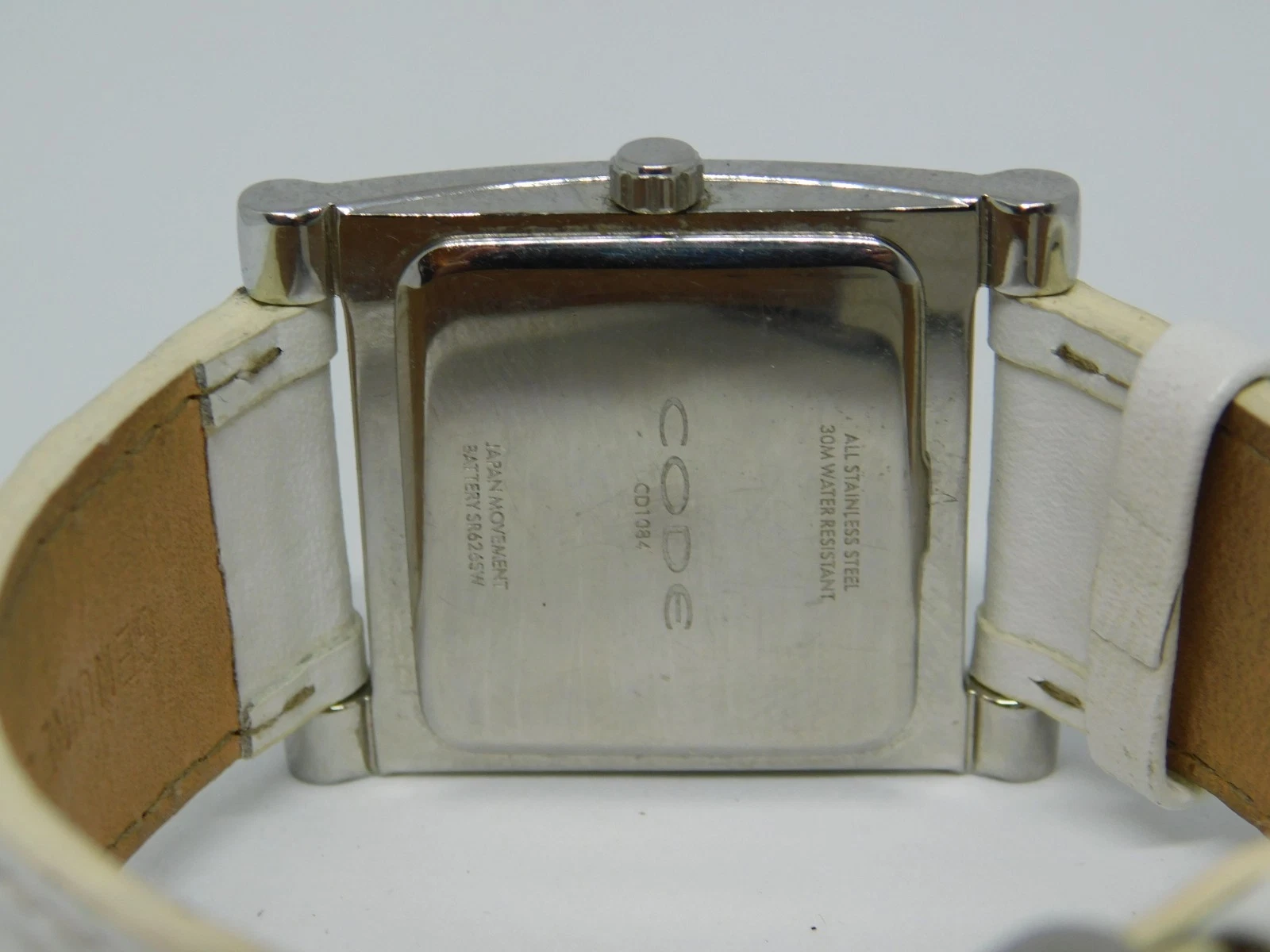 Code CD1084 White Genuine Leather Band Quartz Analog Women's Watch New Battery