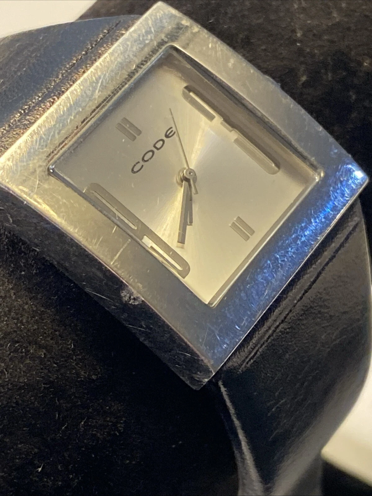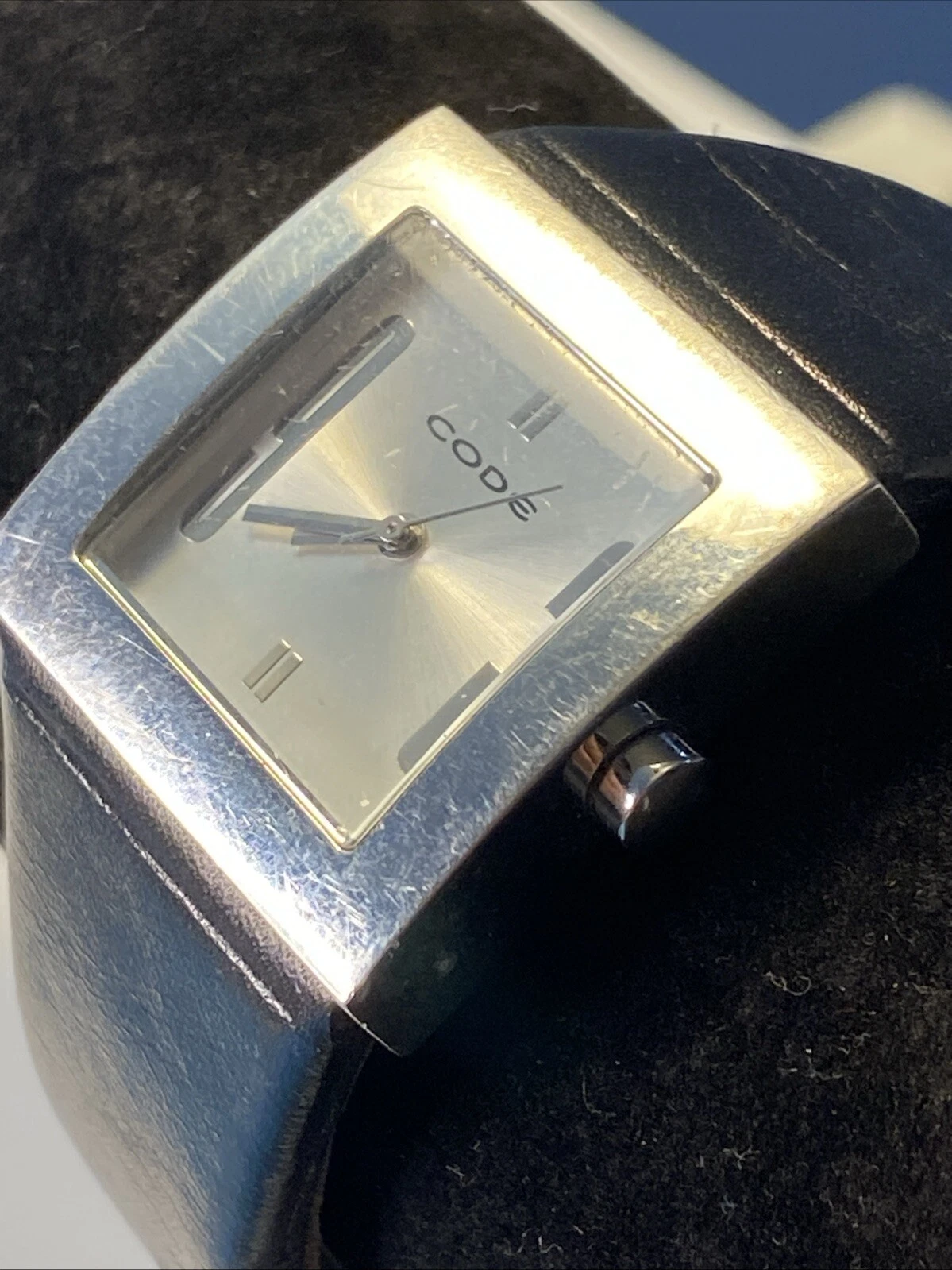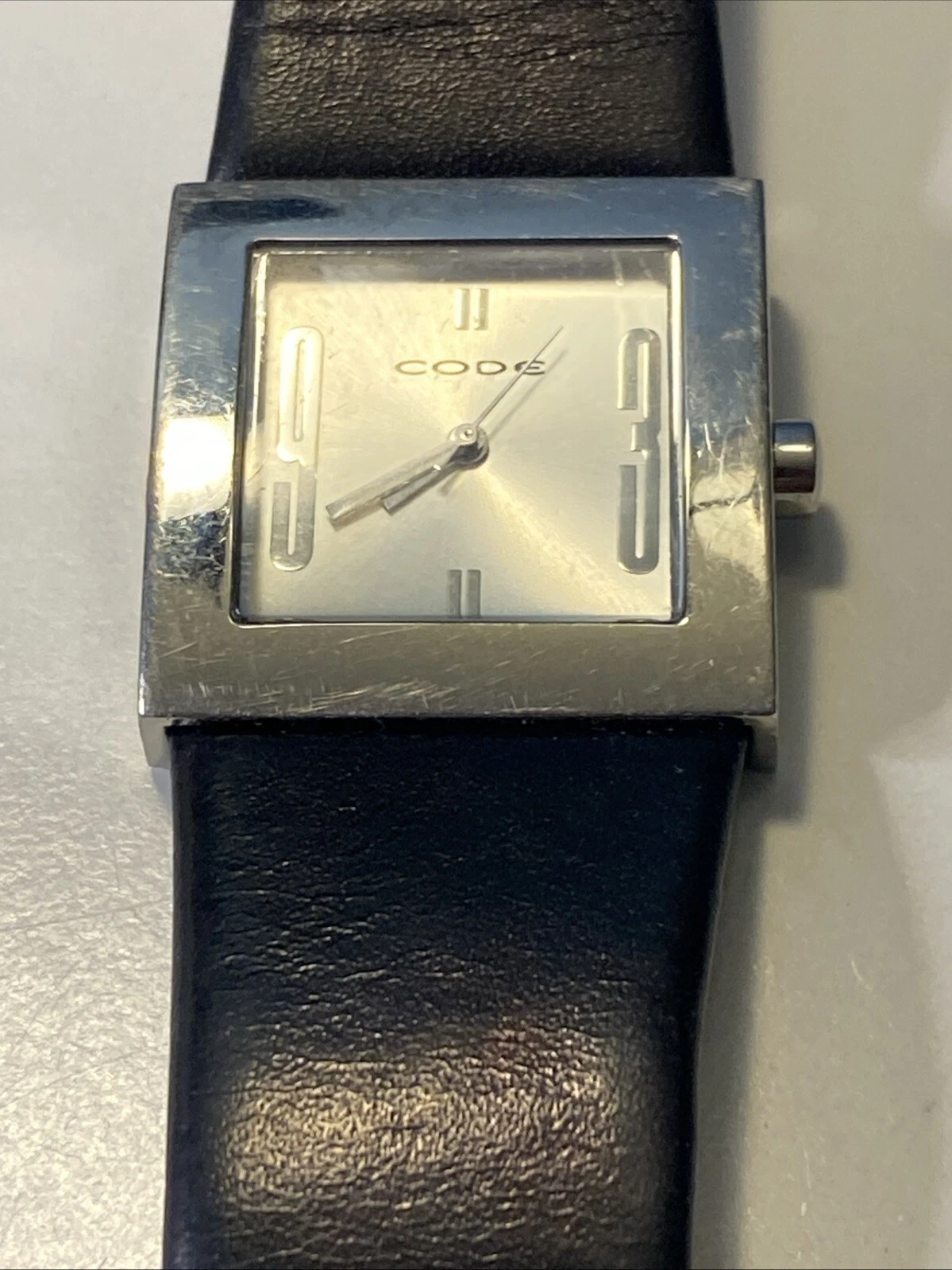 Code Black Genuine Leather Band Quartz Analog Women's Watch New Battery