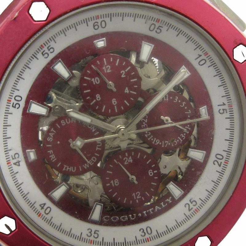COGU GY04 Men's Automatic Analog Watch Red Dial Stainless Steel Band
