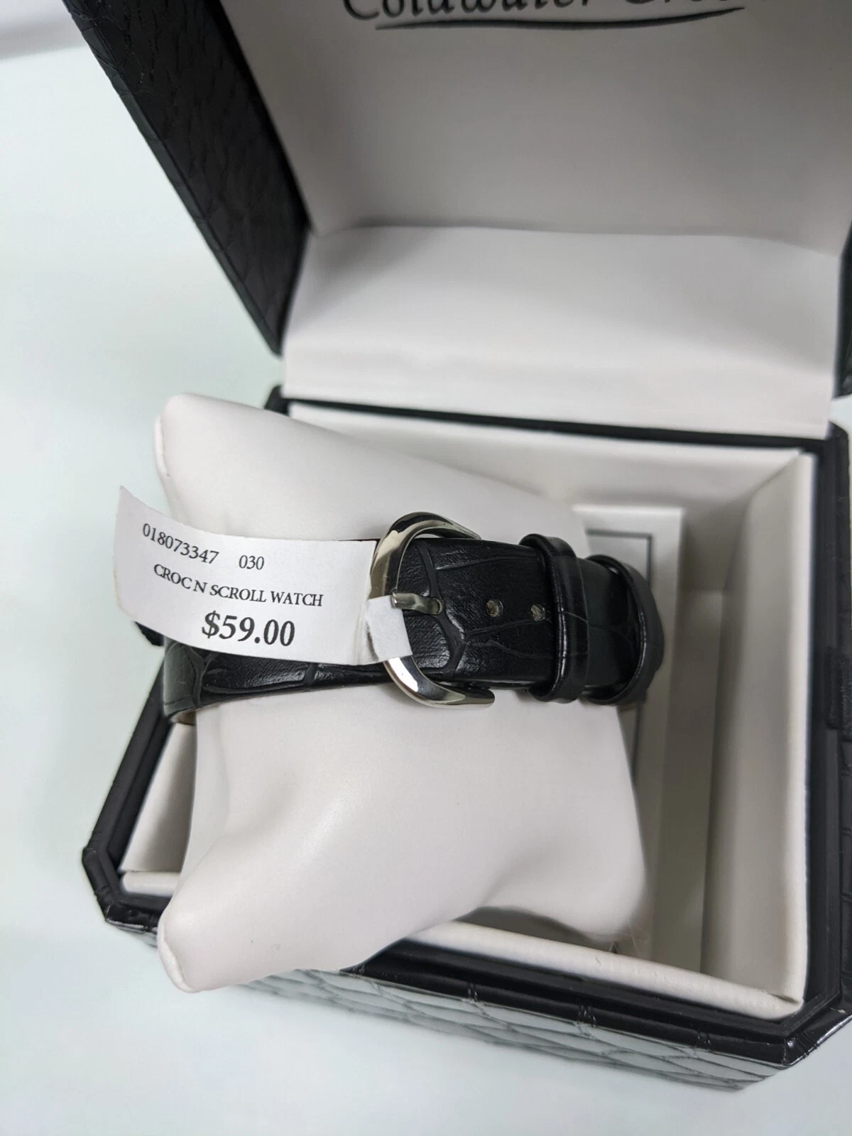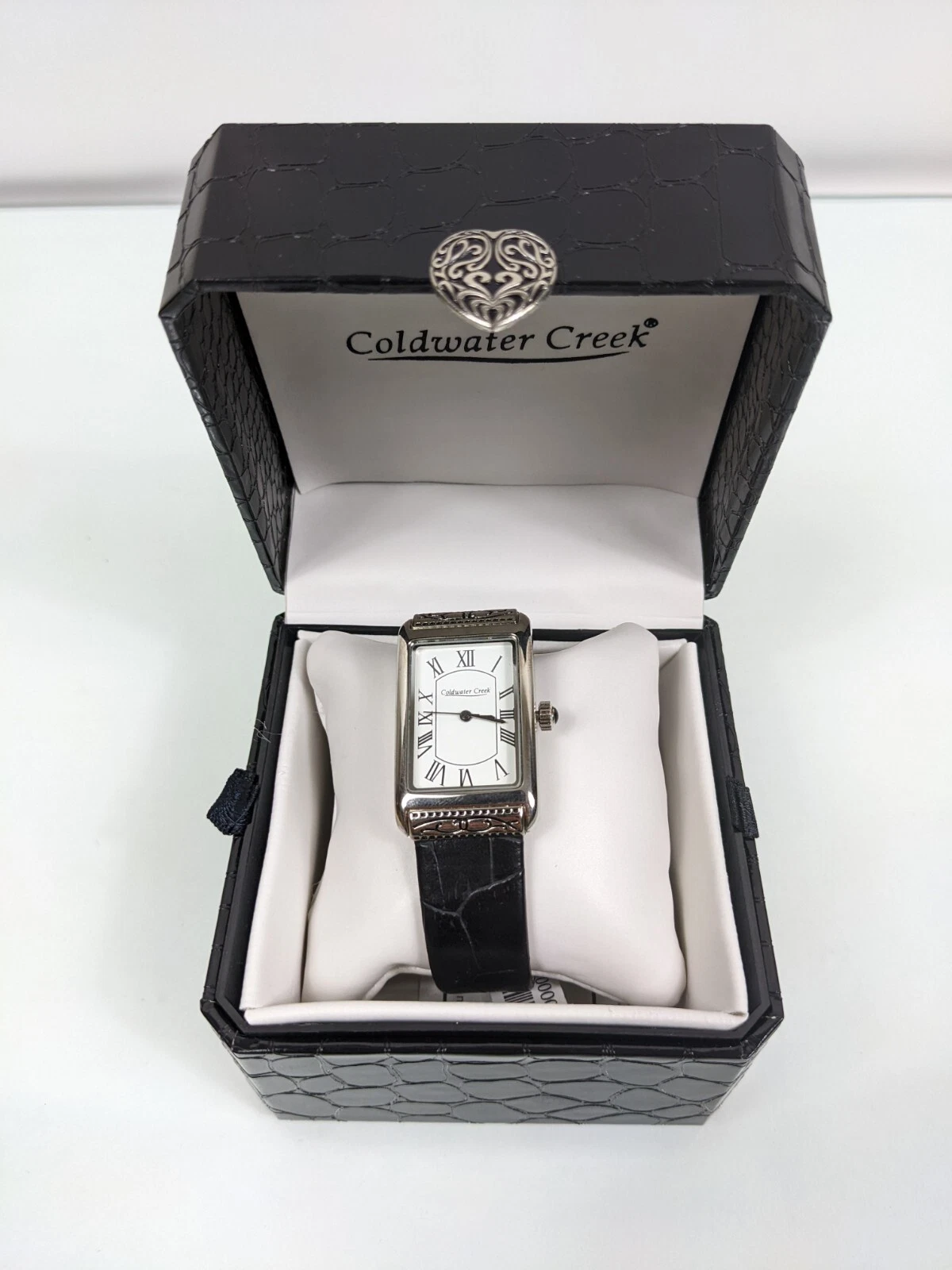 Tank Watch Pedre Black  Croc and Scroll Band Coldwater Creek