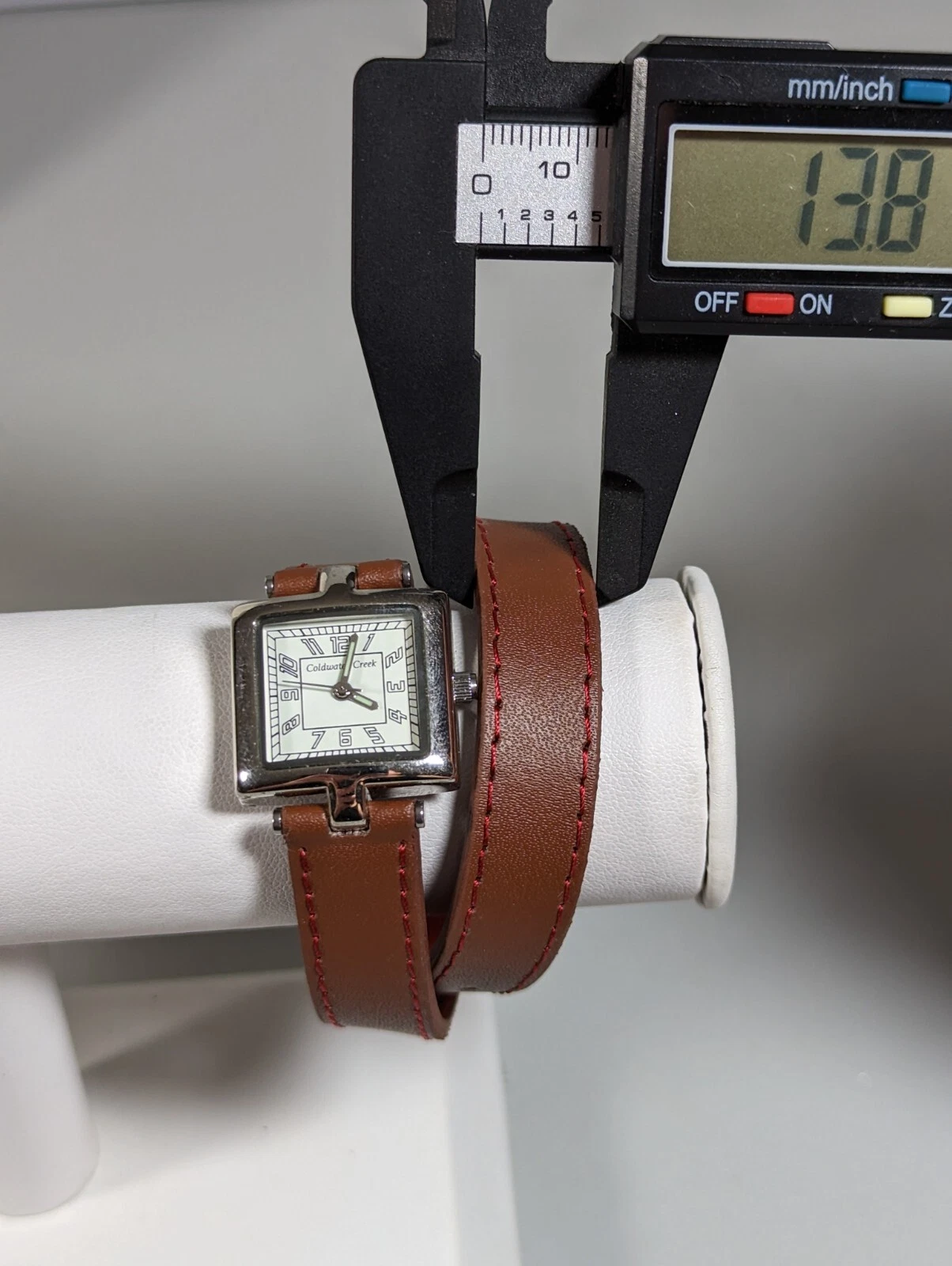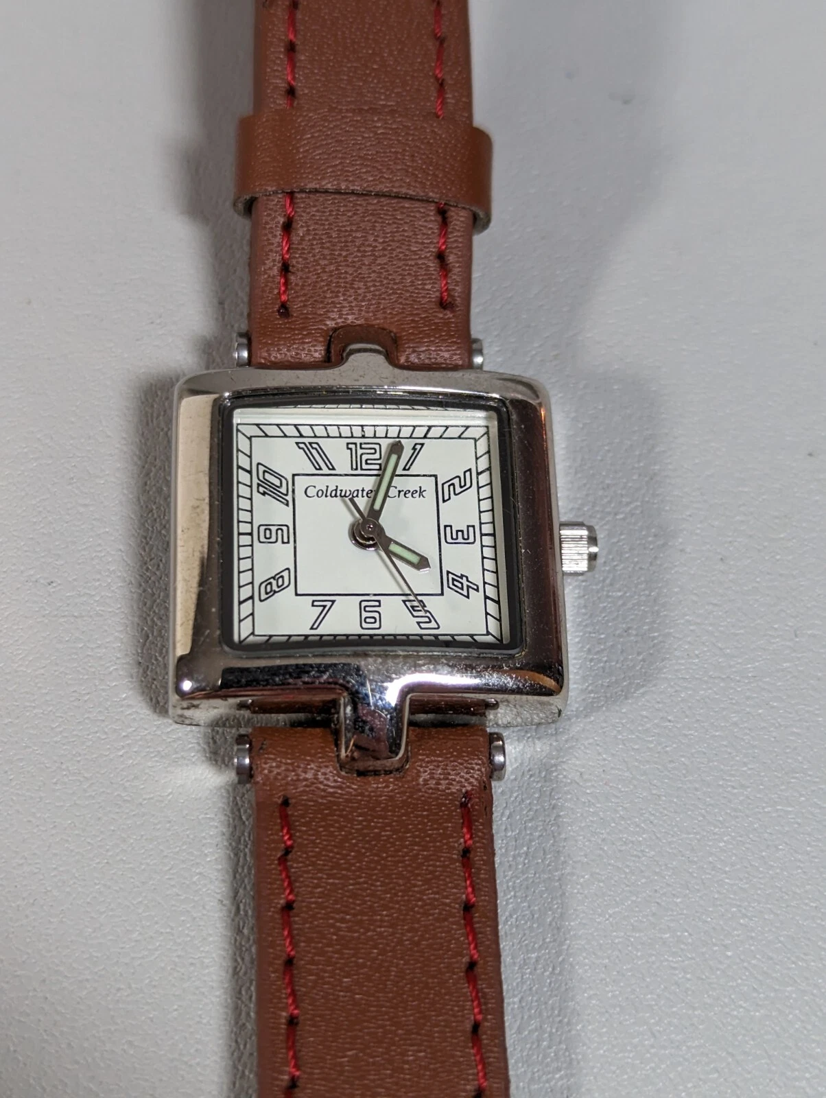 Coldwater Creek Silver Tone Square Case red Leather Wrap Band Watch