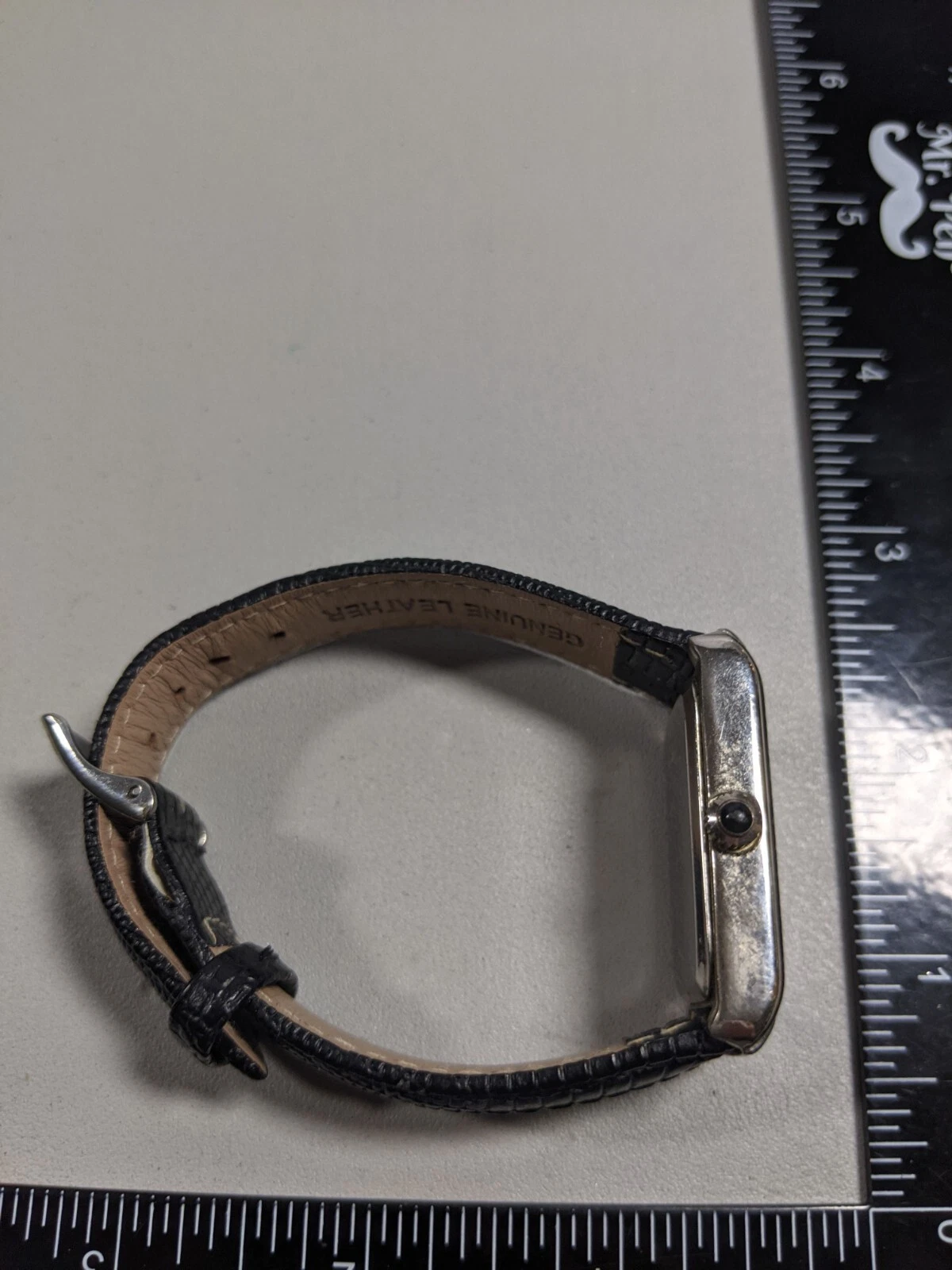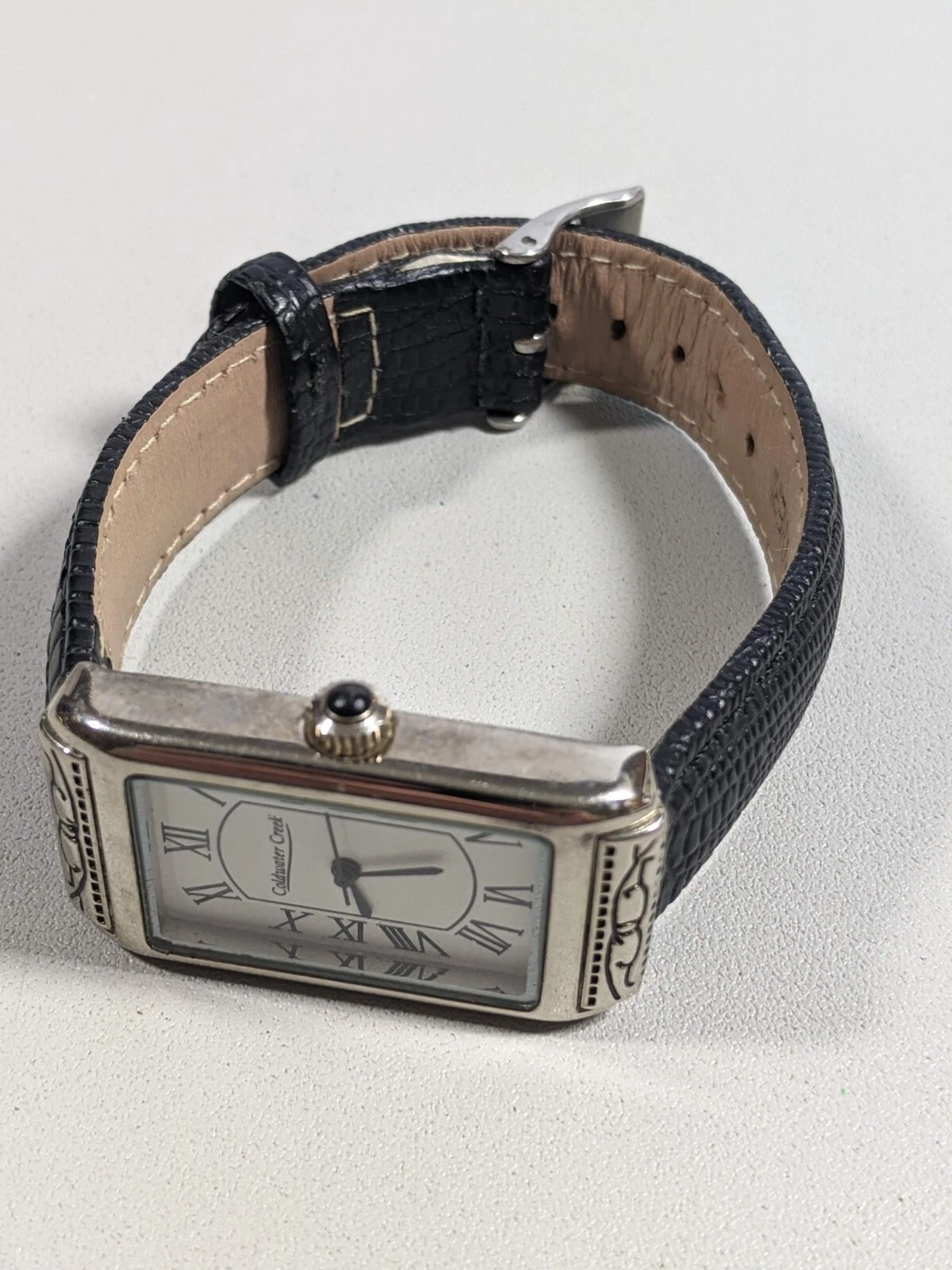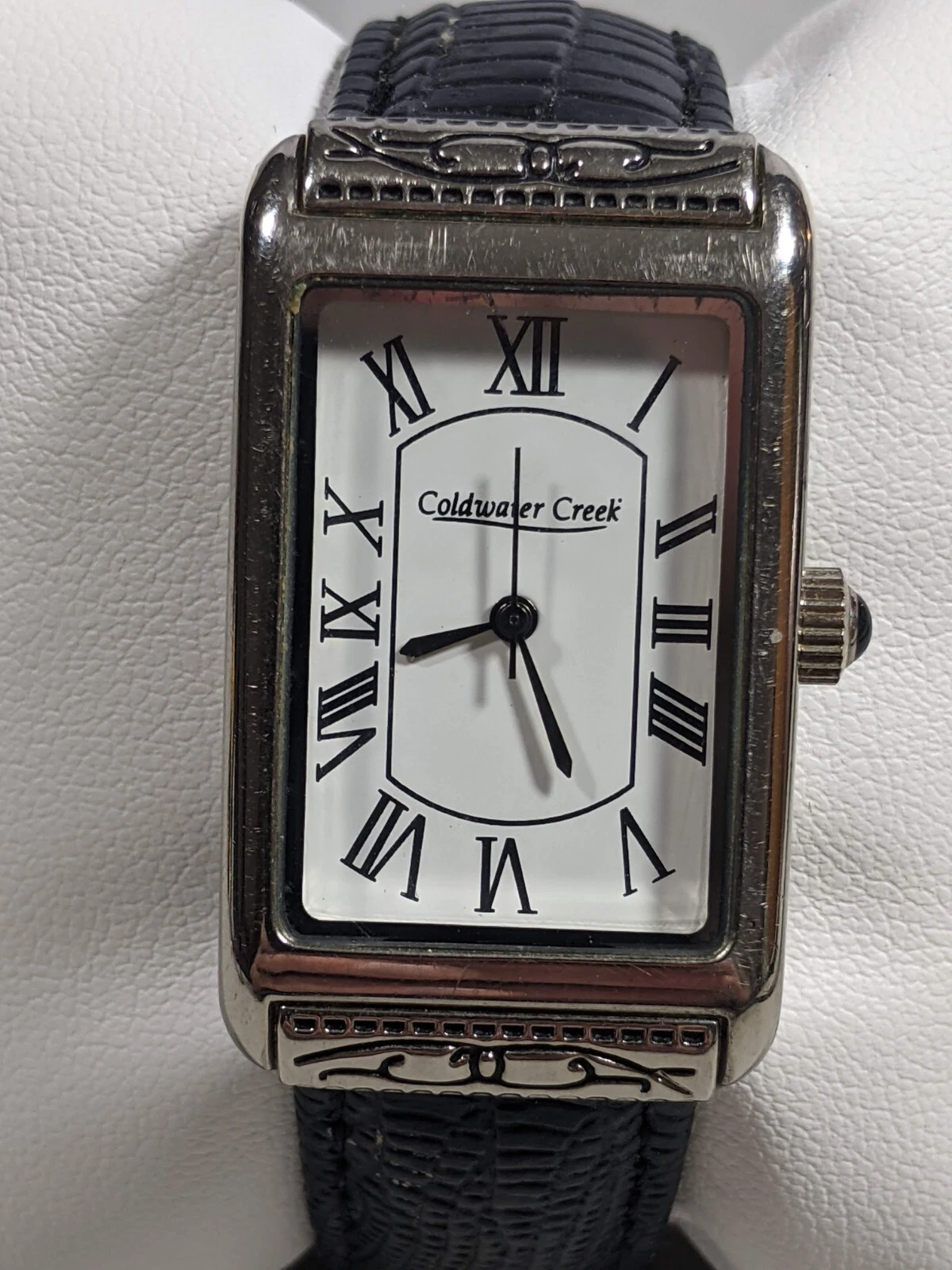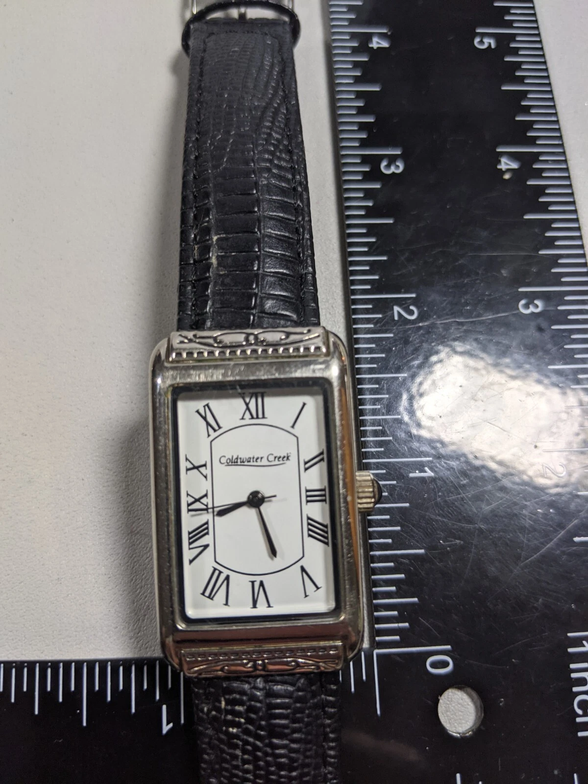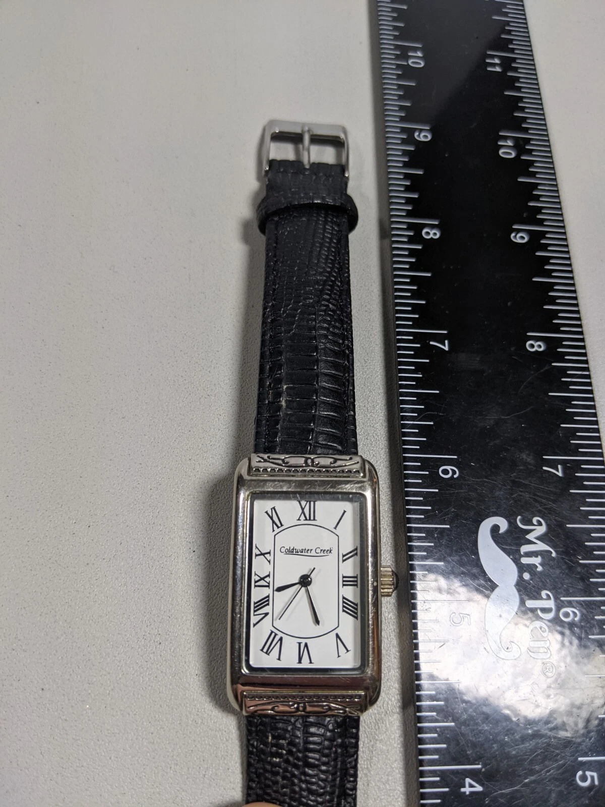 Coldwater Creek White Dial Classic Style Rectangle Case Black Leather Band Watch