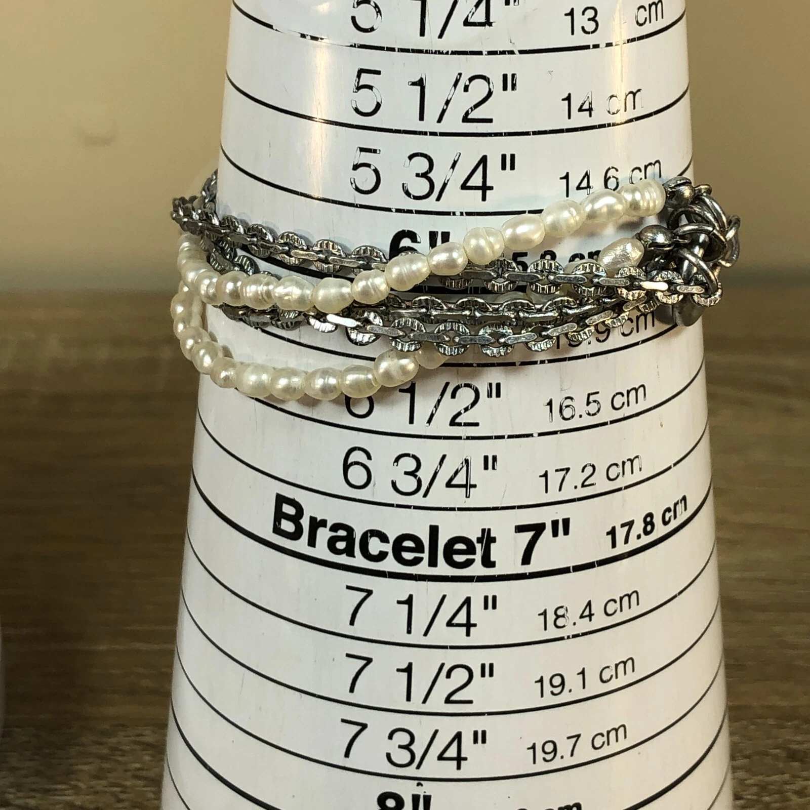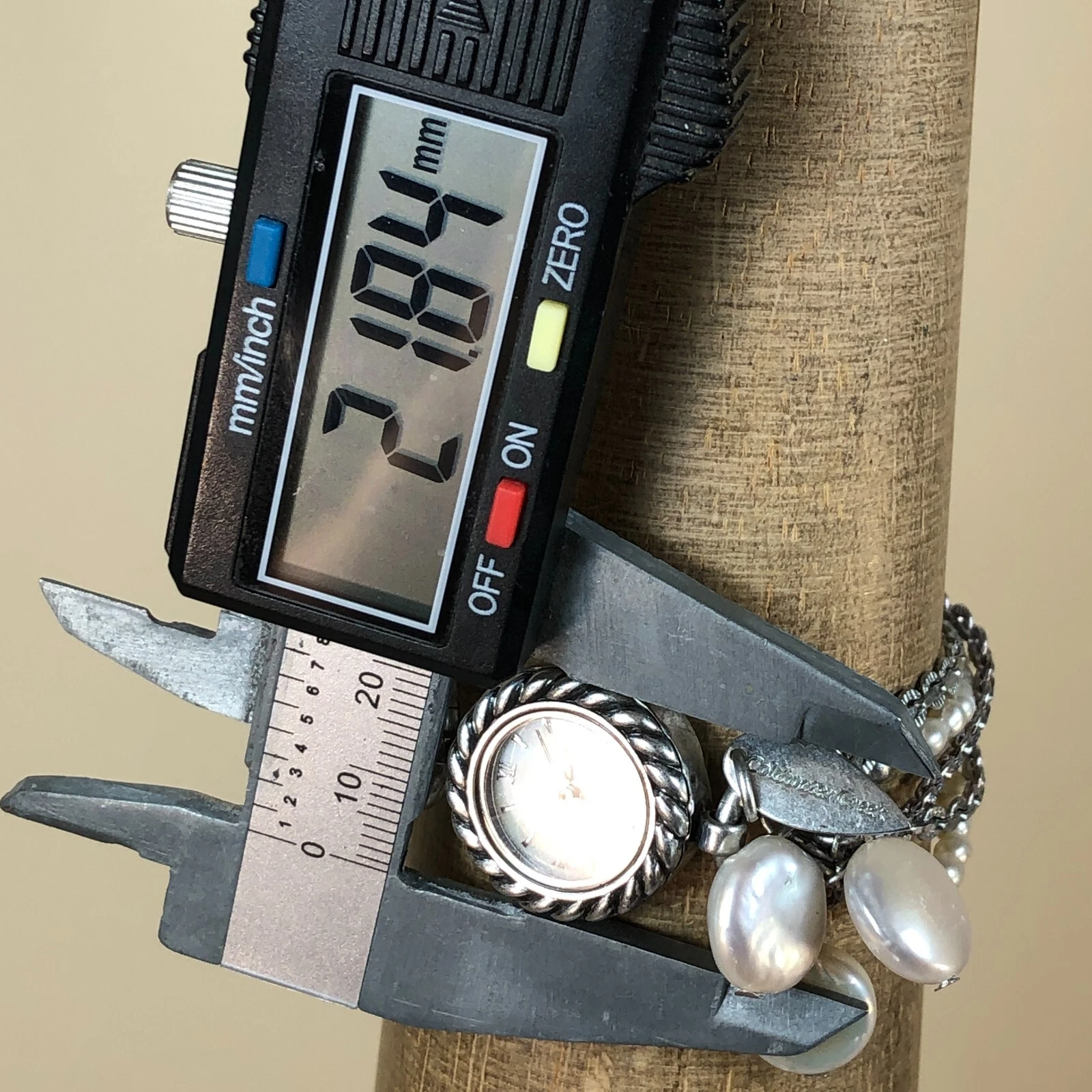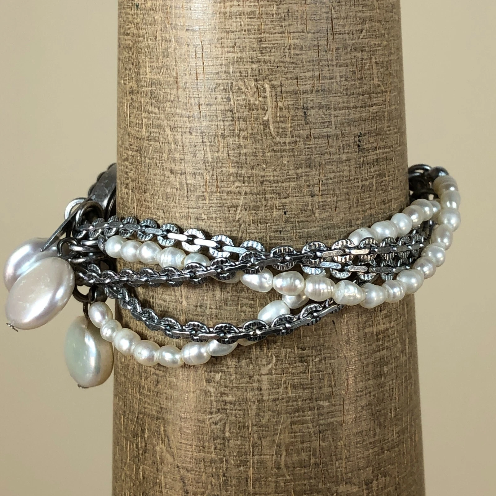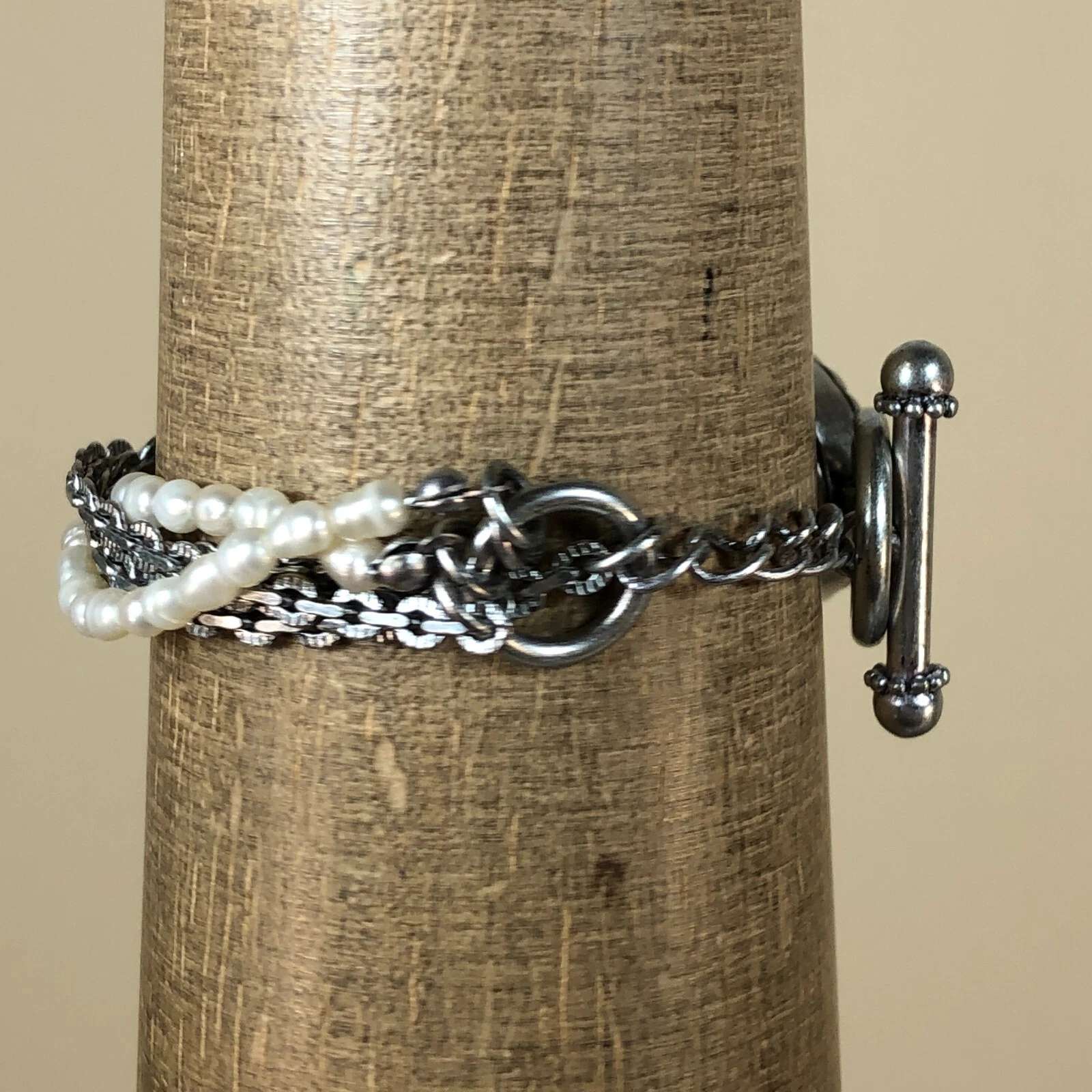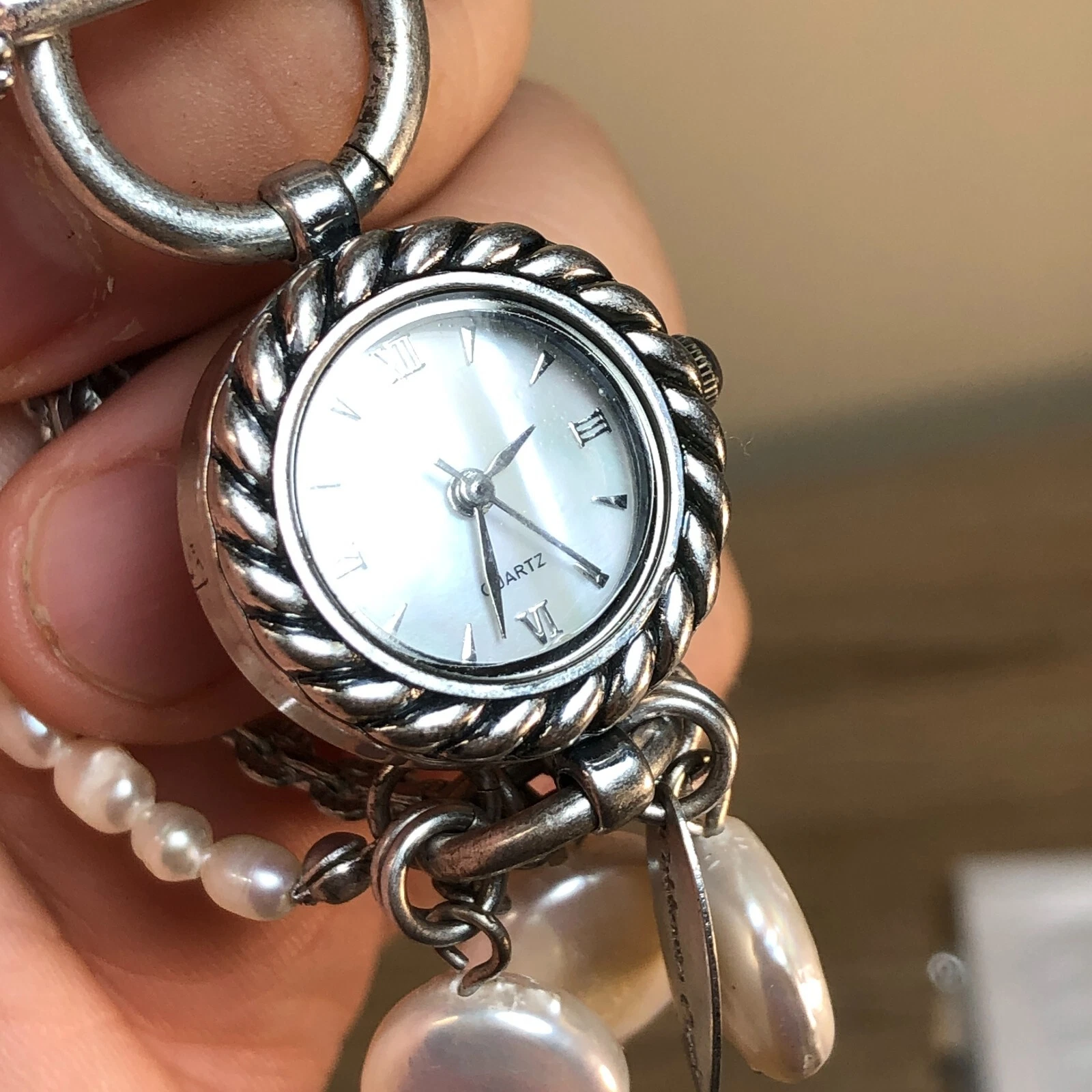 Coldwater Creek Women Mother of Pearl Faux Pearl Chain Toggle Band Watch 6 1/4"