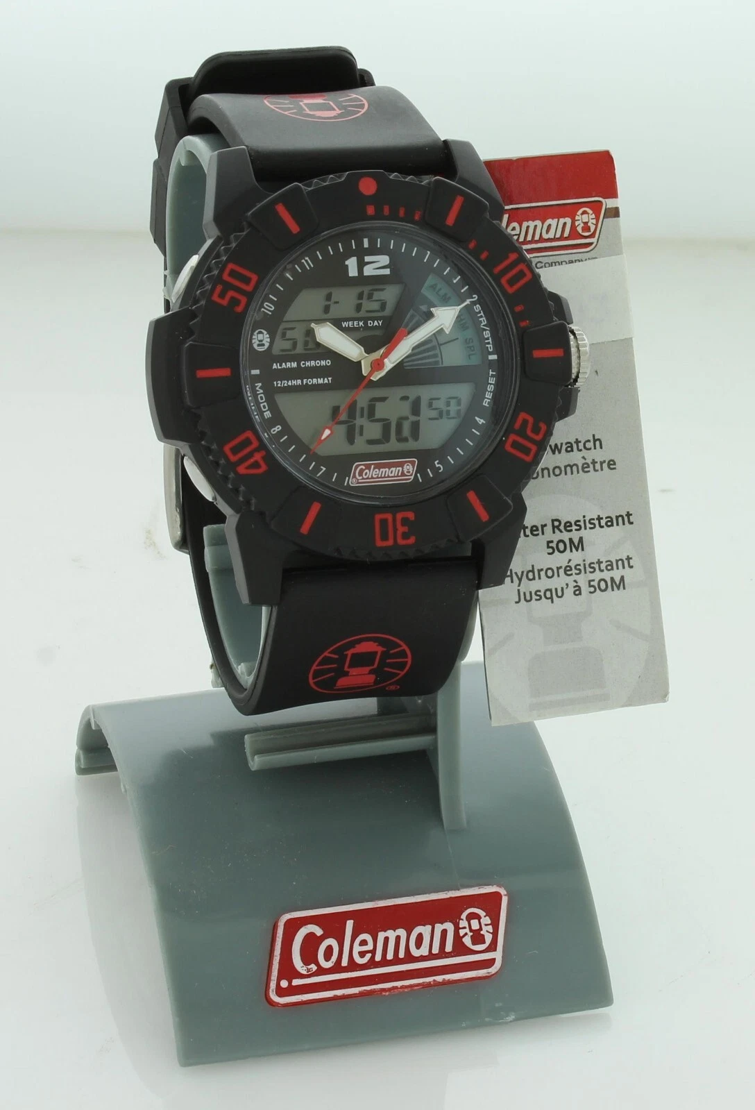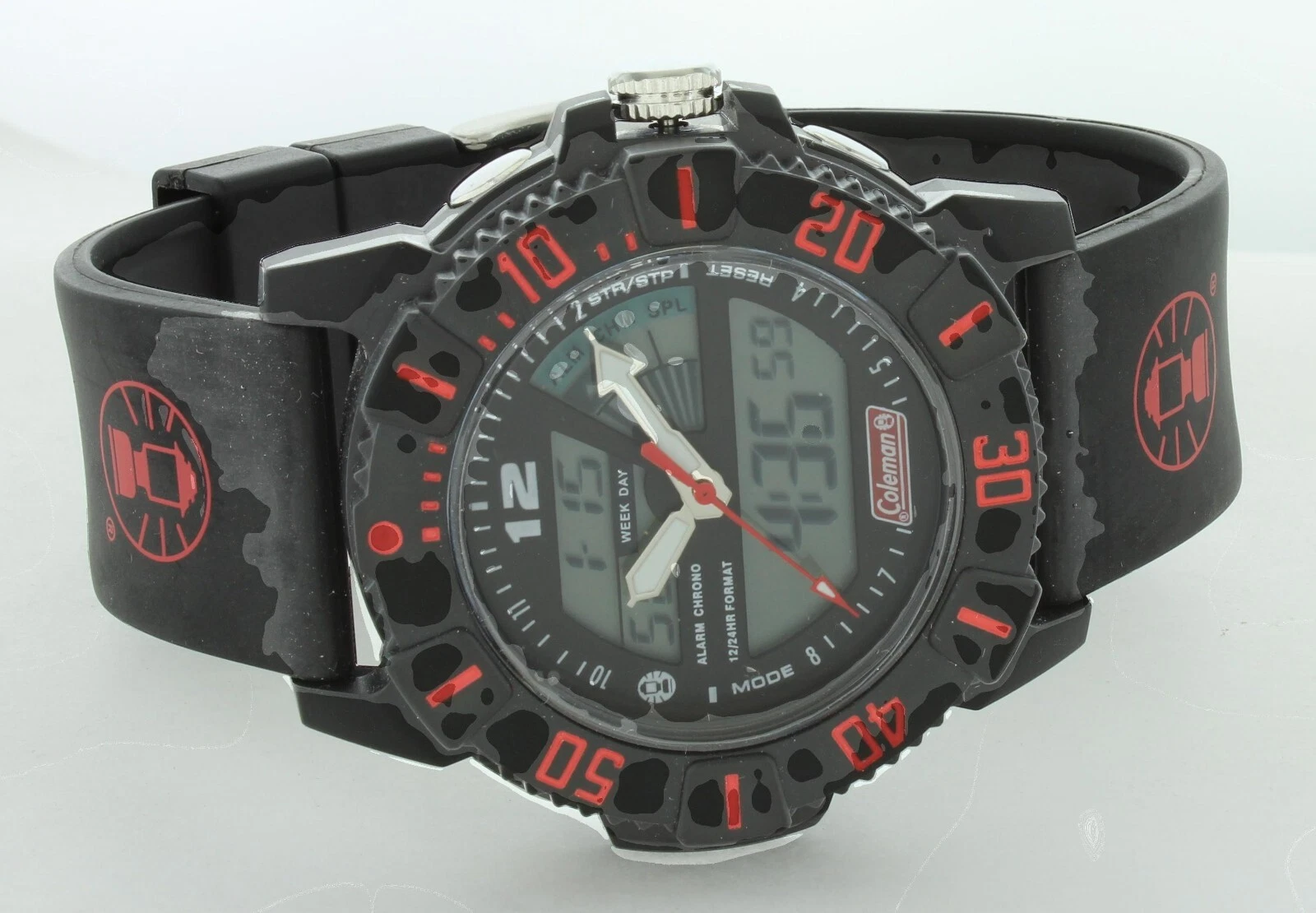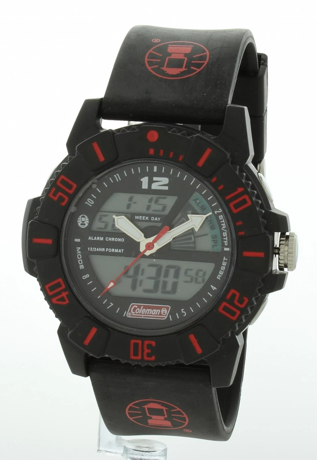 Coleman Men's 40825 Ana Digi Dual Time Sport Watch water resistant Black & Red