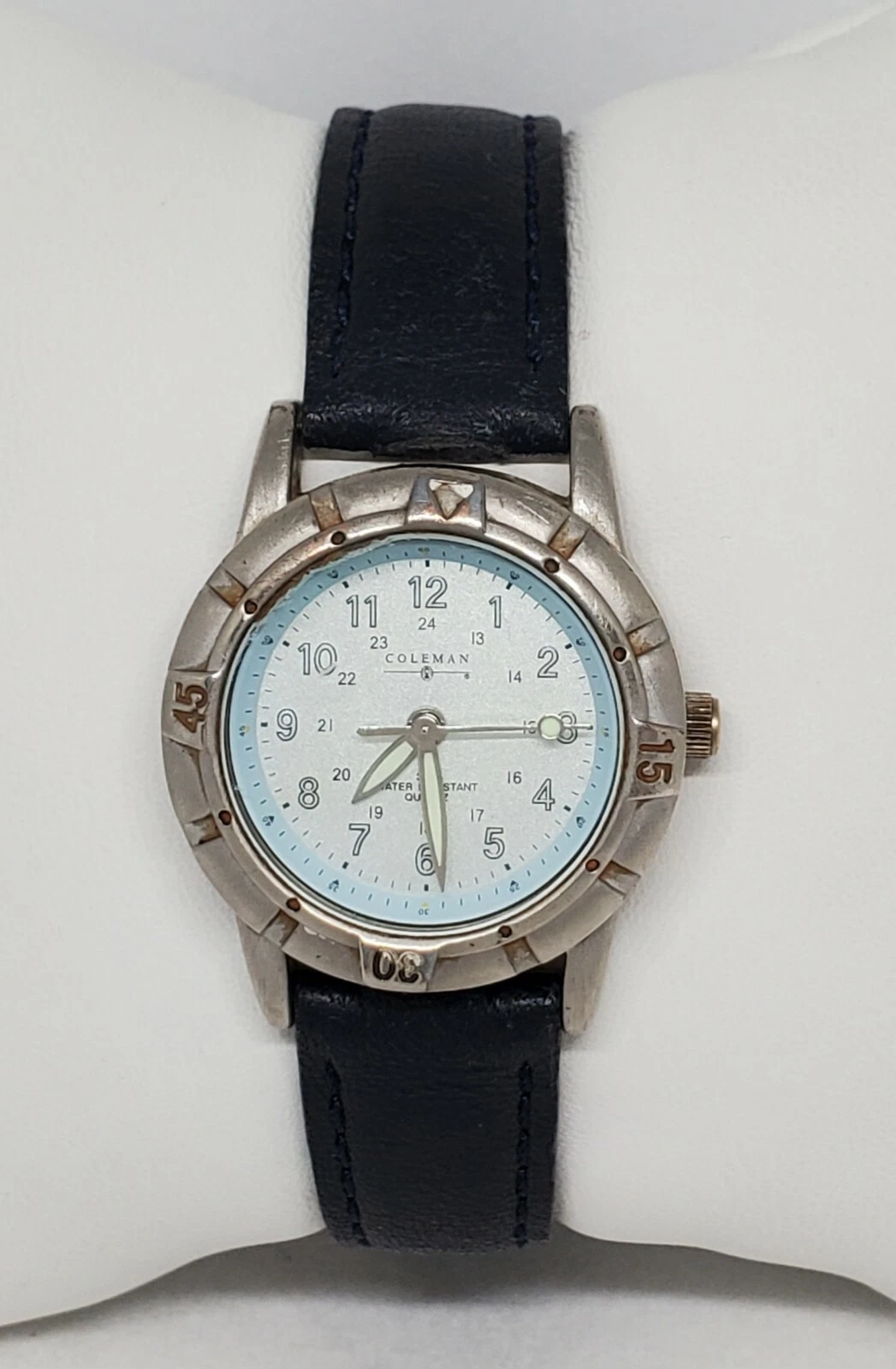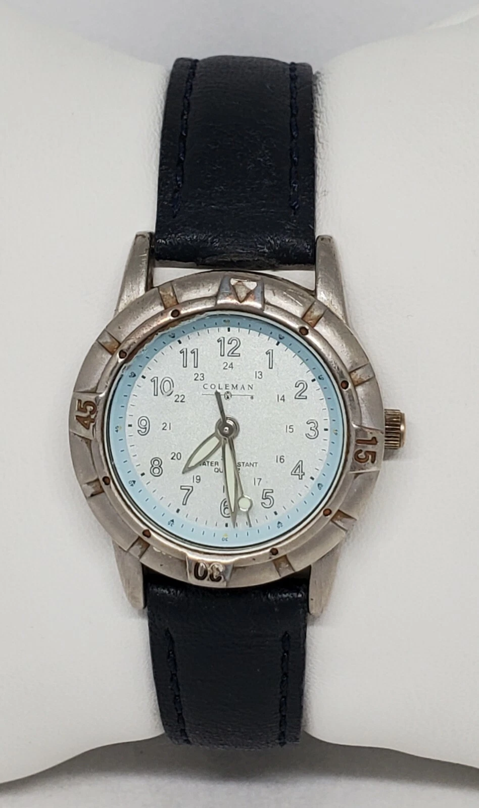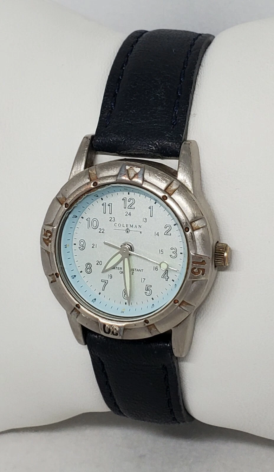 Ladies Coleman Field Rugged Silver Tone Blue Dial Leather Band Analog Watch D1