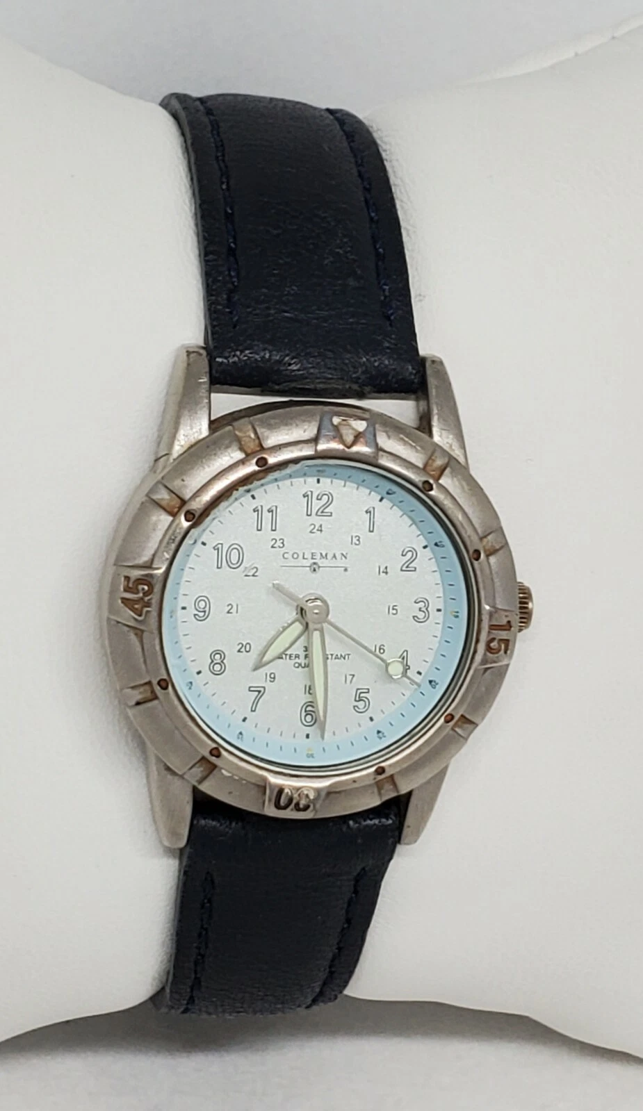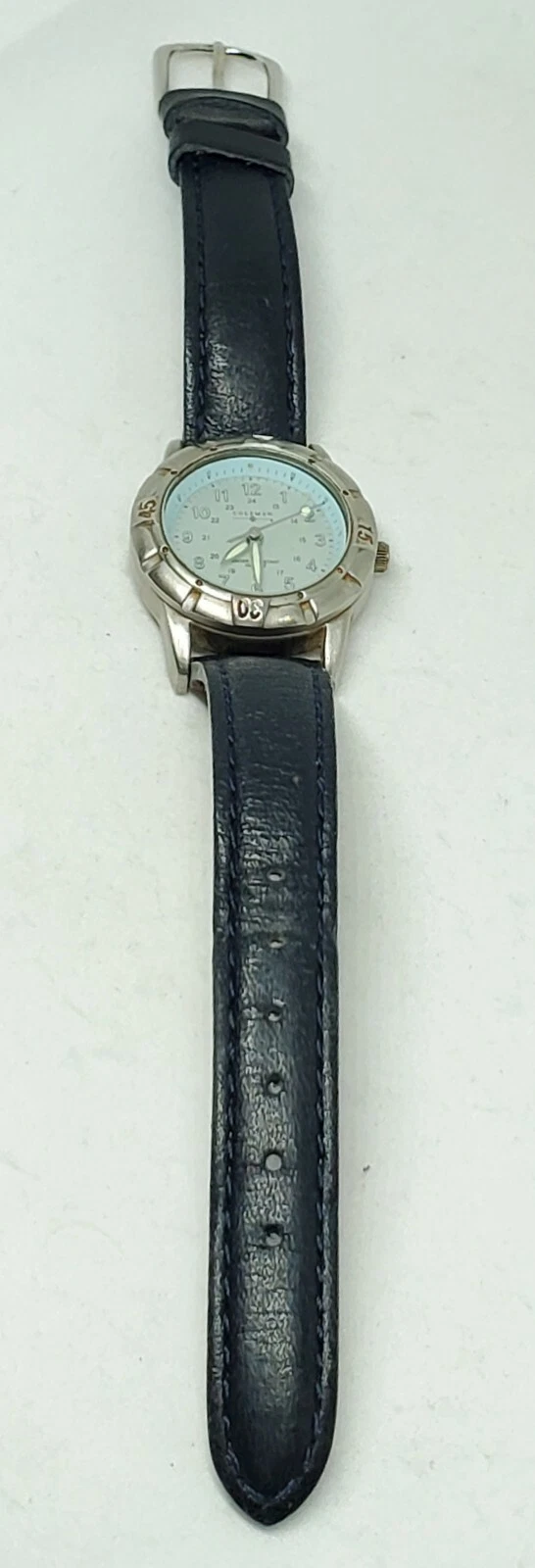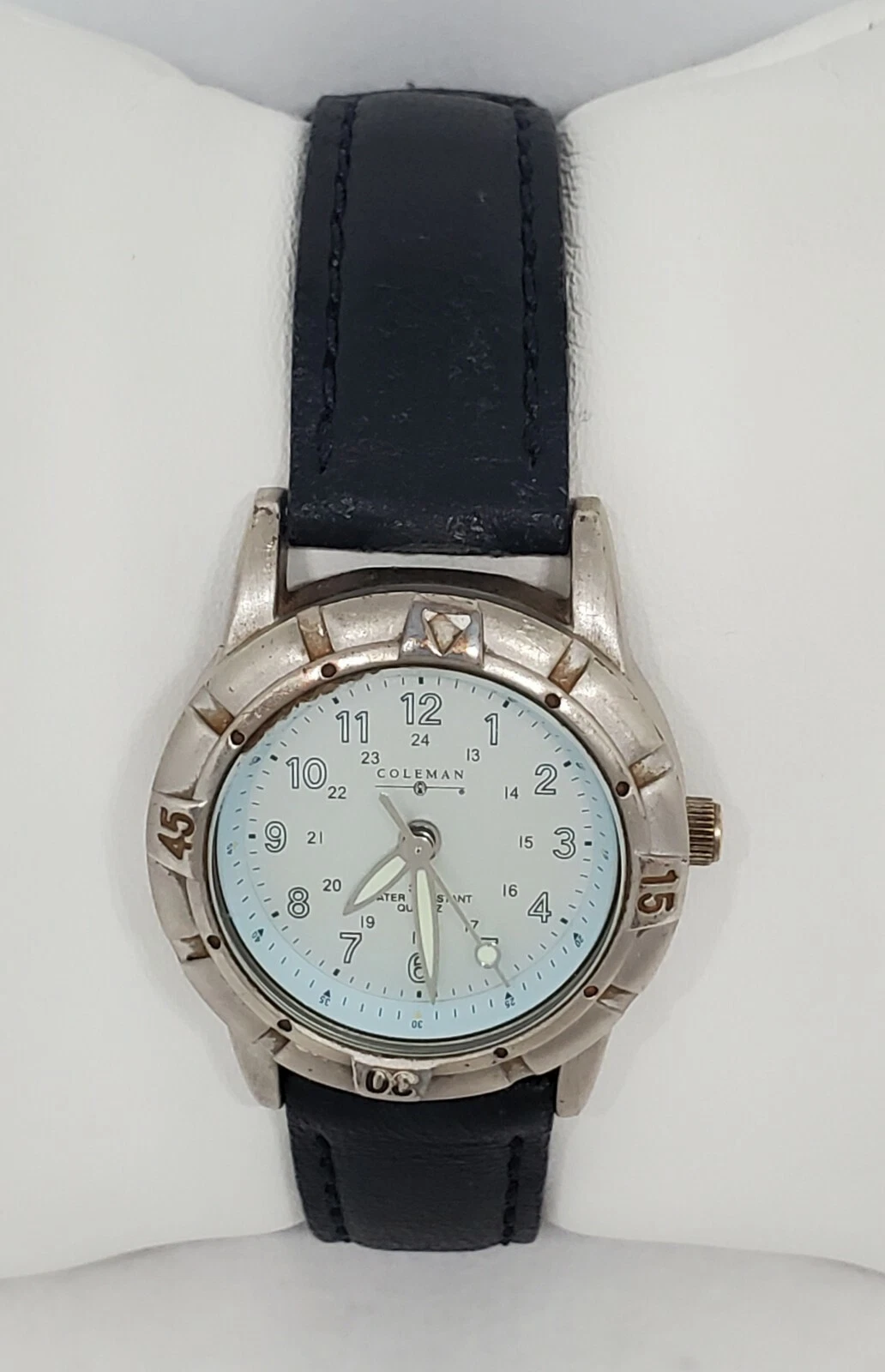Ladies Coleman Field Rugged Silver Tone Blue Dial Leather Band Analog Watch D1