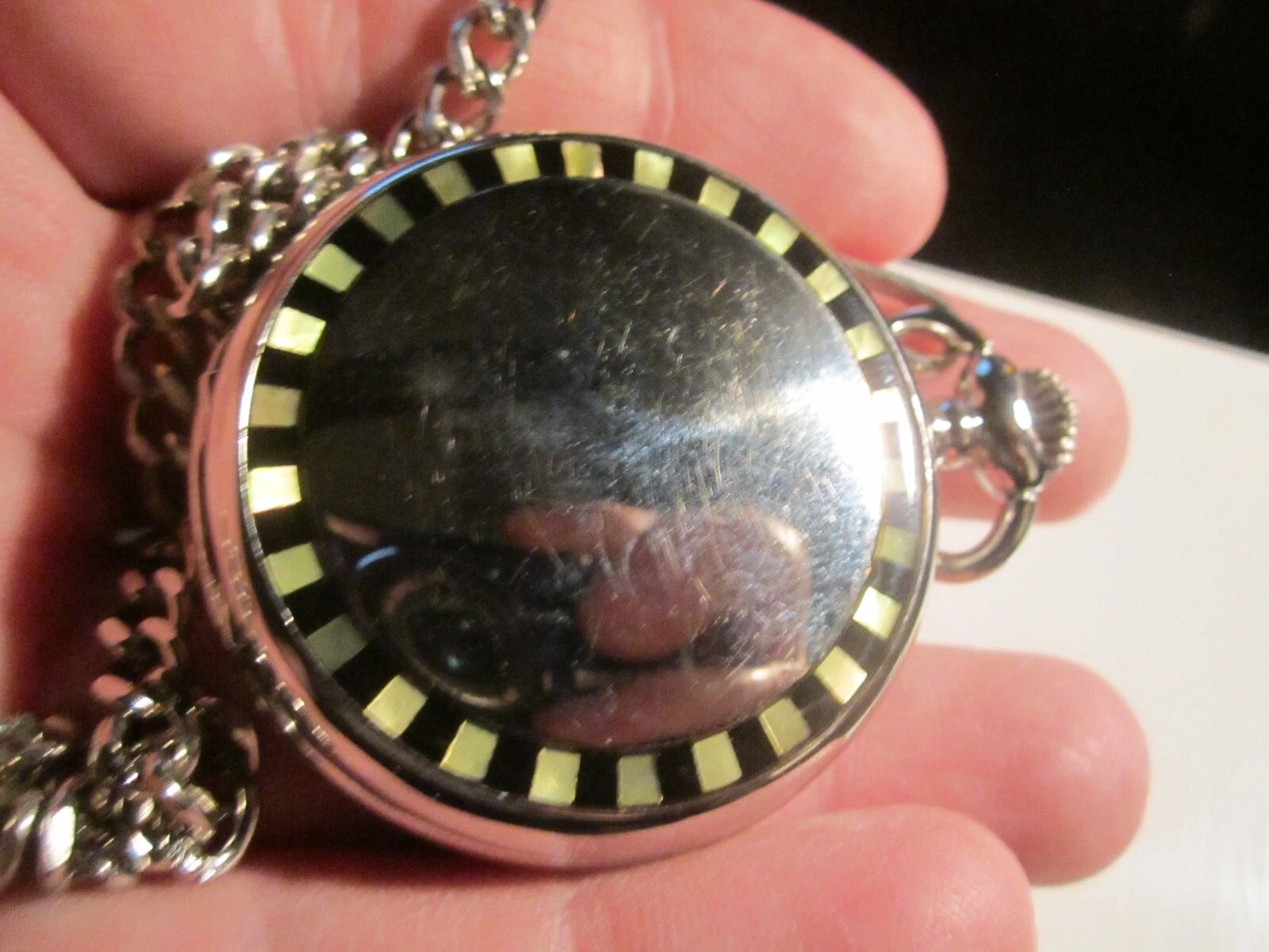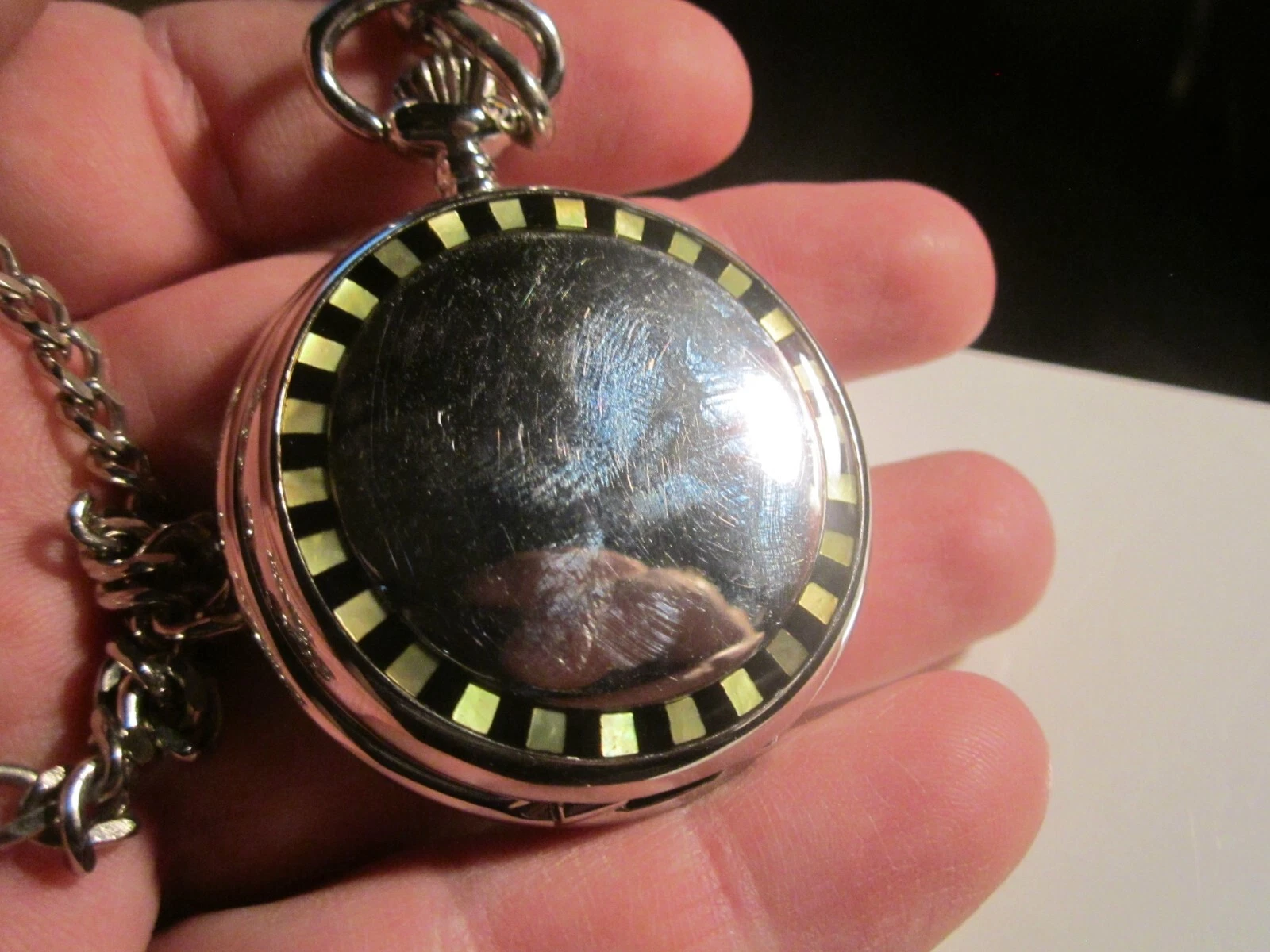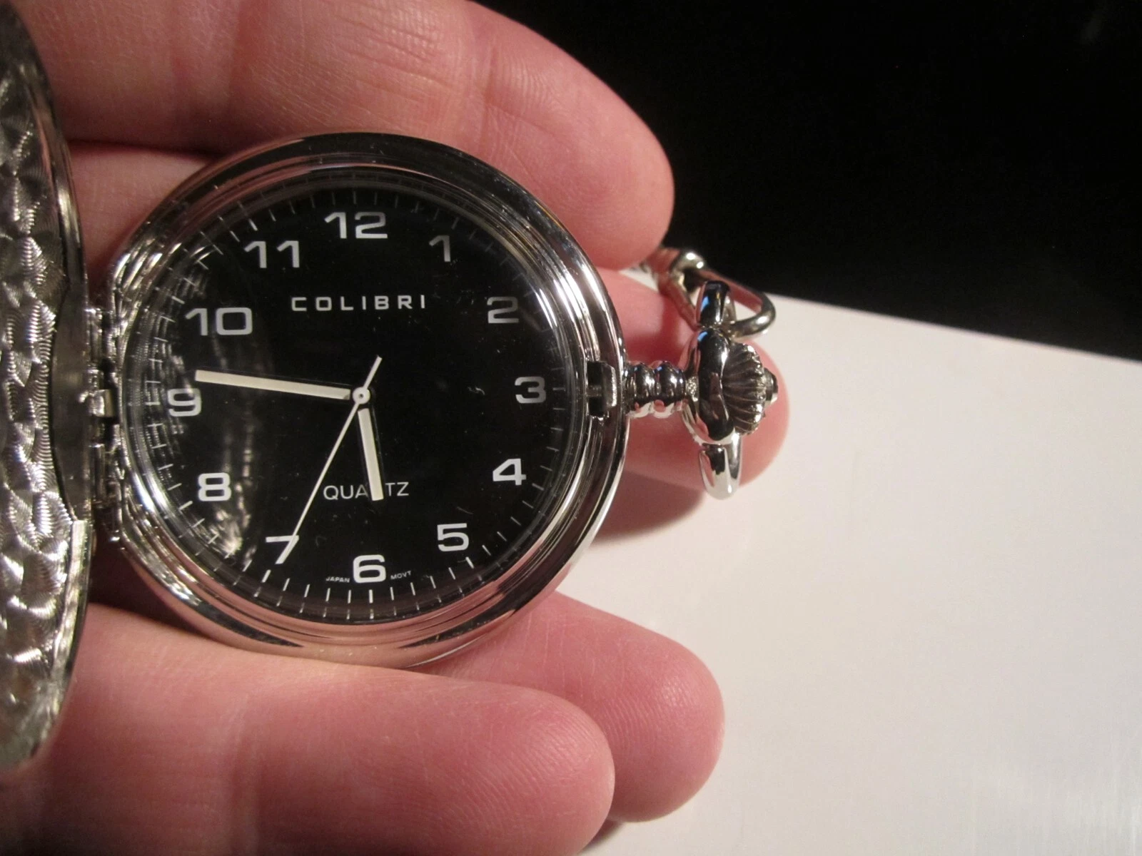 VINTAGE COLIBRI POCKET WATCH BLACK FACE MOTHER OF PEARL INLAY - BBA-33A