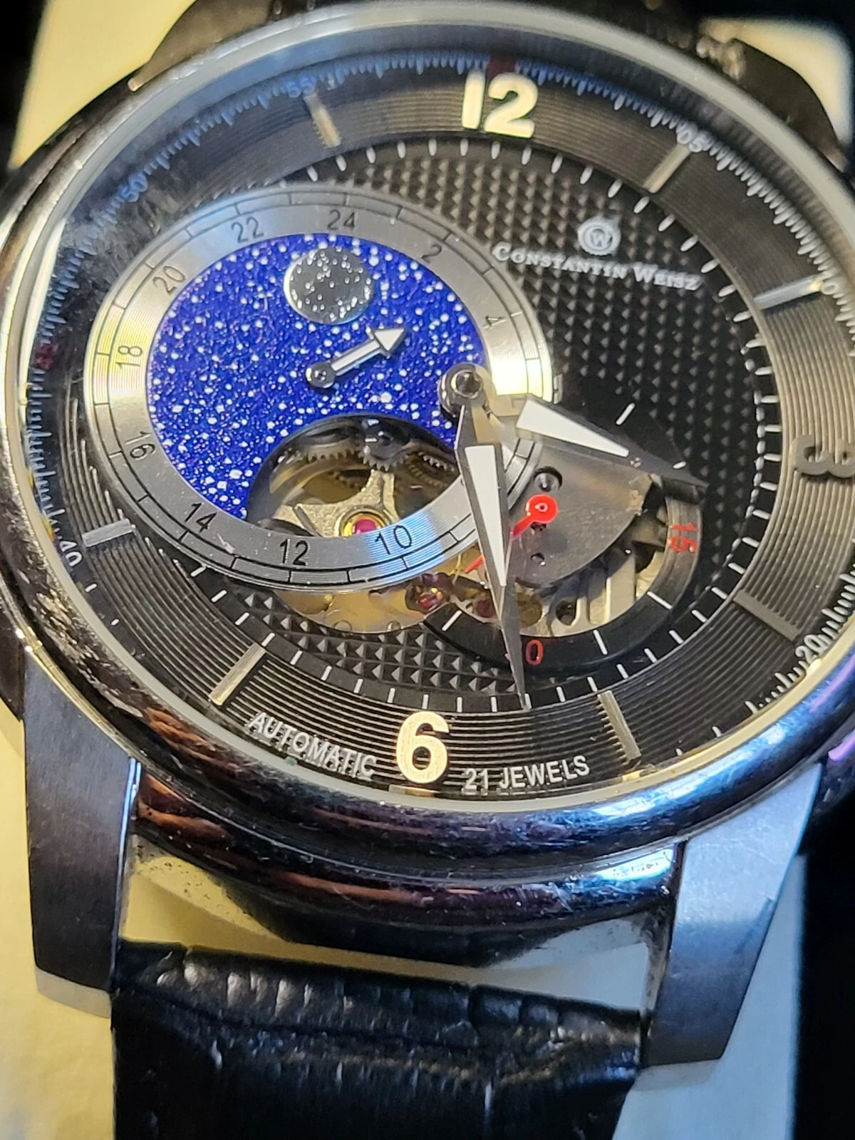 Constantin Weisz Automatic Watch 21 Jewels Skeleton Back.