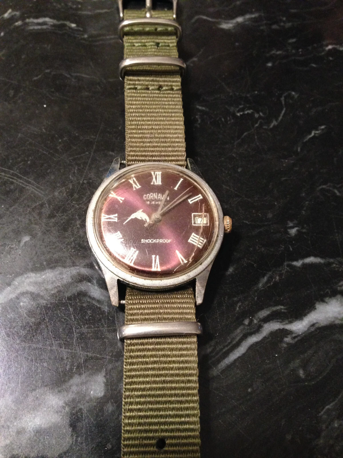 Cornavin Dolphin Vintage Watch 18 Jewel hand wind Shockproof Working NATO Strap
