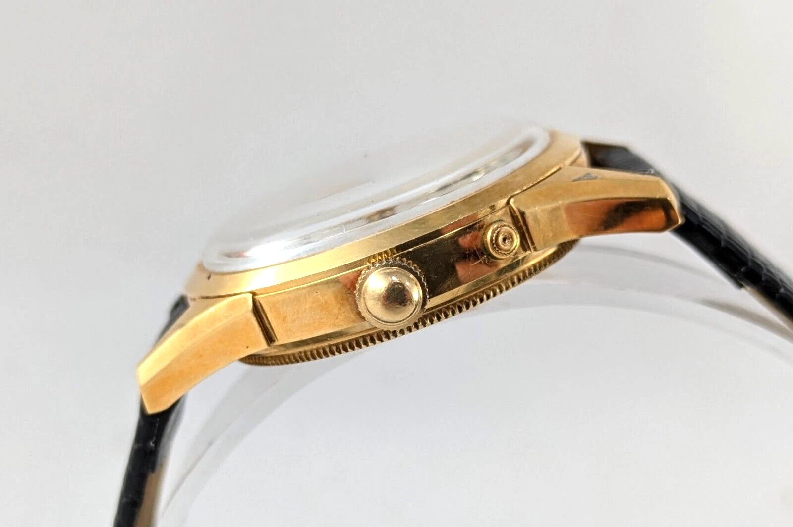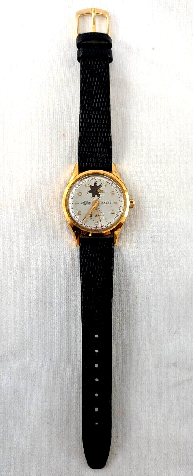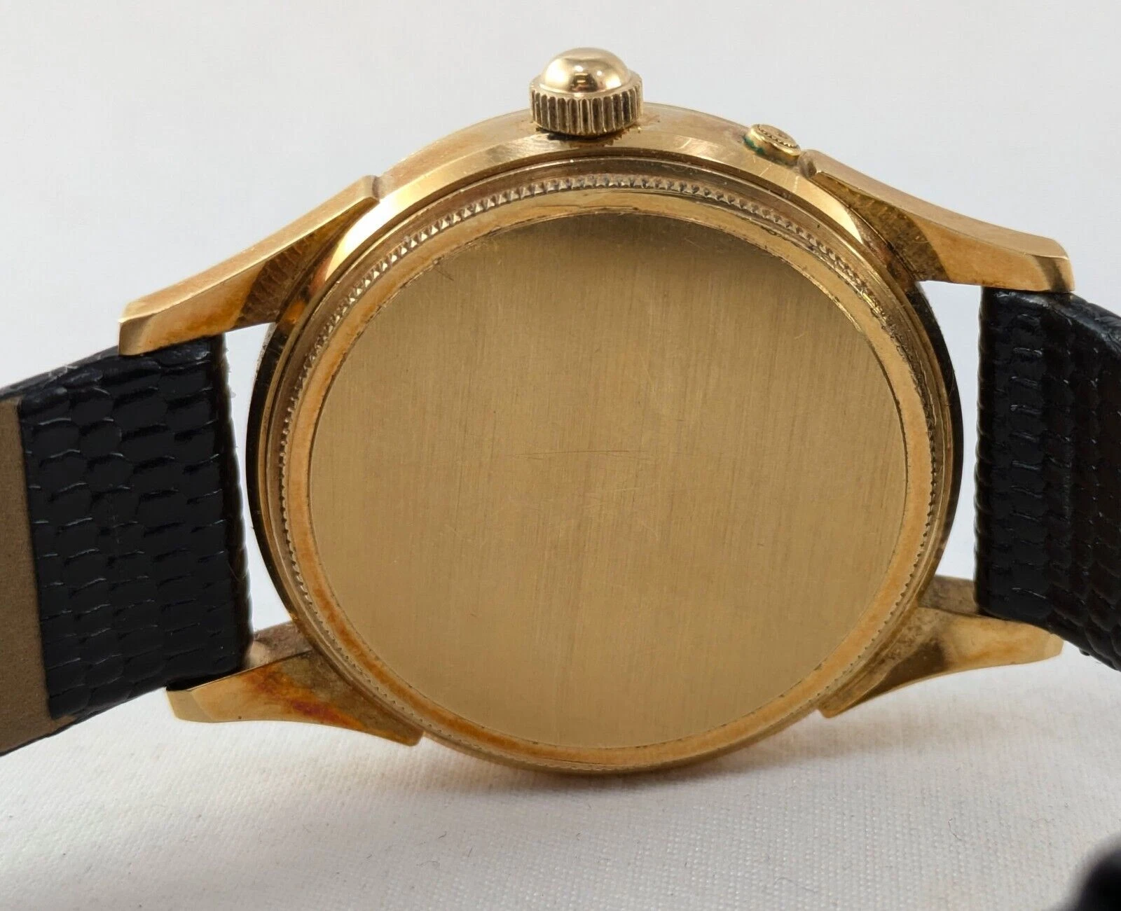 VERY RARE 18K Gold CORNAVIN Sun Phase 17 Jewel 33mm Dial Automatic Wristwatch 9"