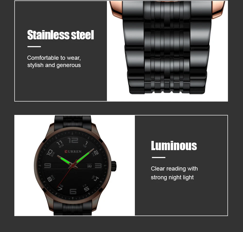 CURREN Men Watches Luxury Gold Watch Male Quartz Luminous Calendar Wristwatch