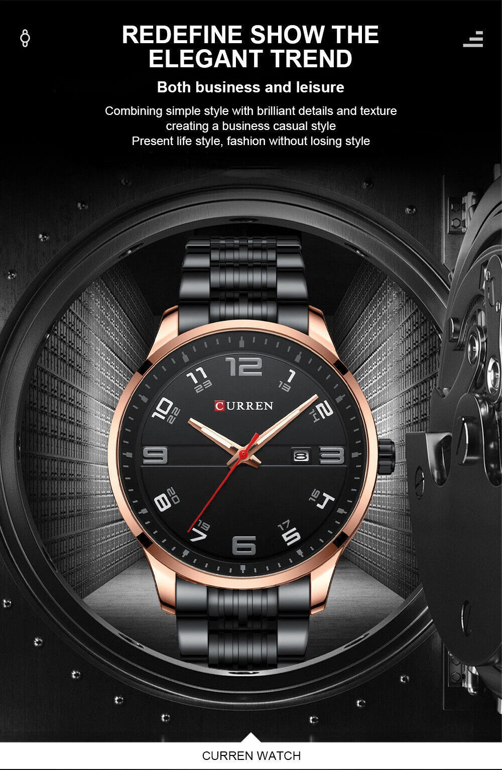 CURREN Men Steel Watches Luxury Brand Male Watch Calendar Luminous Wristwatch