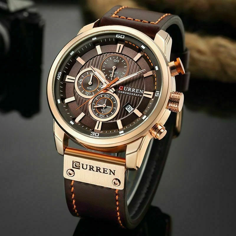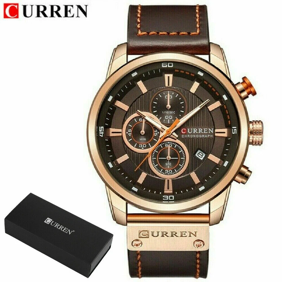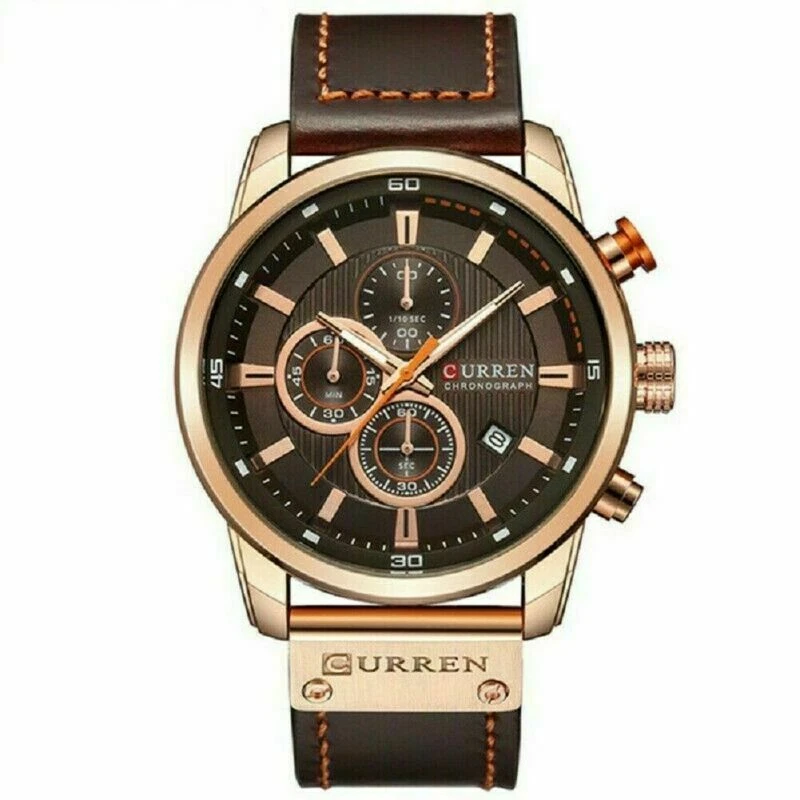 Fashion Mens Sports Watches Quartz Leather Waterproof Wrist Watch Luxury