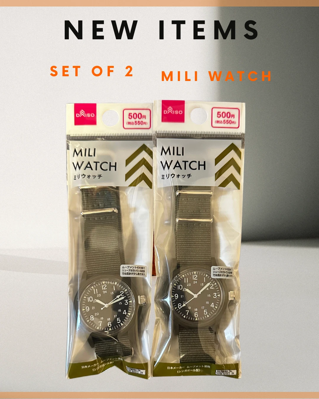 【New】Daiso Military Watch Olive Khaki set of 2 from Japan Free Shipping