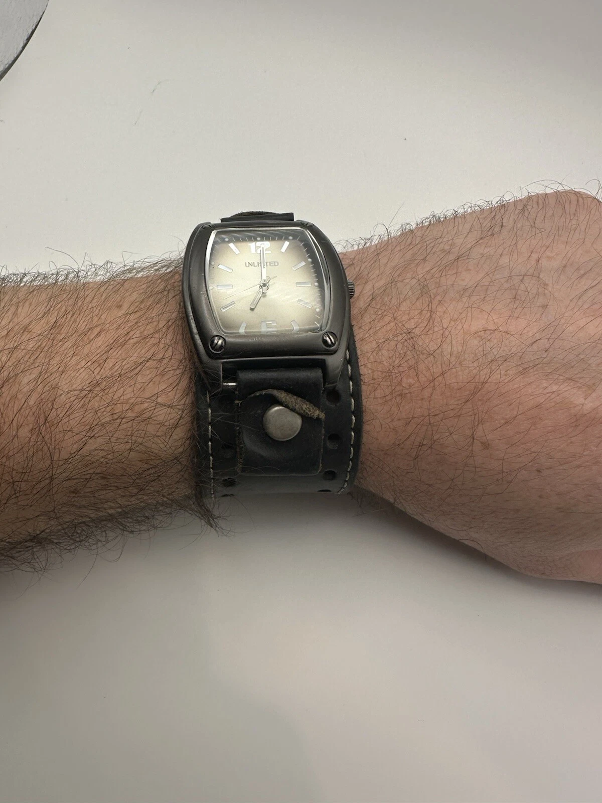 Vintage Kenneth Cole UNLISTED Watch New Battery Wide Leather Band