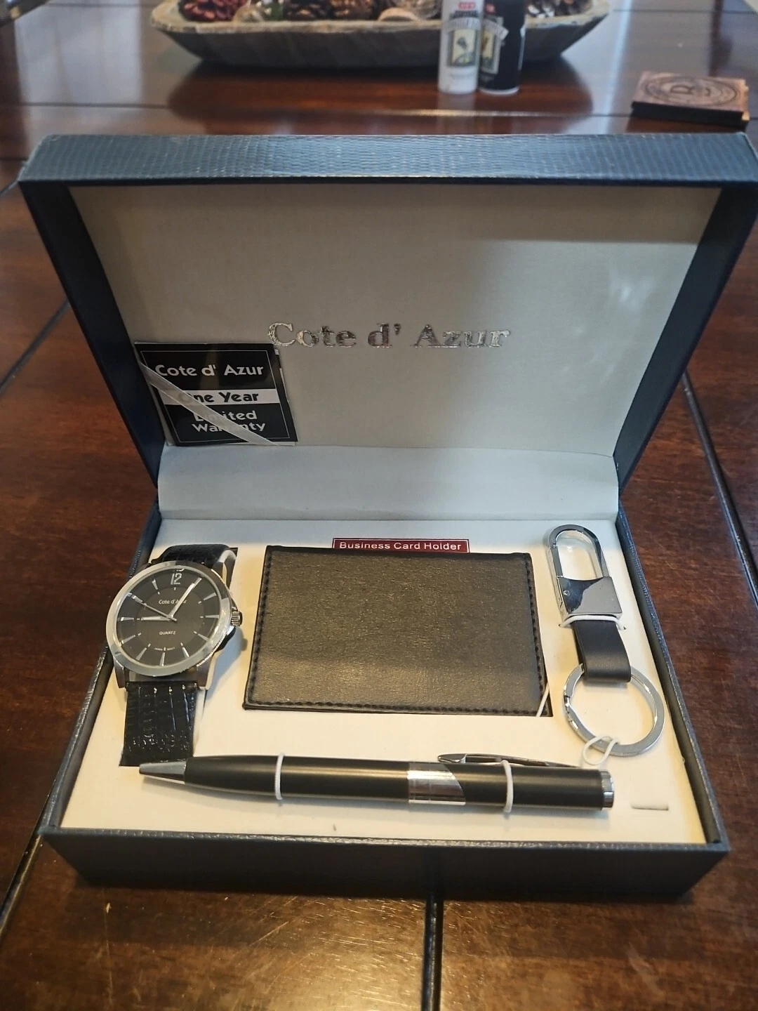 Cote d' Azur Mens Accessory Set Quartz Watch Pen Business Card Holder Key Chain