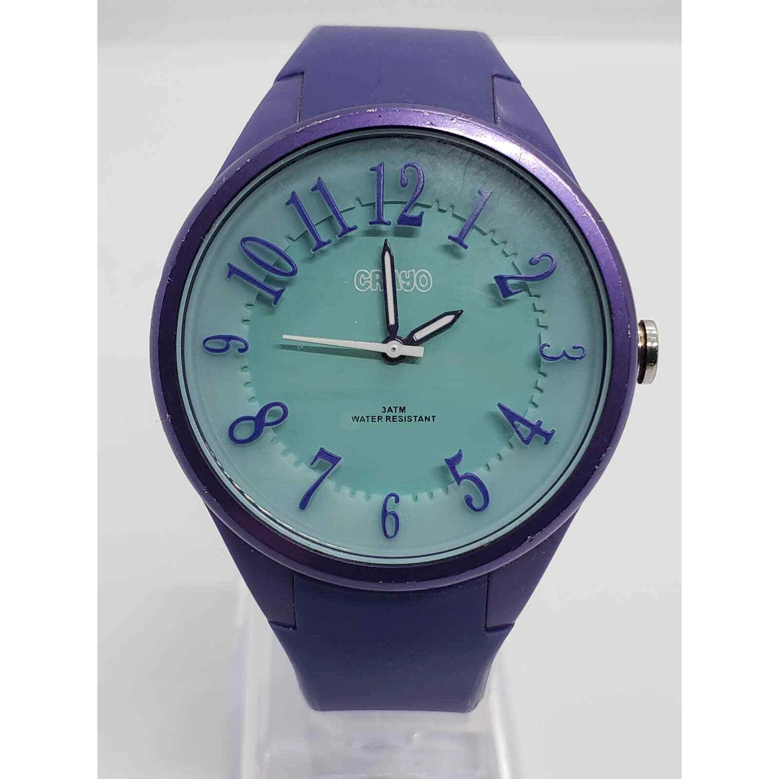 Crayo men's watch. Large light blue face with purple band. Working watch