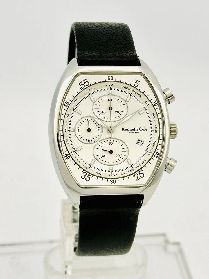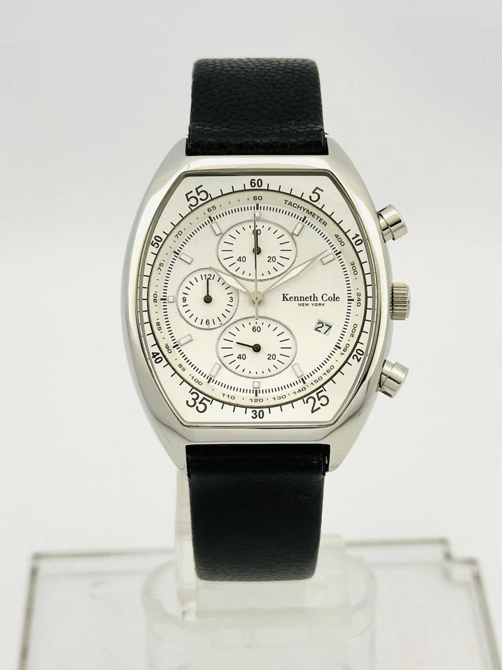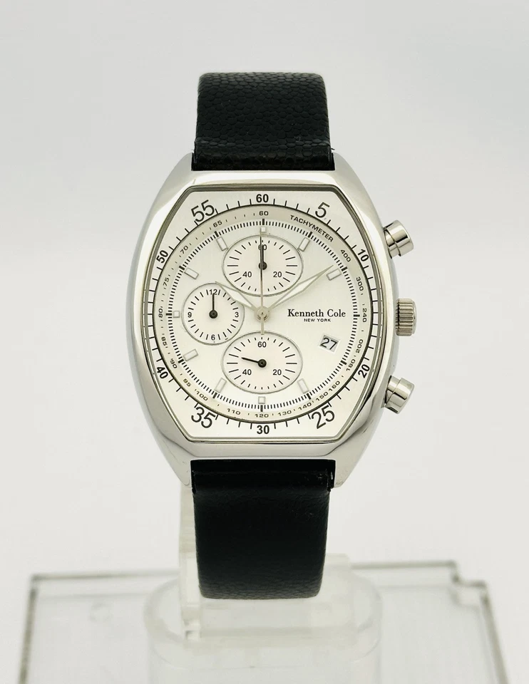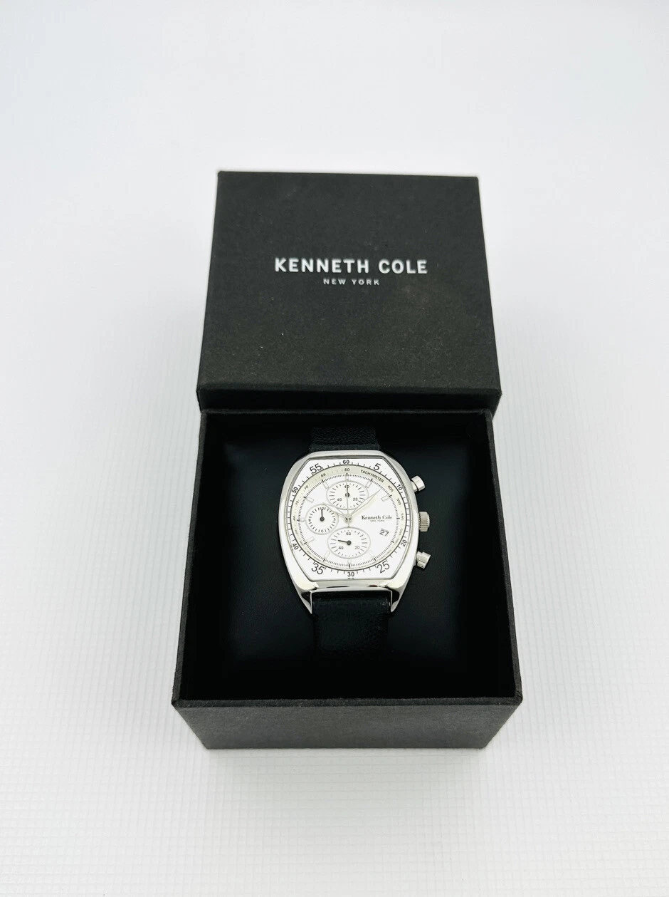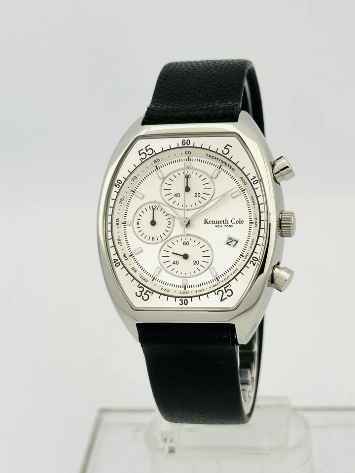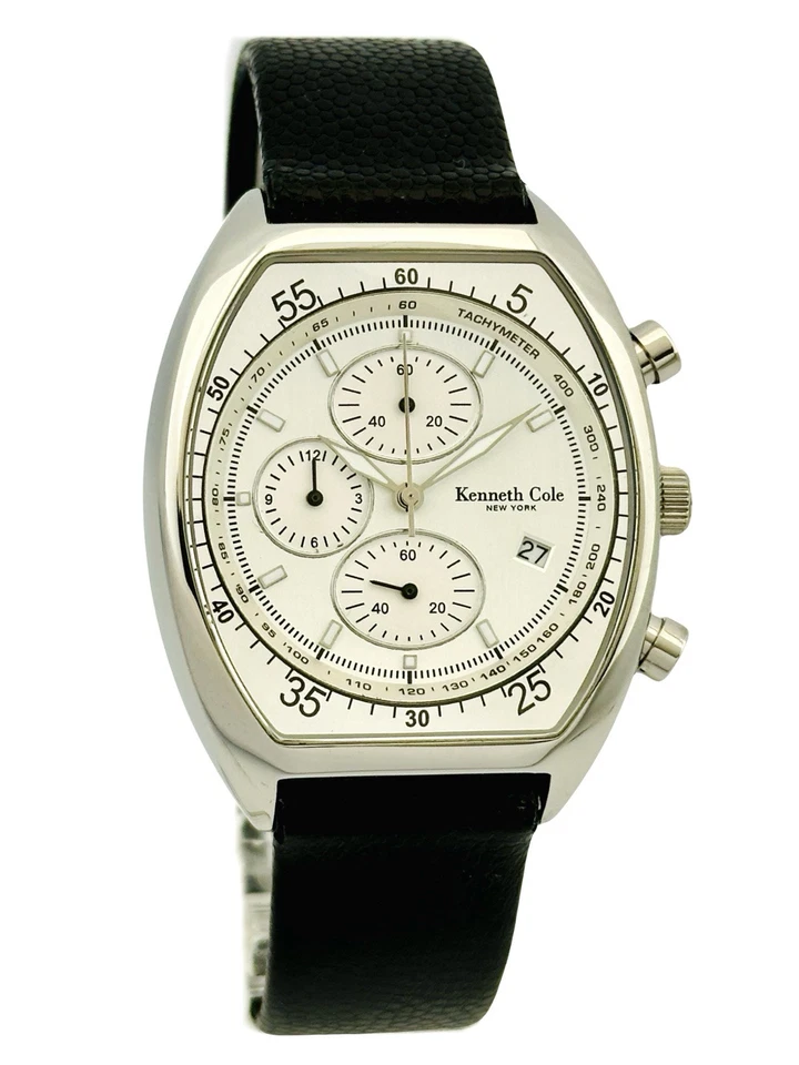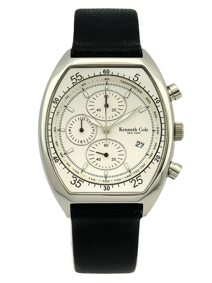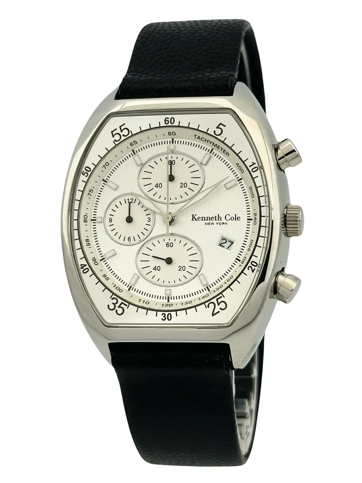 Kenneth Cole KC1207 Tonneau Barrel ChunkyCase Silver White Dial Black StrapWatch